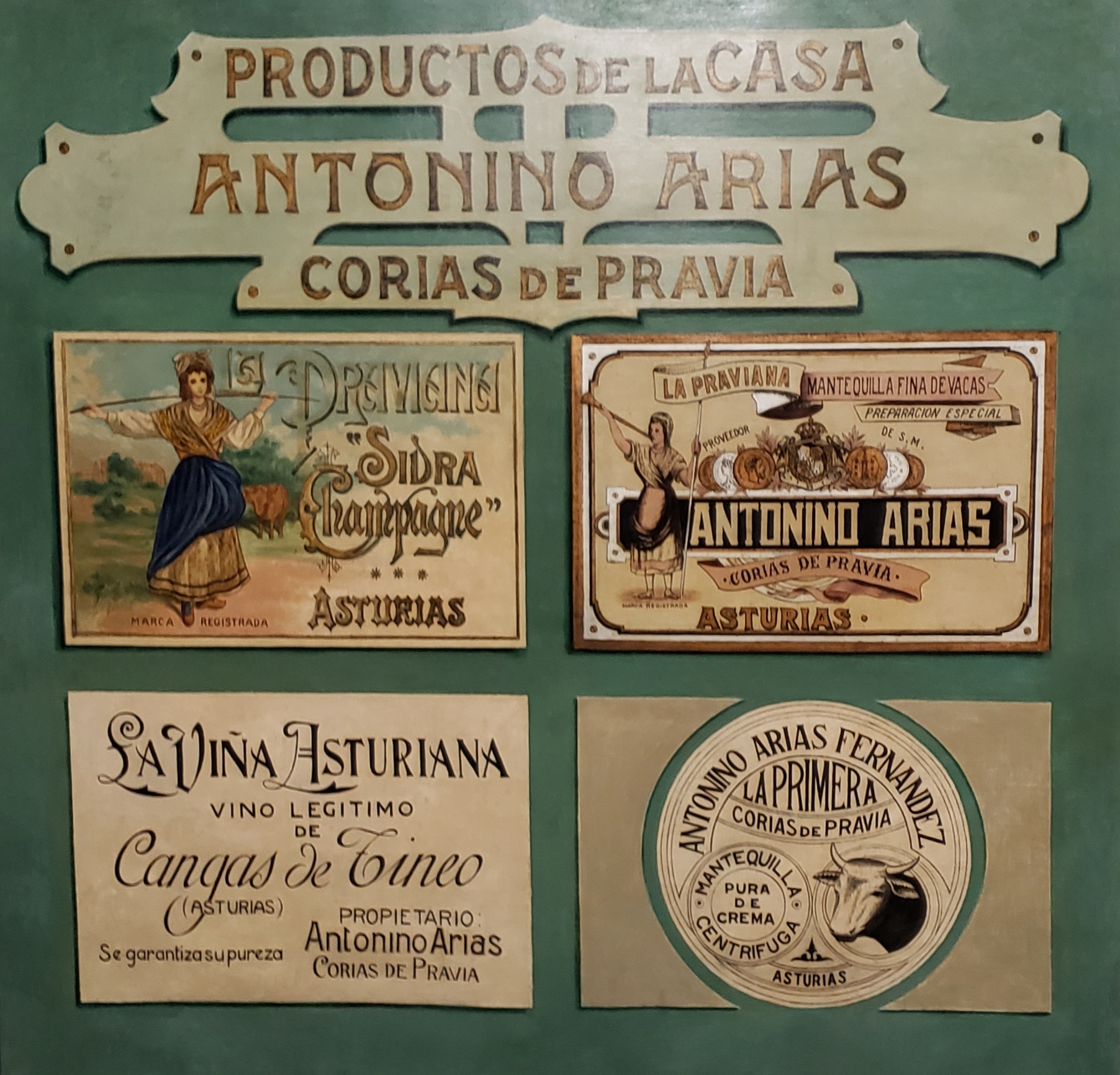There were also many outbuildings, one called Horres (pronounced similar to Oreos), which are wood structures about five feet off the ground, held up by large posts. There was also a small hut for living, a very large, (no longer in use) cider processing plant (Asturias is famous for their cider, which is more sour than Irish cider, which is more sweet) as well as a building devoted to bagpipes and other musical instruments from Asturias’s past. My favorites were the 50s and 60s movie posters, colorful phonographs, armoires, and cider signs, which you can see below:
