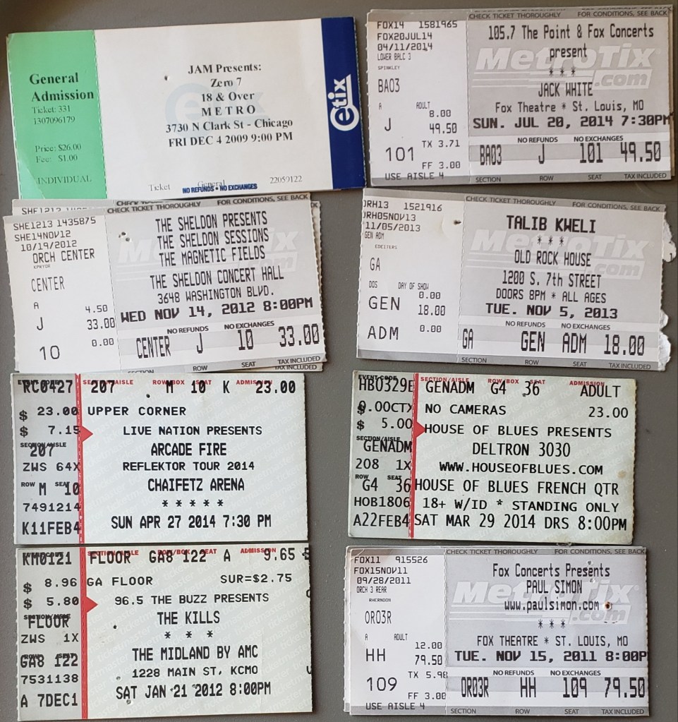 Here’s a couple examples of what I mean: In St. Louis, the local radio station KDHX often gave away free tickets (and since I worked at a job that allowed me to listen to the radio all day) I obtained many free tickets to shows; compared to Los Angeles, when the local radio station KCRW also gave away free tickets, but I never got those, because competing with tens of thousands of listeners in St Louis was much different than millions in the Los Angeles area.