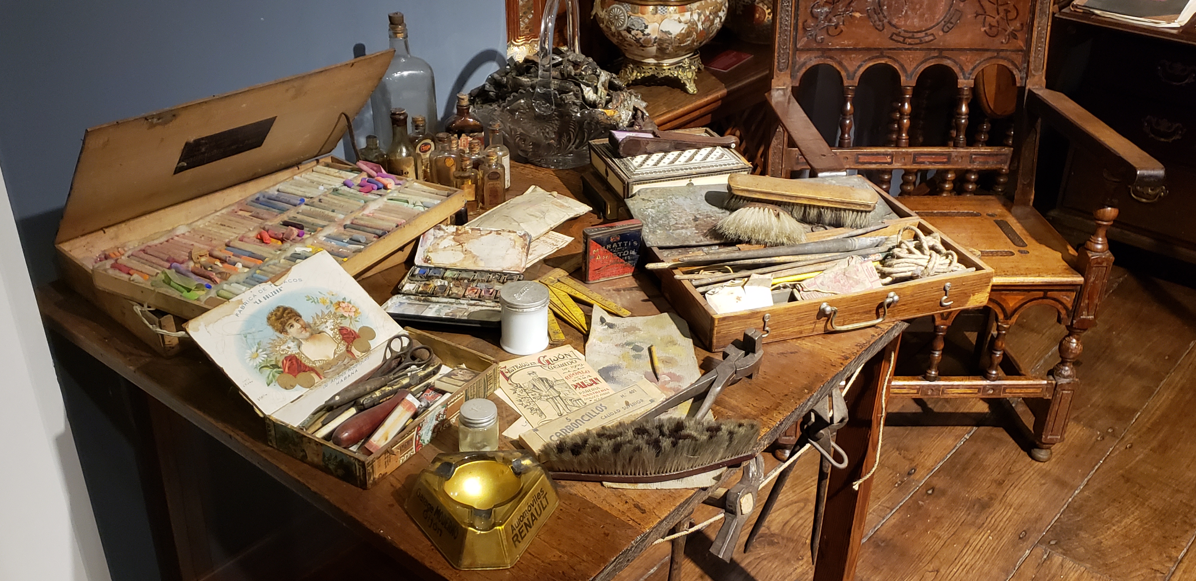 After he showed us the seashell room, more visitors came to the museum, and the docent had to leave us, but we felt very good about understanding much of what he said, all in Spanish. The final room was a recreation of the artist’s studio, complete with paints, brushes, reading materials, and other items that make a each artist’s studio one of a kind.