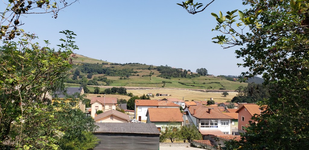 The train was sparsely populated, a couple families and some teenagers were the passengers on our car. We had to switch trains at a stop called Villabona de Asturias, We de-boarded and waited for the train to take us to San Juan de Nivea; at Villabona there was a worker spraying dirt off the opposite brick platform from where we stood and a blond woman on the other side of our platform waiting for the next train. Across the road from the station was a long unused coal processing plant, and the actual station itself was also long closed, now enclosed by bright grey steel walls adorned with graffiti. We had a thirty minute wait for our train, and we walked around the station, before eating our snacks of apples and mixed nuts.