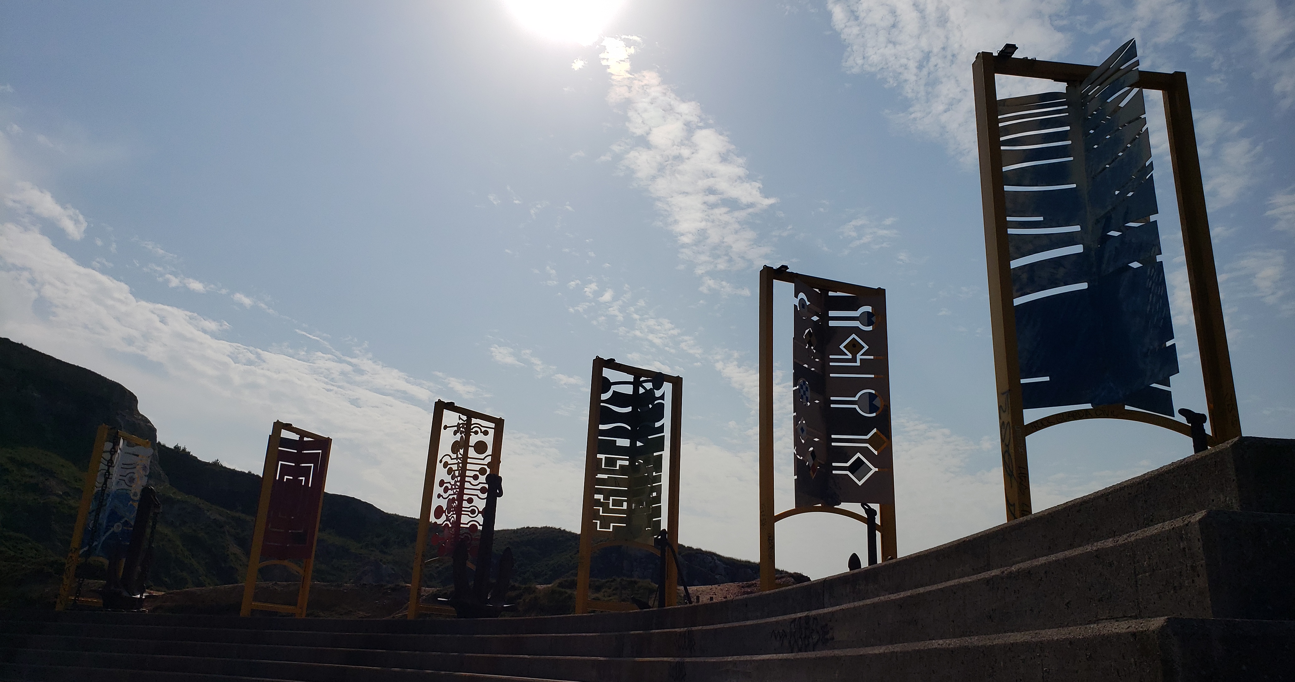 We ordered croquetas, asparagus with potatoes in mayonnaise (like a potato salad but prettier) and sliced sausages with french fries. Jesse’s instagram has some good pictures of the food. We ate until full (which means we ate it all), enjoyed our two bottles of cider, and with full stomachs proceeded to the end of the paseo martimo, which held a small, rock covered beach as well as an outdoor monument museum and an excellent overlook point. The pictures below do not do it justice, to be honest, but hopefully convey some of the peacefulness and awe-inspiring experience we had.