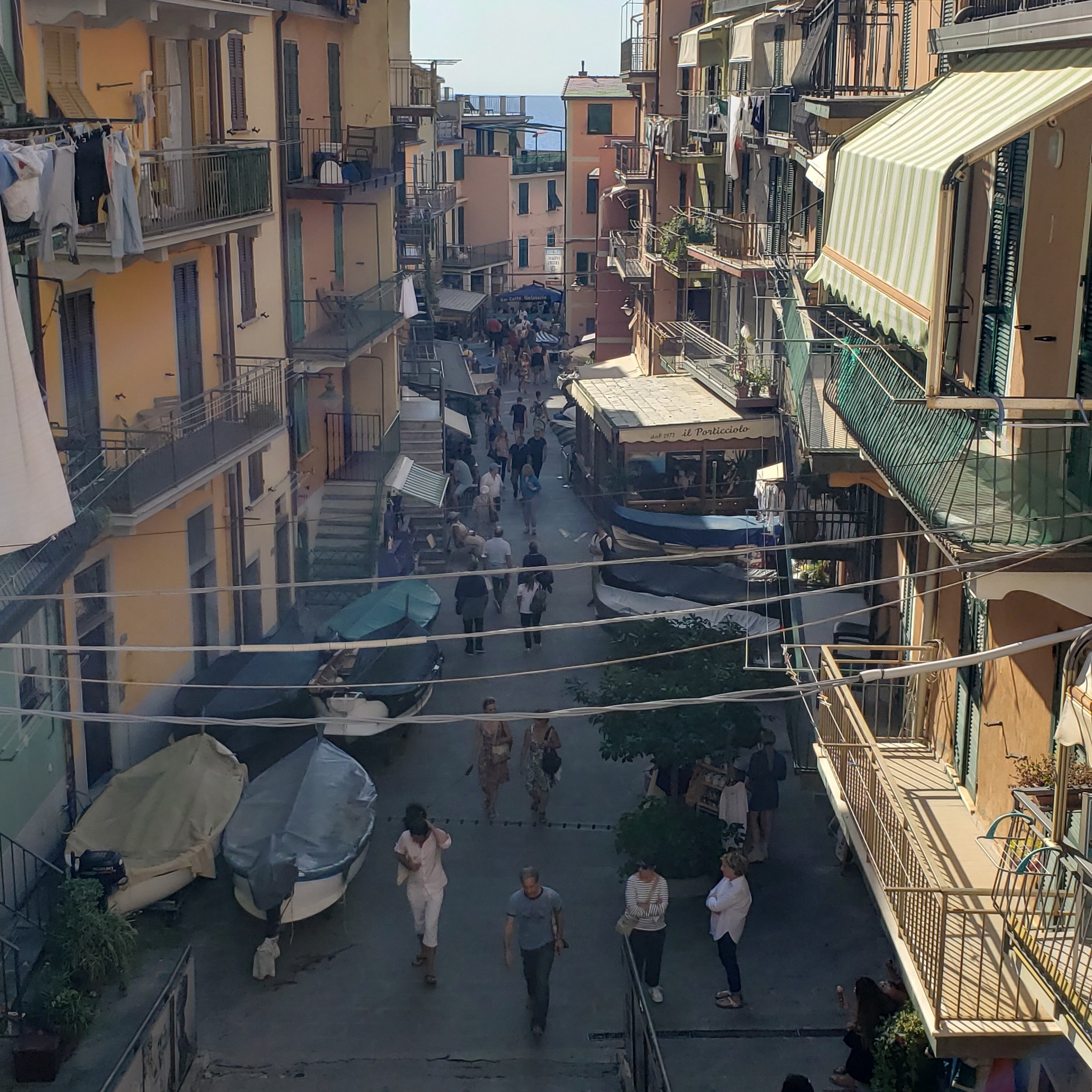 Here we observed the many different types of tourists that hiked between the towns, some had walking sticks with large backpacks, others wore sneakers and had day packs, some limped, others had visible bug bites, all appeared sweaty and hot, and we confirmed that not hiking the trails was the right call for us as we enjoyed our draft beers and stale potato chips. People watching is a favorite pastime that we all should engage in, as we are all so varied as humans. From the things we cannot control (our height, eye color, skin color, walking gait) and those we can (clothes, hair color, tattoos or not). To see and celebrate these differences makes it much easier to deal with so many fellow tourists from many different countries speaking many different languages.