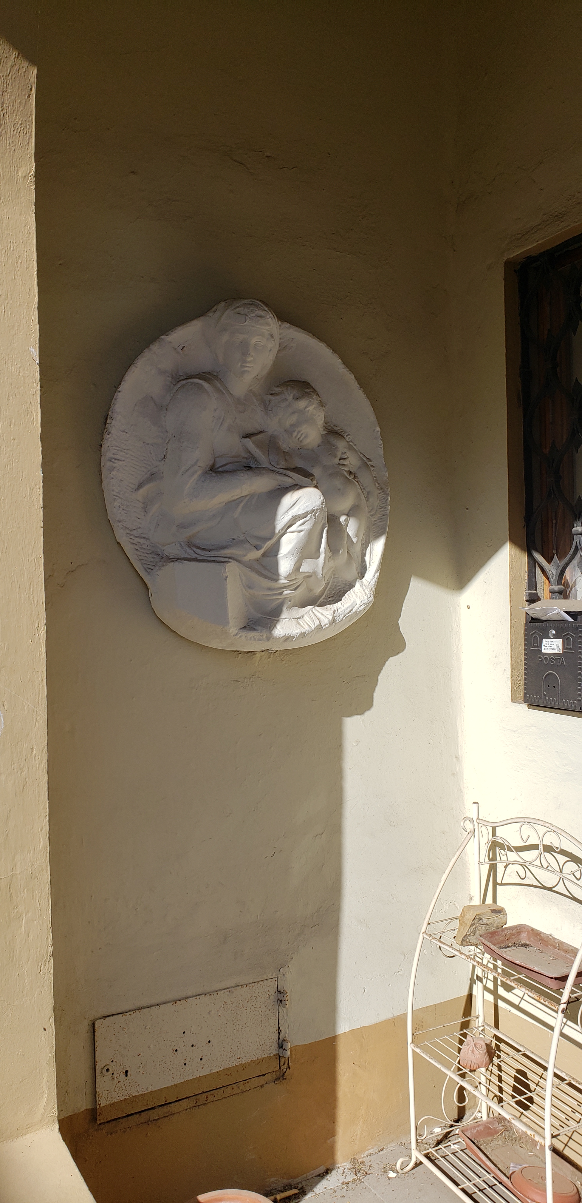 My favorite part of Florence was simply walking around, taking in all the cool artwork built onto buildings, paintings encased in cloudy glass, street art, doorknockers, candleholders, scupltures everywhere, even in places one would not suspect. There is such a variety of art it is hard not to take pictures of it all. I know I missed so much of by not looking for it, worrying about not getting hit by the overly aggressive taxis, Vespas, and massive buses, or worrying about trying to pass other tourists on the narrow streets, or caught up in my own thoughts. Here are just a few of the artistic creations that caught my eye and I could take a picture of, for me to share with you, and for me to remember.