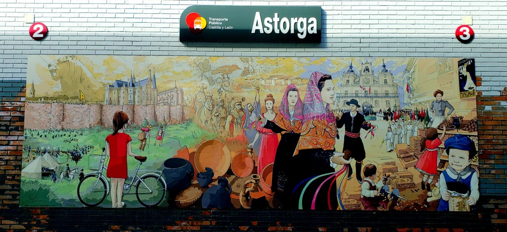 Astorga is a small town, on the Camino de Santiago, in the autonomous community of Castille and León, and a short bus ride away from the city of León. We took a morning bus from the León station and arrived in Astorga, taking note of the many pilgrims with their large backpacks complete with shells, walking sticks, wearing hiking shoes and large brimmed hats, as they made their way toward Santiago de Compestela in Galicia. There are many routes of the Camino de Santiago, some that go through our city of Gijón, others through Oviedo (just South of Gijón), and another through León and Astorga (the original French way). The hike can take weeks or months in some cases, and it is very popular, as there are markers all throughout pointing the way, usually these take the form of scallop shells on the ground or on posts, telling the pilgrims they are headed in the right direction.