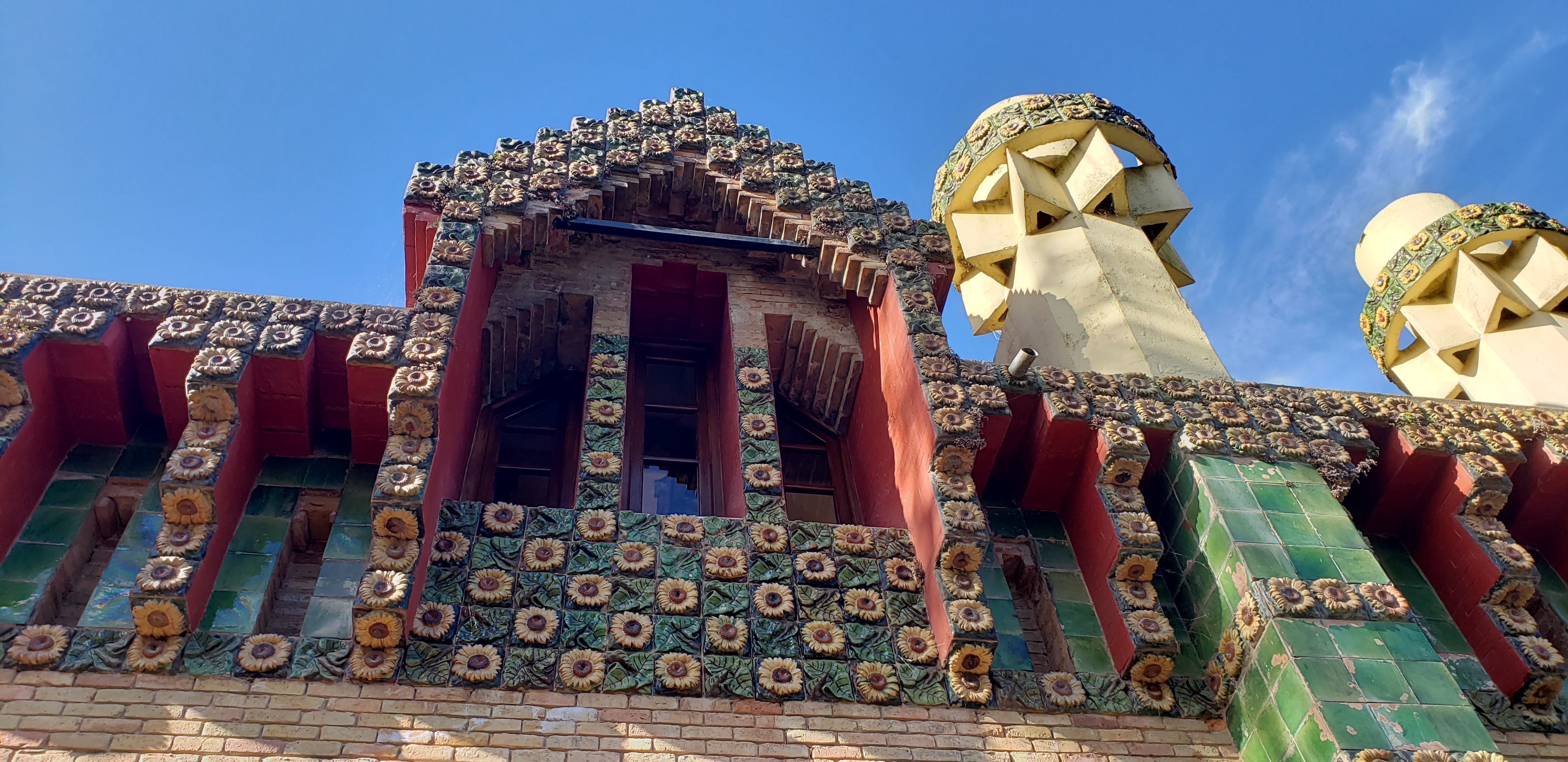 The house was constructed between 1883-1885 for a wealthy bachelor, Maximo Diaz de Quijano who made his fortune as a lawyer in Cuba. He returned to Comillas and commissioned Gaudí to build him his home. Gaudí designed every aspect of the residence, the doorways, furniture, ceilings, floors, even including the gardens that surrounded it. It is truly a fairytale home, and the idea of a connection with nature is evident throughout. The tower is truly impressive, and the whole home was designed to let in as much sunlight as the day allowed, and, as such, is covered in sunflower tiles.