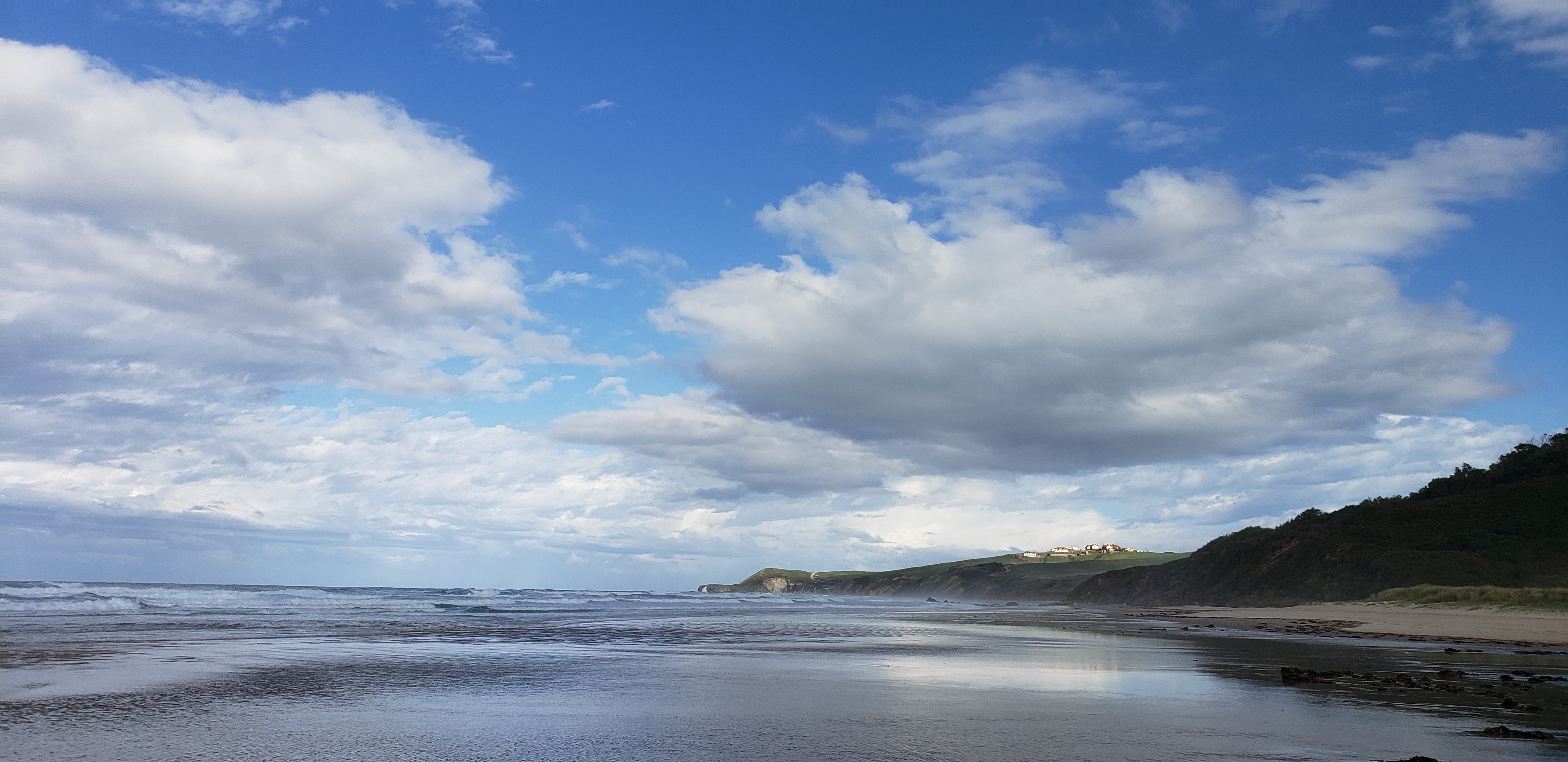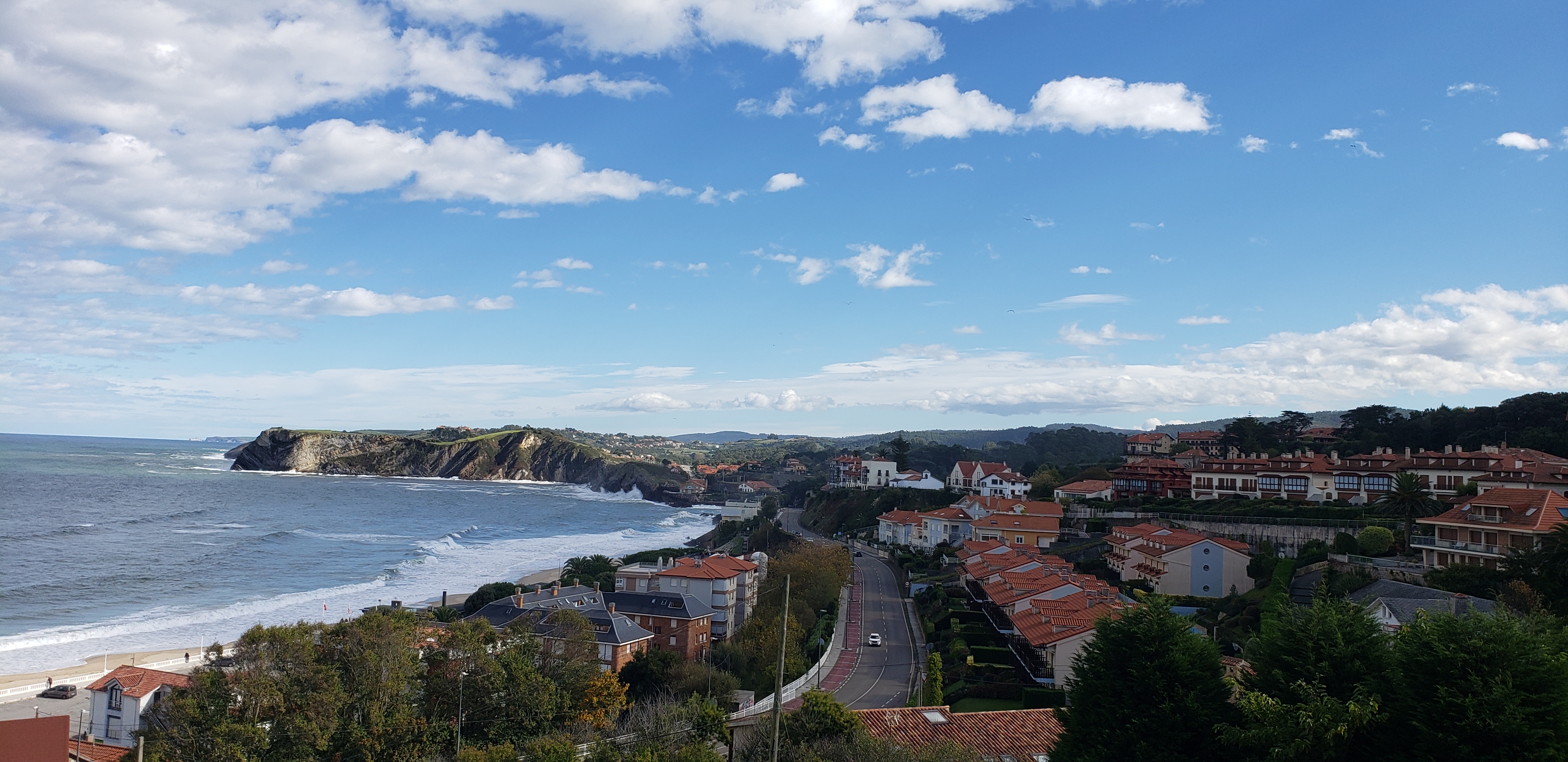 We saw the road we had to walk to reach it, though on the right-hand side there was small break in the tall bushes, and we again said, lets go that way, and this led us to a large park with soft, bright, green grass, an even larger statue, and a stunning view of the Cantabarian Sea.