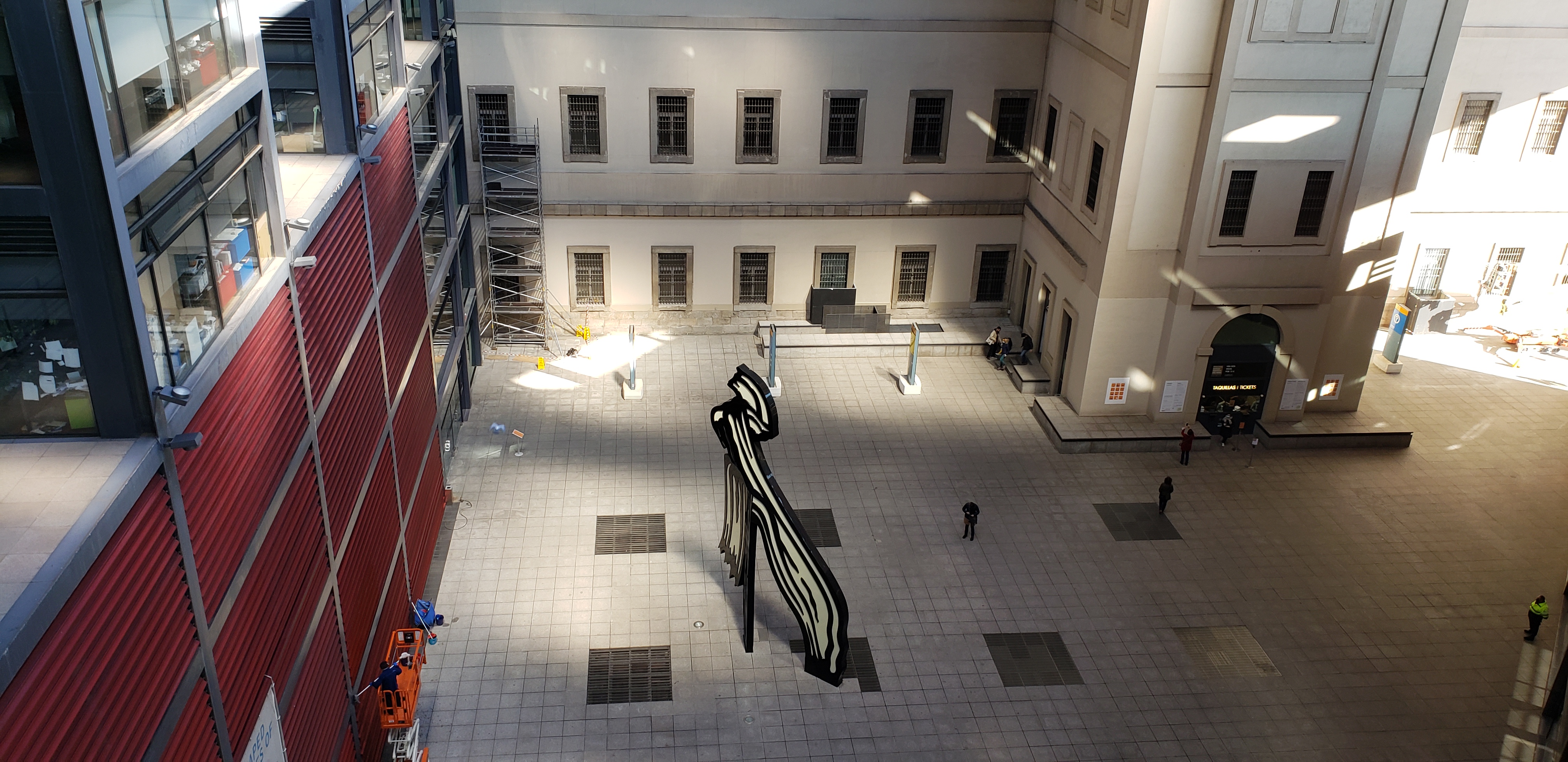 Our next day in Madrid began with a trip to the Reina Sofia Museum, which is the second Museum in the Madrid Art Triangle, which includes the aforementioned Thyssen and also the world famous Prado. We had visited the Reina Sofia on our last trip, but only made a beeline to Picasso’s Guernica, as we only had about an hour to visit before closing. The Reina Sofia specializes in modern and contemporary art, and has some impressive pieces by Dali, Max Ernst (who I have grown to like a lot after seeing many of his art works in Spain), Kandinsky, Miro, and Chillida, among others. They also had an impressive collection of posters made during Spain’s fascist era and the Soviet era in Russia. We could also traverse the top level, which provided good views of the city, the outside statues, and Atocha train station.