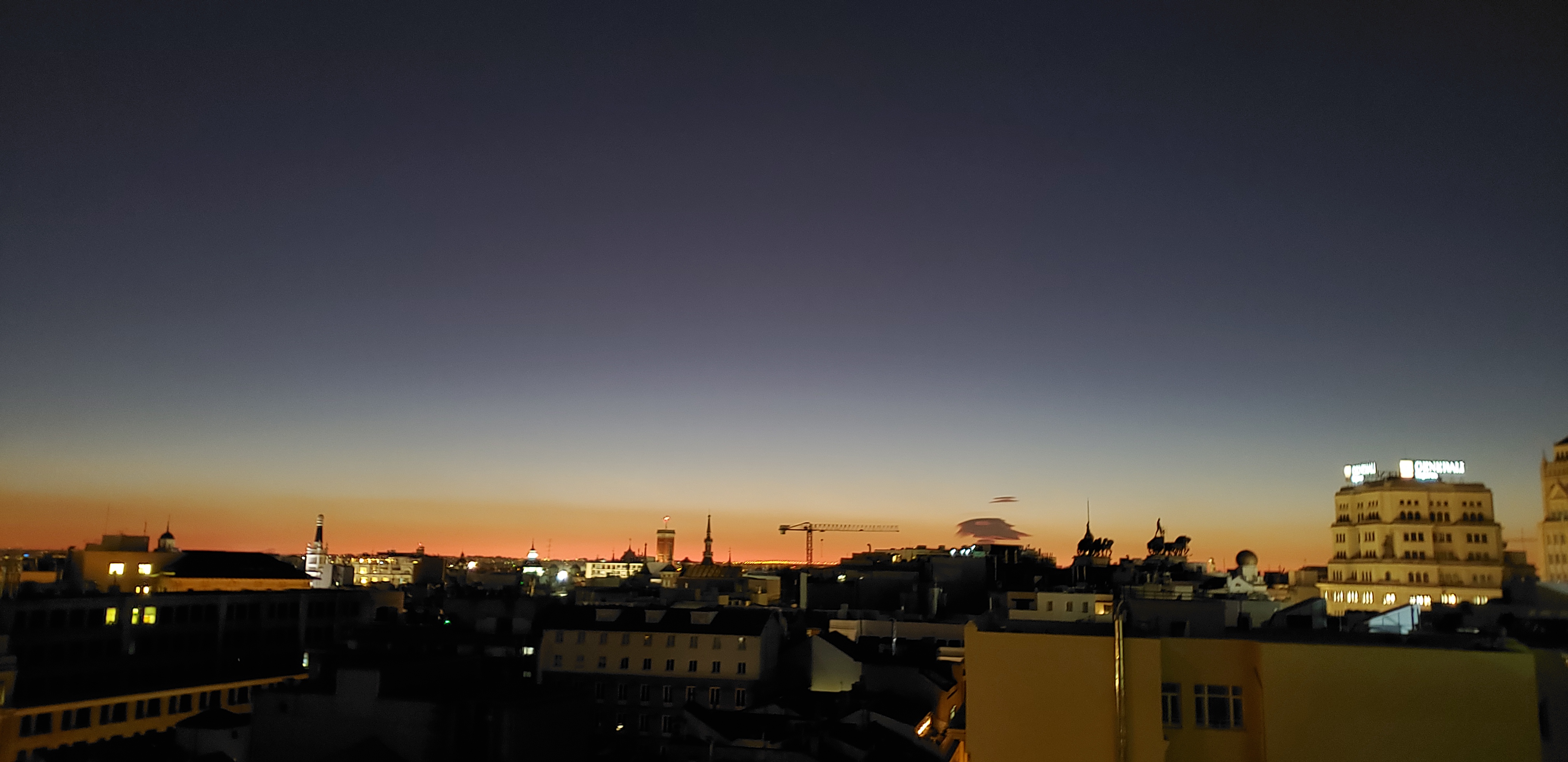 After this we joined the birthday group at a virtual reality game, in which we were given headsets that removed all hearing and sight, given plastic rifles, and set out to kill as many zombies as possible (and not shoot each other). We played for a little less than a half-hour, but it could’ve been an hour or ten minutes; one loses track of time in VR world. I finished second out of sixth (thanks to decades of video game playing) and after taking off the packs, headed off to a bar with a rooftop view high above the city, to watch the sunset.