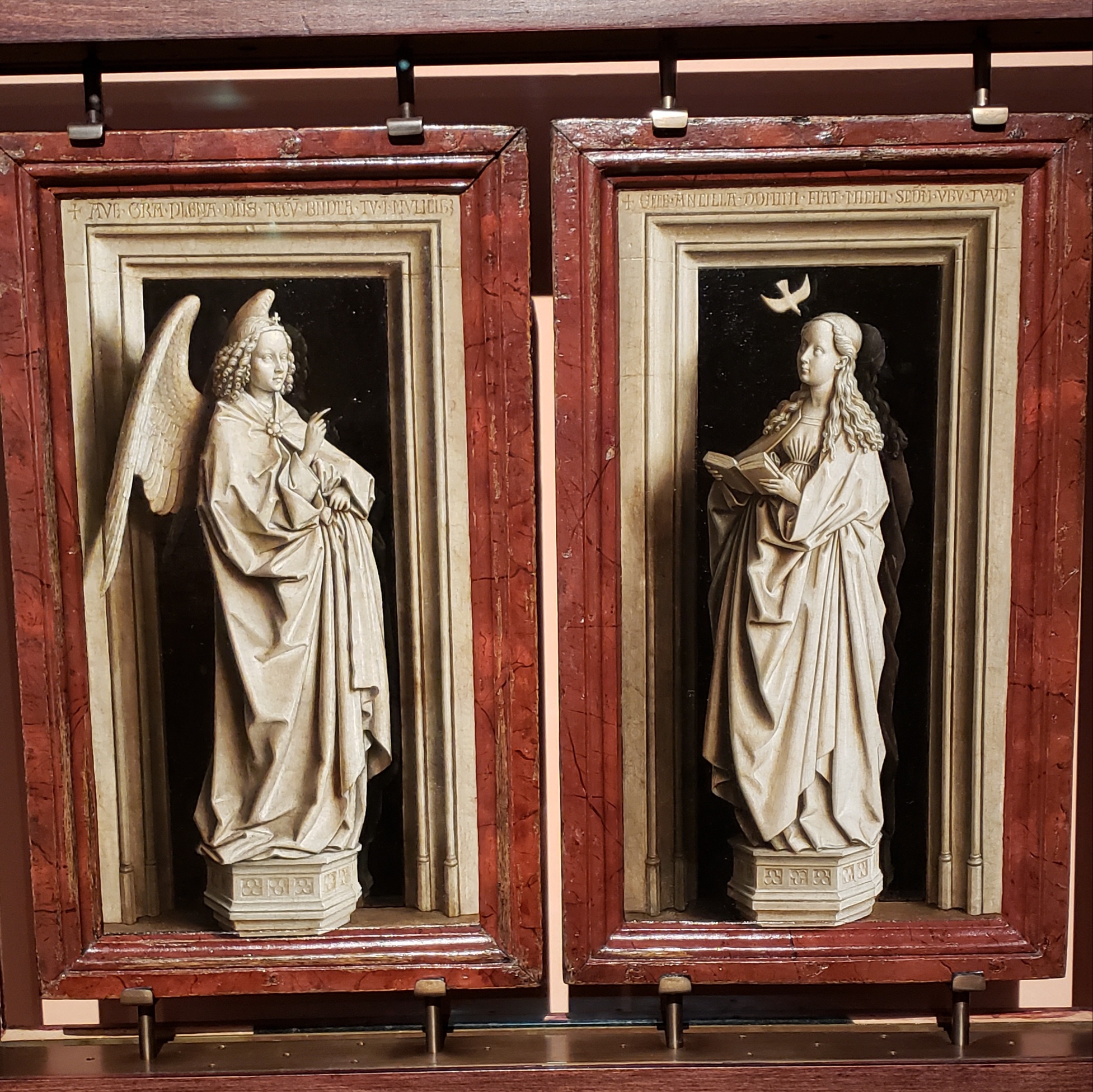 After this we walked to the Thyssen-Bornemisza National Museum, which is an art gallery featuring paintings and other works from the medieval and Renaissance times to modern and contemporary art. They have a lot of really impressive paintings, and while there were a few too many paintings of the patrons; but when the museum and collection was yours, that makes some sense. Below are a couple my favorites in the gallery. On the right is a portrait of Maria Rosa Walburga von Soyer by Georges Desmarees (1750), and she bears a striking resemblance to my maternal grandmother, Giovannina Rossi DiBerardino. The other is The Annunciation Diptych by Jan van Eyck from 1433 (these are paintings, not statues), and The Annunciation has become my favorite biblical depiction, as so many artists in the medieval and Renaissance periods painted their own interpretation on the theme it is interesting to see all their different takes.