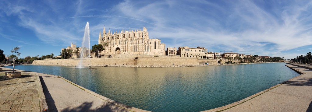 We drove back to Palma, where we parked our car across from the Catedral-Basílica de Santa María de Mallorca. We stopped for a drink directly across the fountain from it, enjoying the sunny sky and cool breeze in front of the impressively large Catedral.