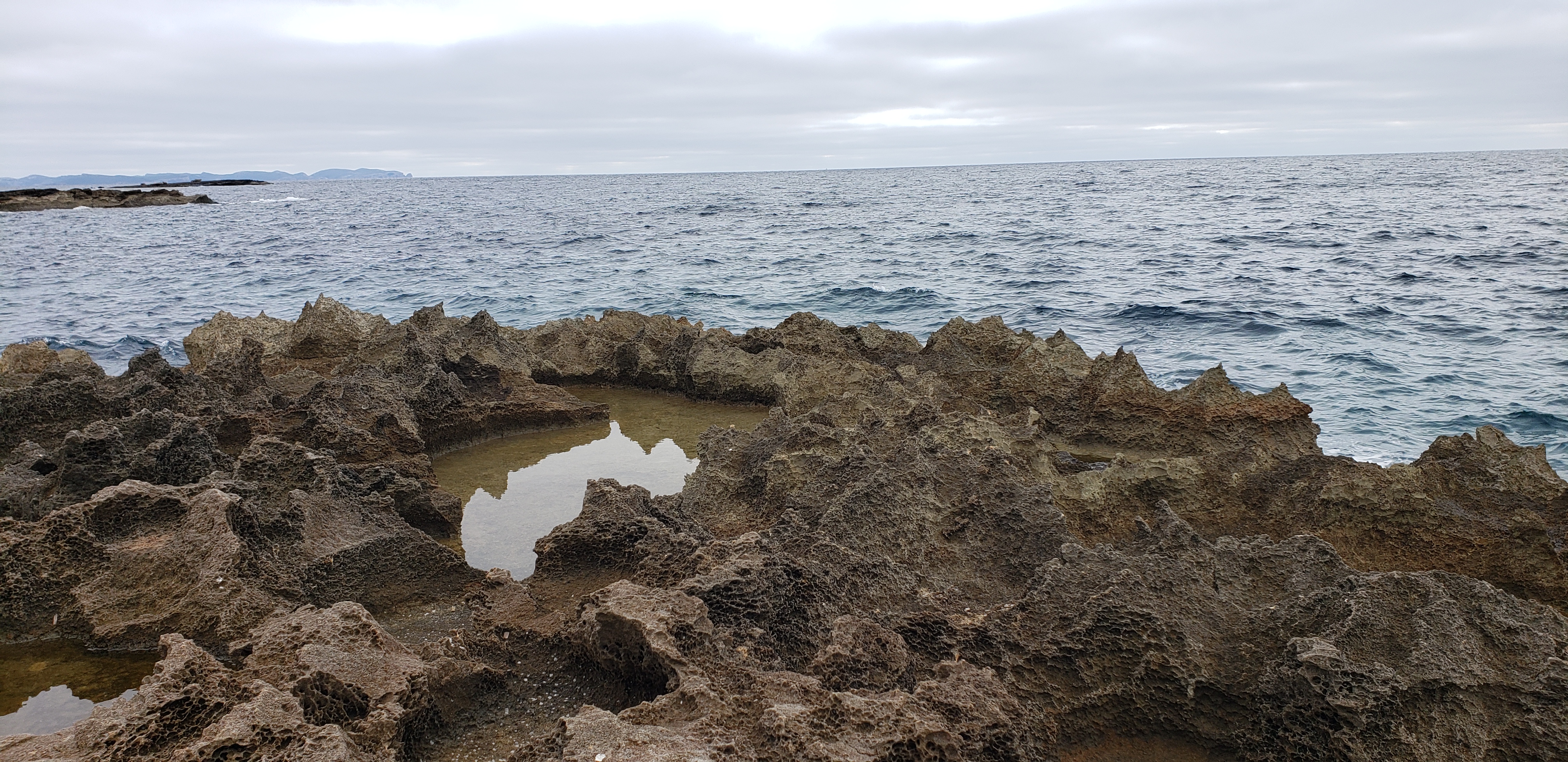 We drove to the port town of Porto Petro, where we finally found two restaurants open, and it being lunch time, we were quite excited to eat really good food; top notch bacon wrapped dates, Cannelloni with duck and foie gras, Lamb shank with verdugas and patatas fritas, and an excellent tarta con helado for dessert. Afterwards we felt satiated, and had just enough time to stop at one final location; the Platja des Marquès, next to the wetland park Salobrar de Campos. We did some more walking on sea rocks as the sun stayed hidden behind grey clouds, and the wind picked up. We walked to the end of the long stone dock, out into the middle of the sea, alongside closed up hotels, and finally down a well kept walking path, enjoying the early afternoon post-lunch walk along the sea.