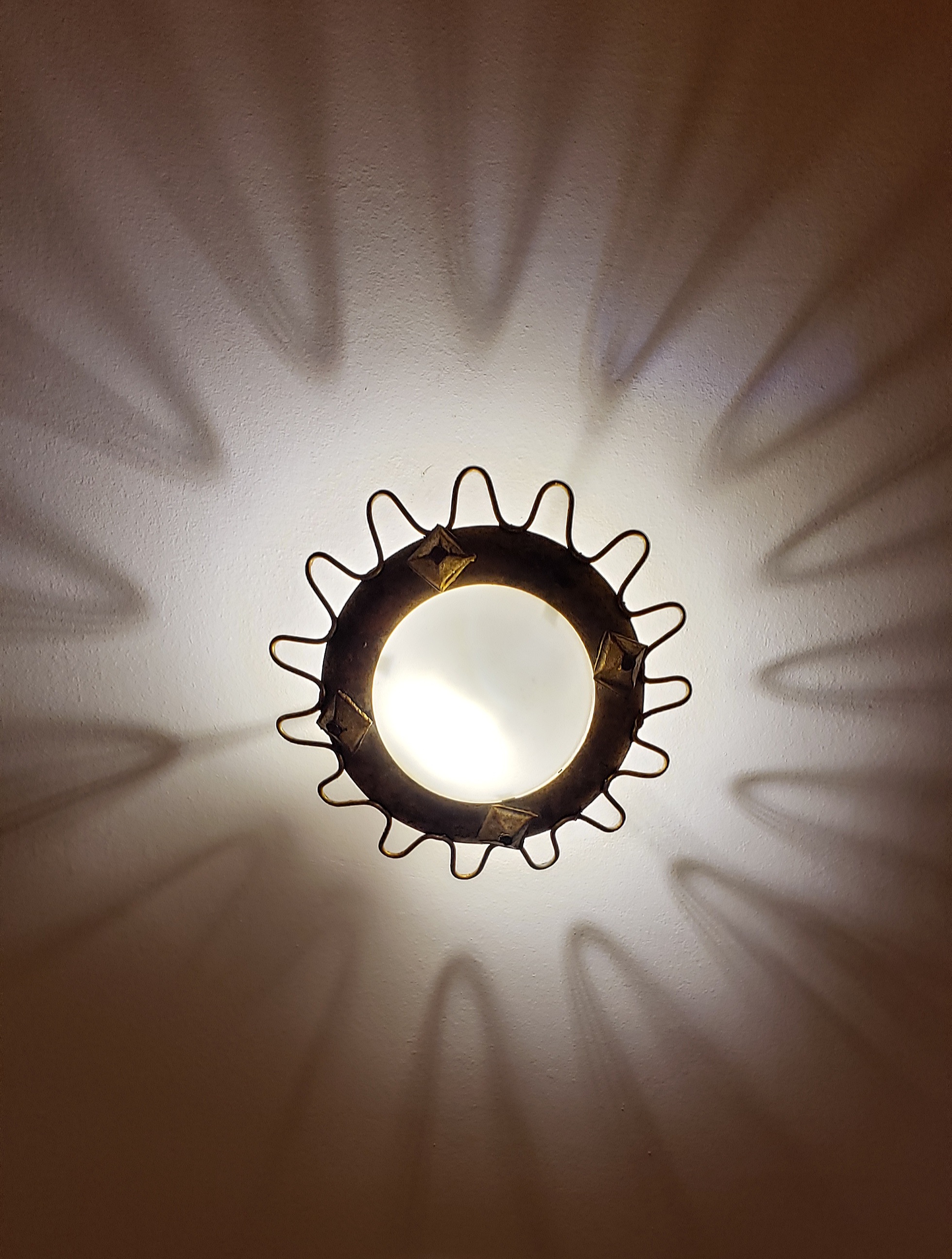 We reached the basement and the final stop was a dark room, that opened with a sliding door reminiscent of Star Trek, and inside was a glass floor and four large pillars. The black walls and ceiling were screens, and we were treated to a audio/visual treat for the senses, very trippy and Gaudí -esque. This room exited to the gift shop, where one could even purchase some Gaudí designed chairs (which we would now, after visiting many Gaudí sites, recognize anywhere).