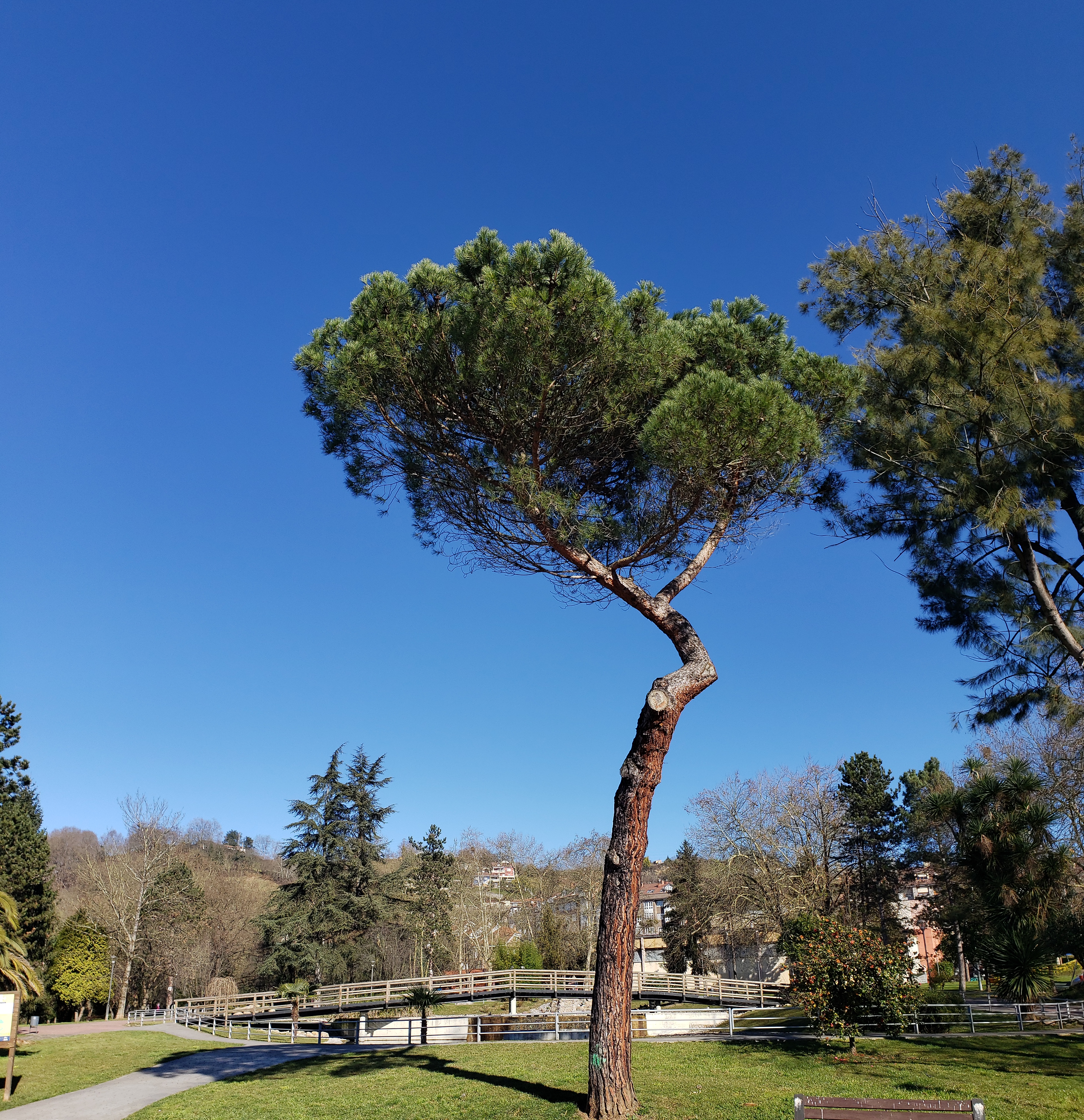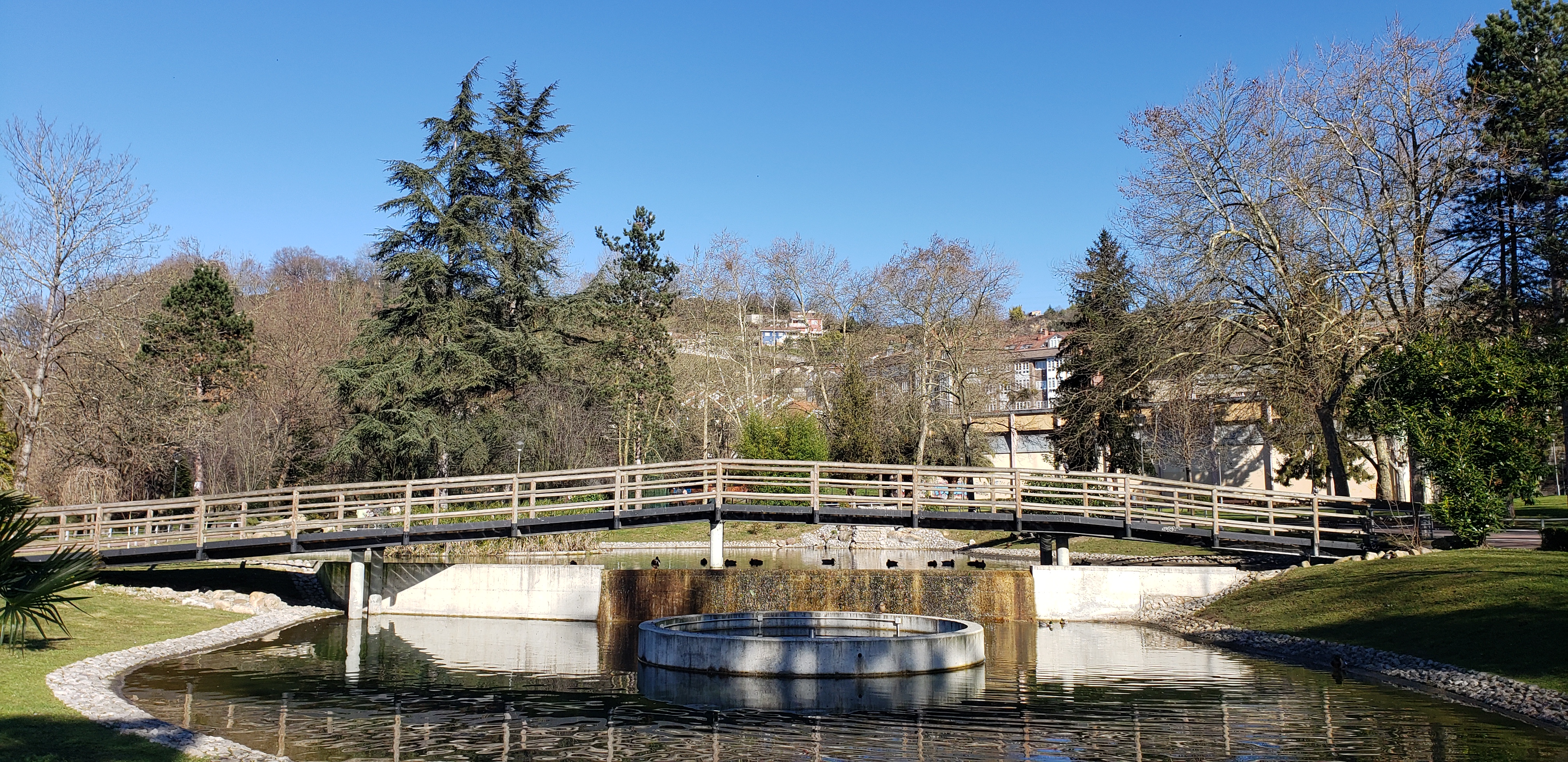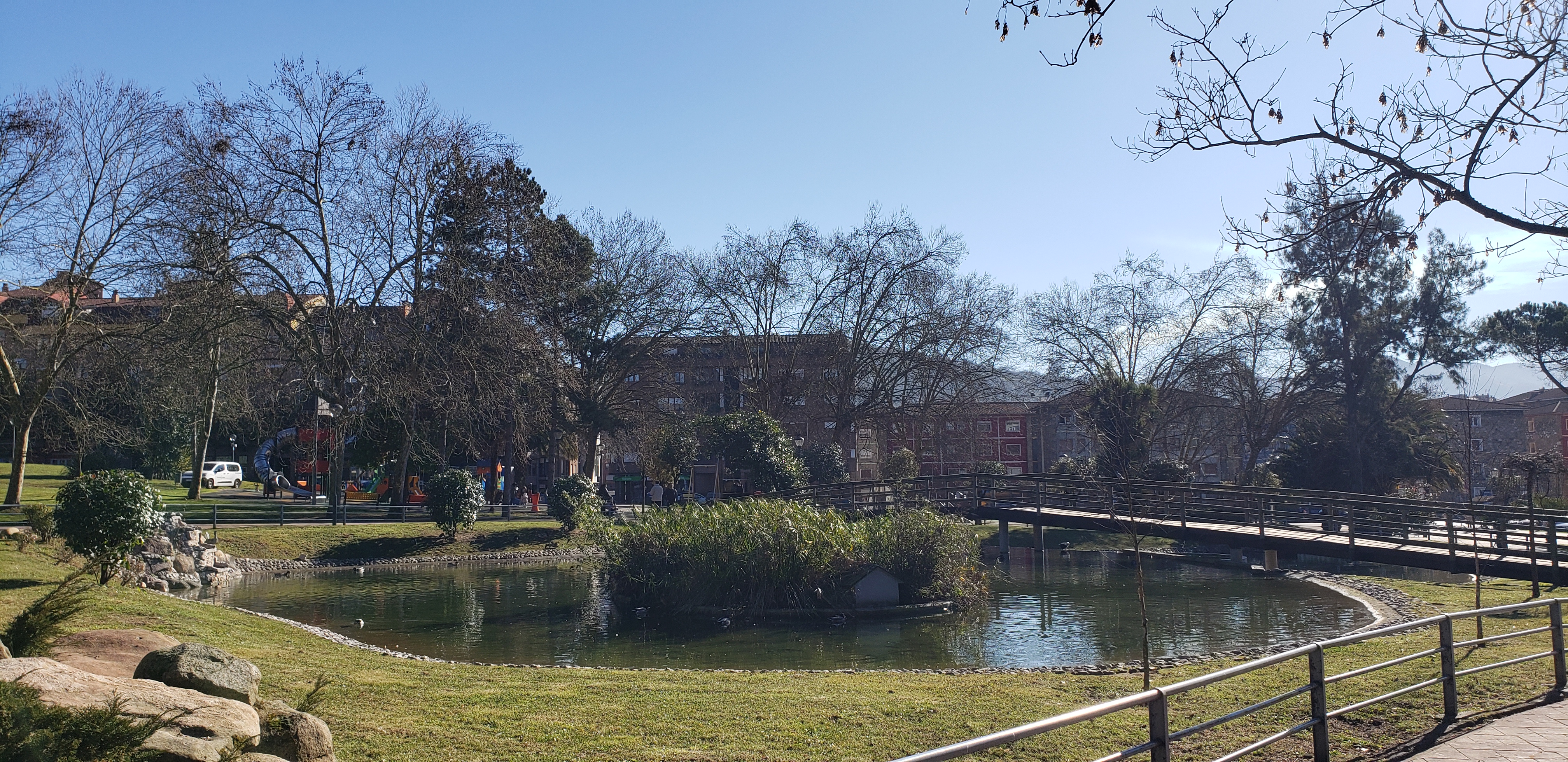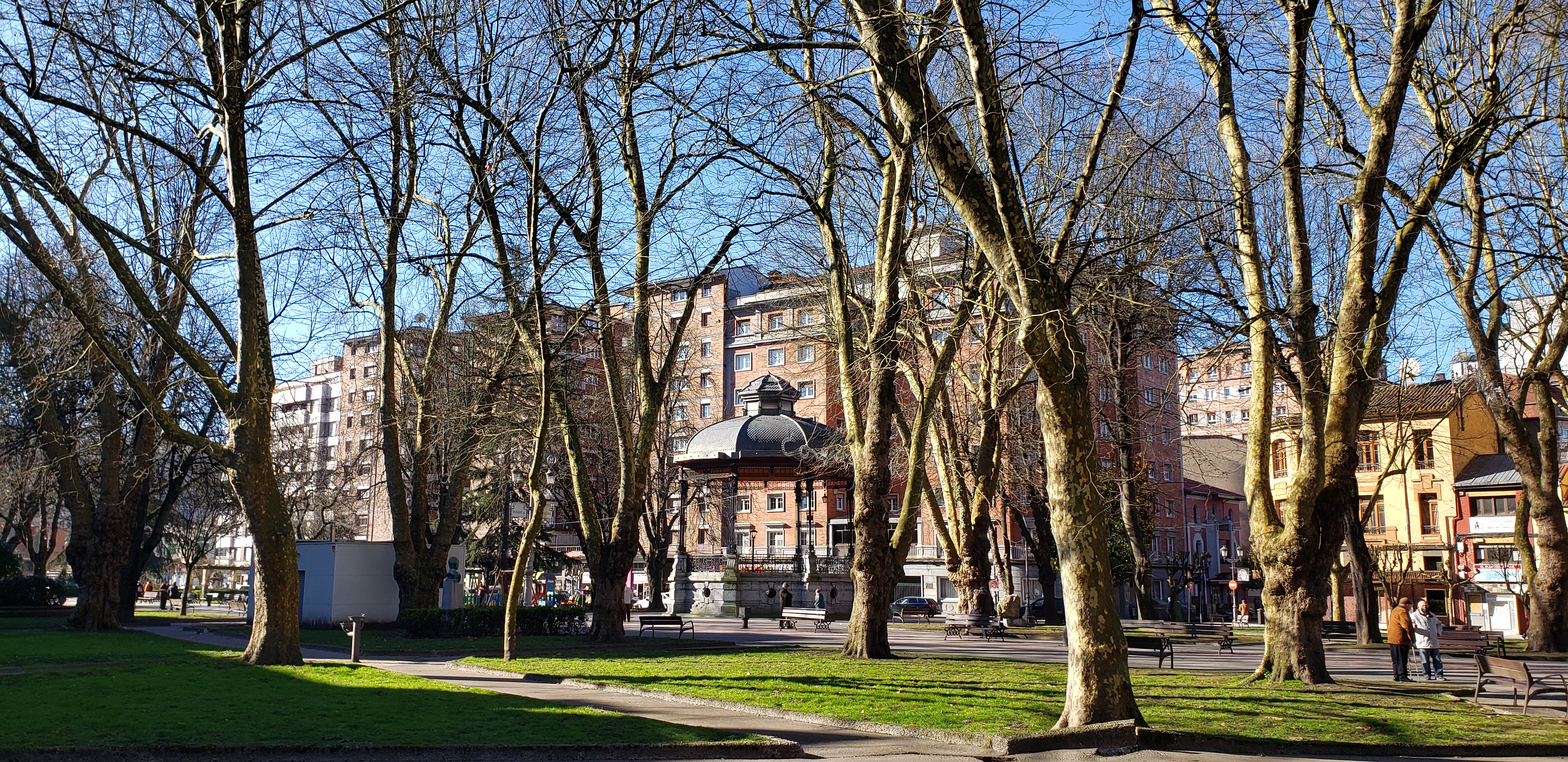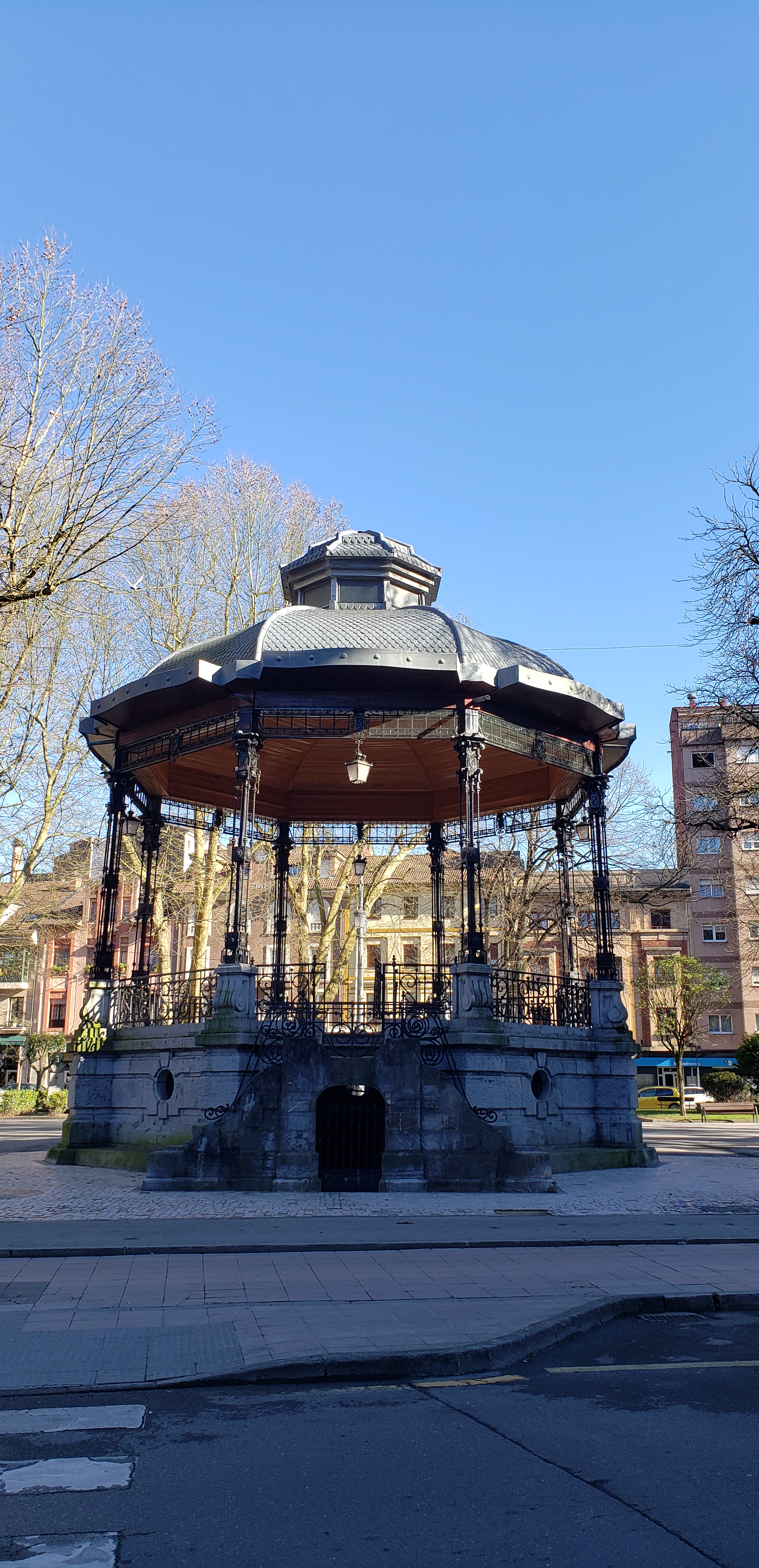 We walked a bit through the town, in search of cafe con leche, which we found at a small cafe nearby. We often say we have “time to kill”. Instead, what we really should say and what I am going to start saying moving forward, is “time to enjoy.” We had time to enjoy before the other local museum, the MUMI, opened and enjoy we did. We walked past all the hustle and bustle of the town, which operated at a much more pleasant pace than Mieres. We first arrived at Parque Dolores Fernández Duro. The park is named after the grand-daughter of Pedro Duro, an important industrialist who was instrumental in the mining industry in the area during the mid-late 1800s. There was an impressive bandstand and church, along with the tourist information office, a kids playground, and plenty of benches for people to sit.