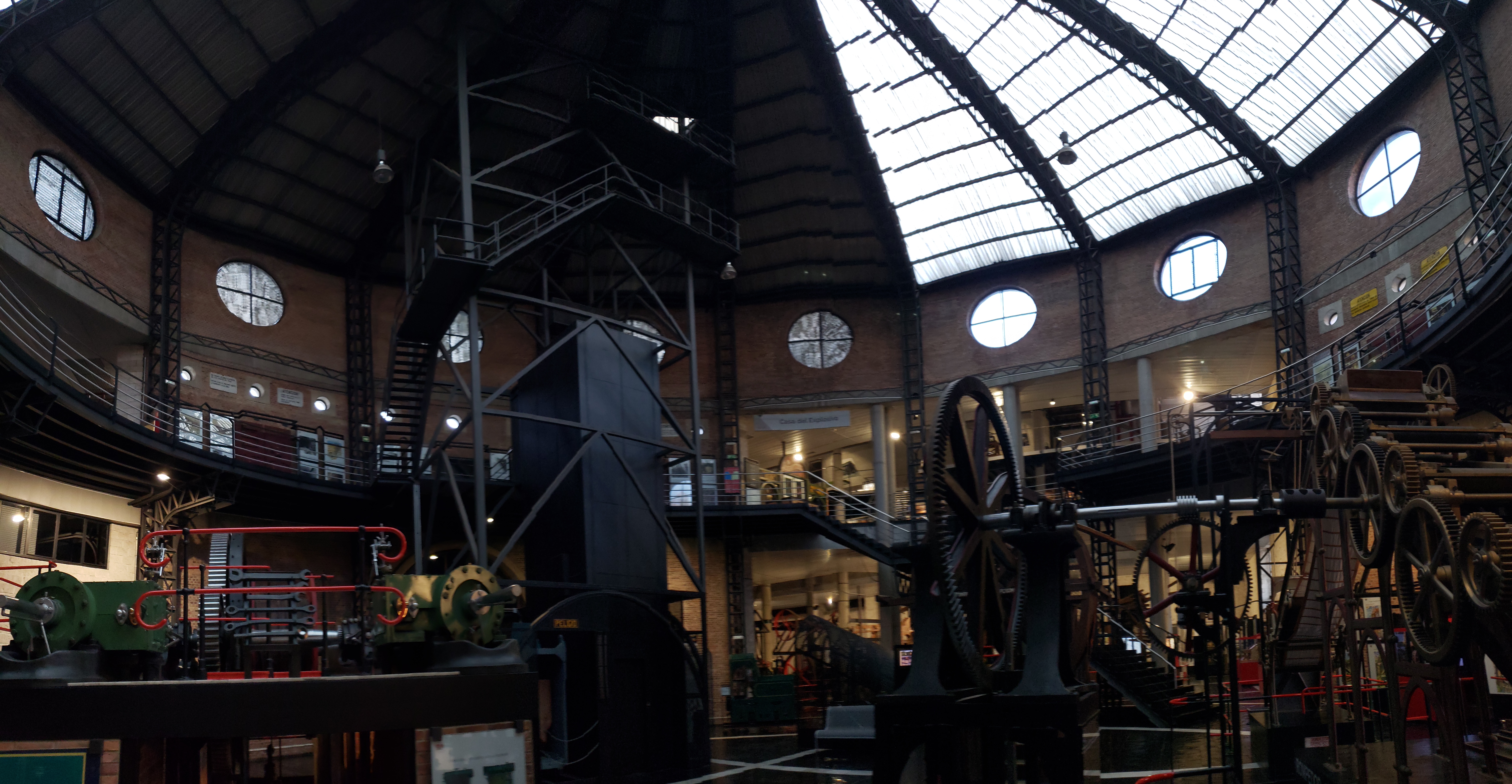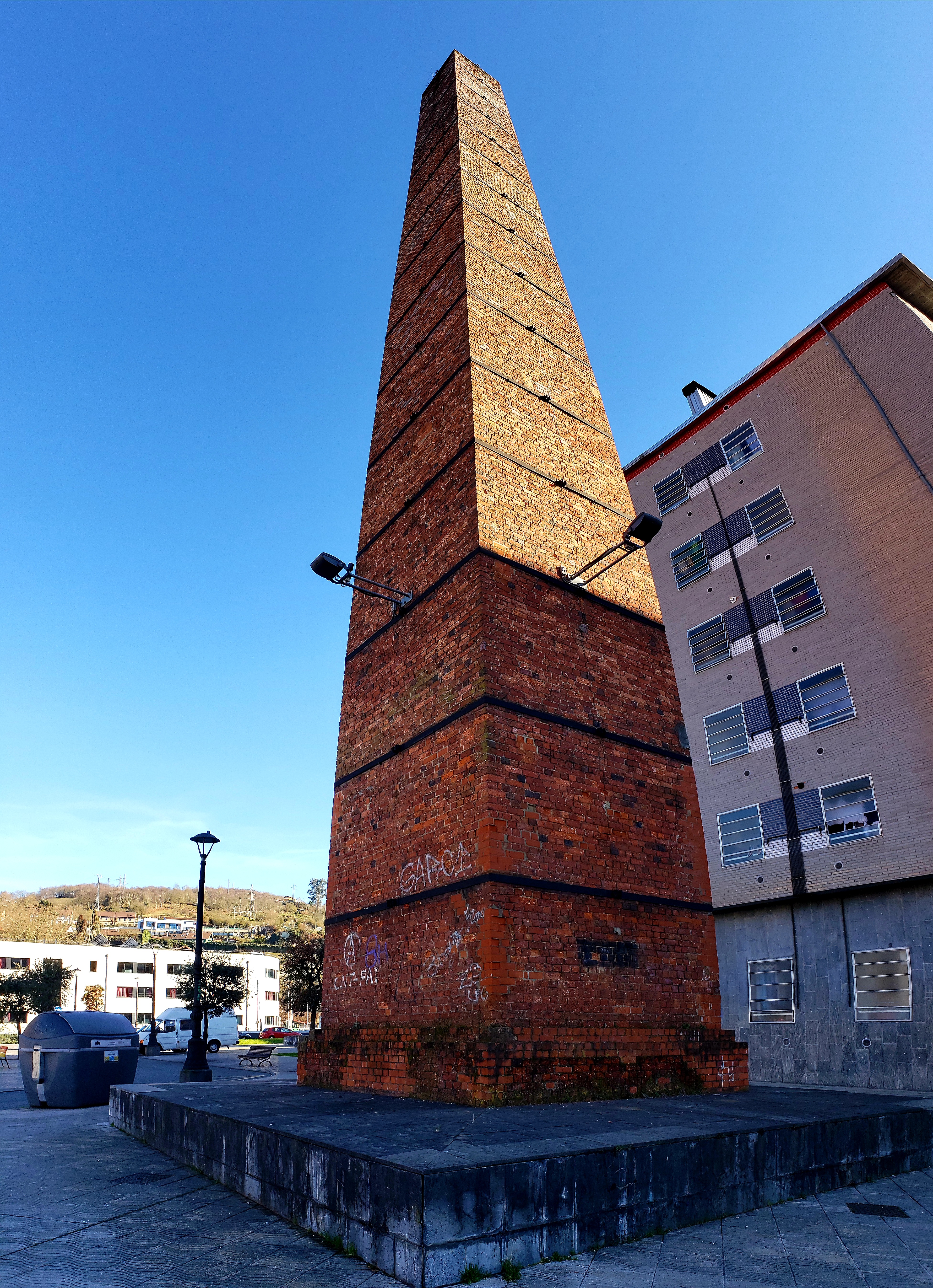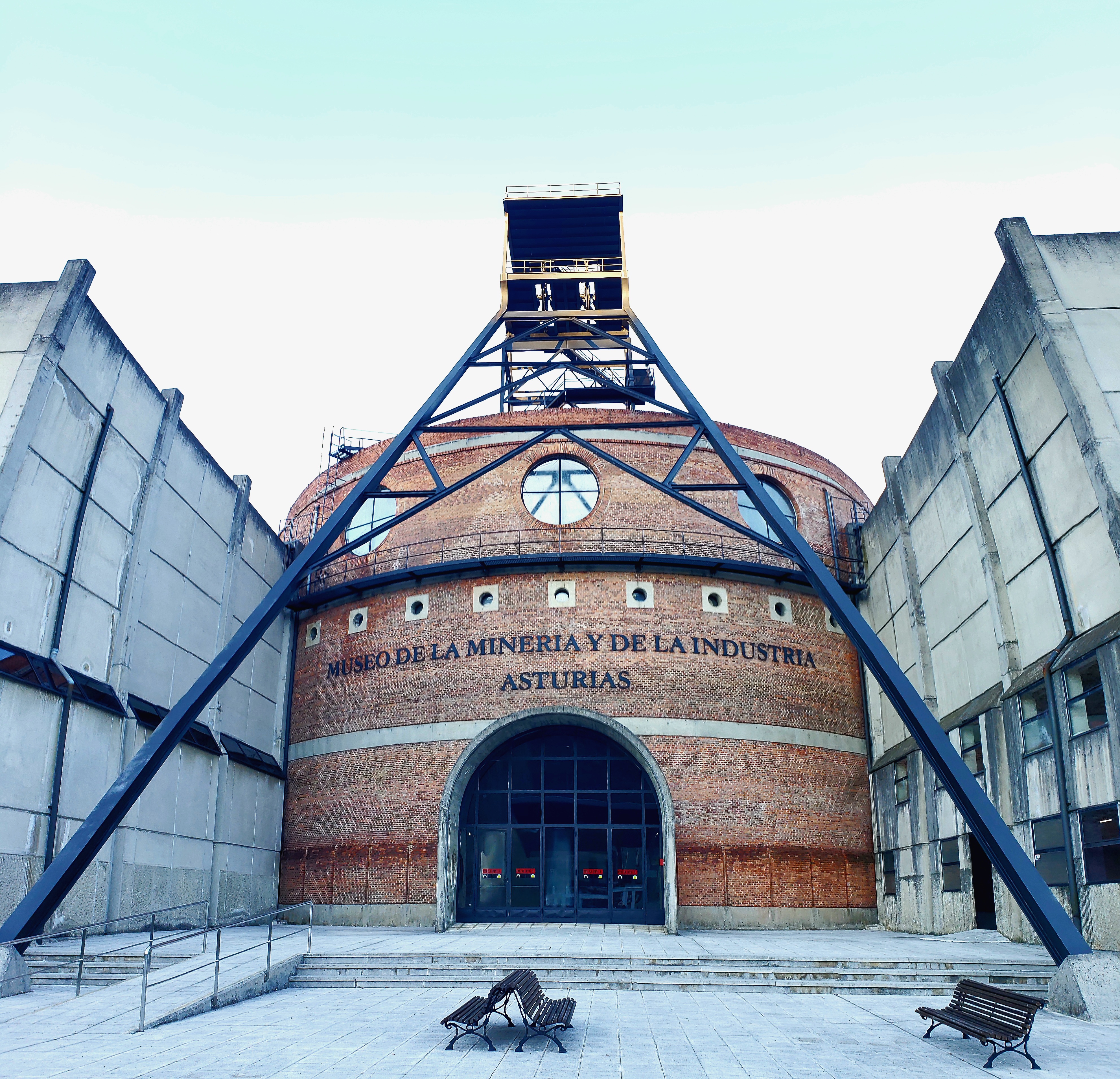 We continued our walk through the town, inspecting menu del dia boards, finally choosing La Toscana, which was packed the whole time we were there; indicating it was a good choice for only 11 Euro per person. We dined on cachopo, pasta, and toast with fresh tomatoes, mozzarella and sardines; and finished it by sharing a slices of carrot cake and cheesecake, and cafe solos. Properly satiated, we began our journey to the MUMI Museum of Mining and Industry in the nearby down of L’Entregu. First we passed La Tejerona, two smokestacks dating from the 1800s (one is below), part of a brick-making factory.