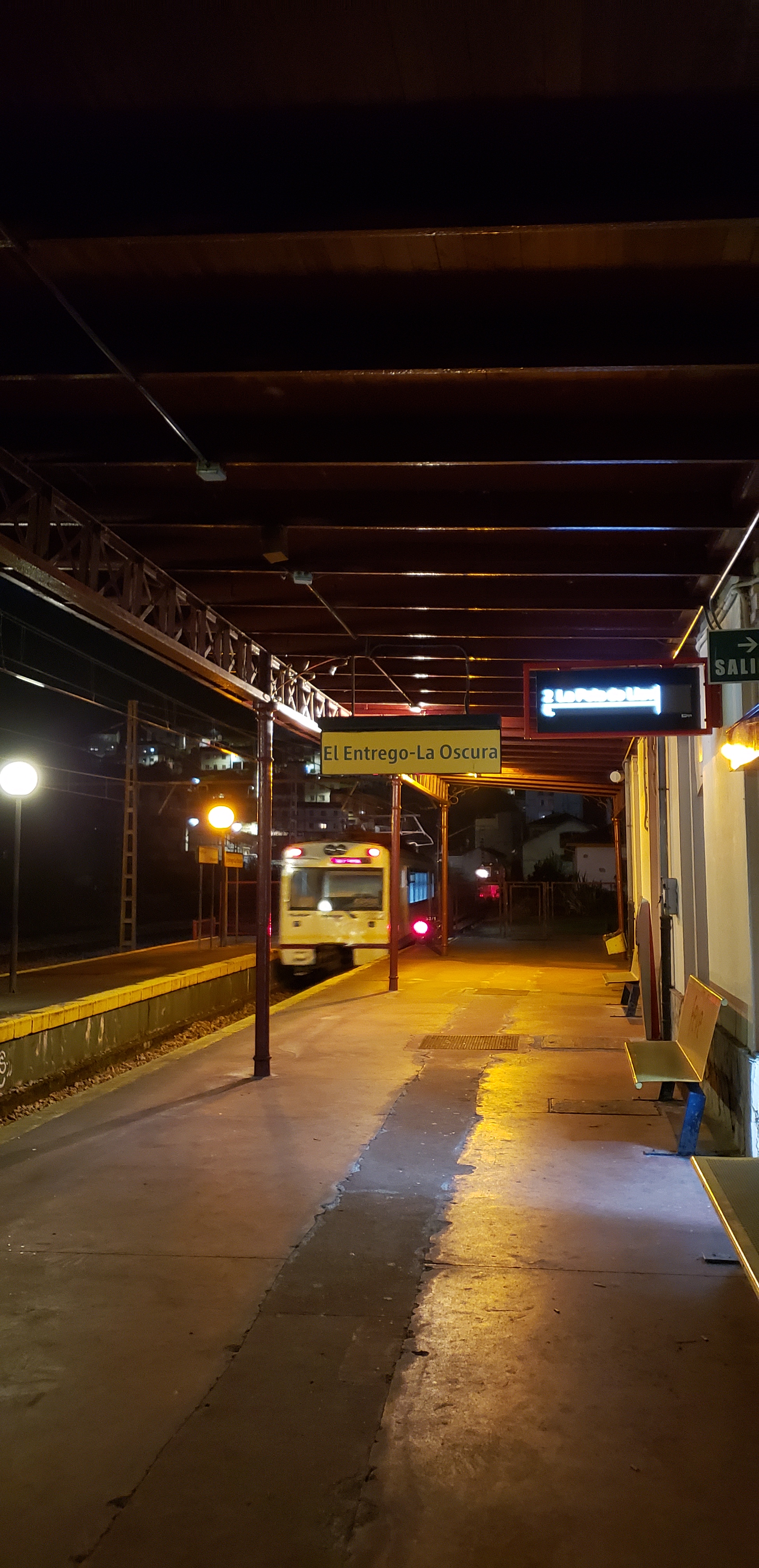 We concluded the tour with our guide telling us that we would have to walk back up as the elevator was broken, and we all signed, and she said “poco a poco” (little by little) we would climb the many stairs back to the main floor. To our surprise, it was only one flight of stairs, and we realized the elevator went extremely slow and was extra loud, to give the impression of a much farther trip. We laughed at ourselves for our worry earlier. We exited through the gift shop, picking up copies of a couple of the posters, the guide to the mine in English, and some postcards, for a very reasonable price. It had become night while we were inside, and we made the short trek to the train station and headed back to Gijón.
