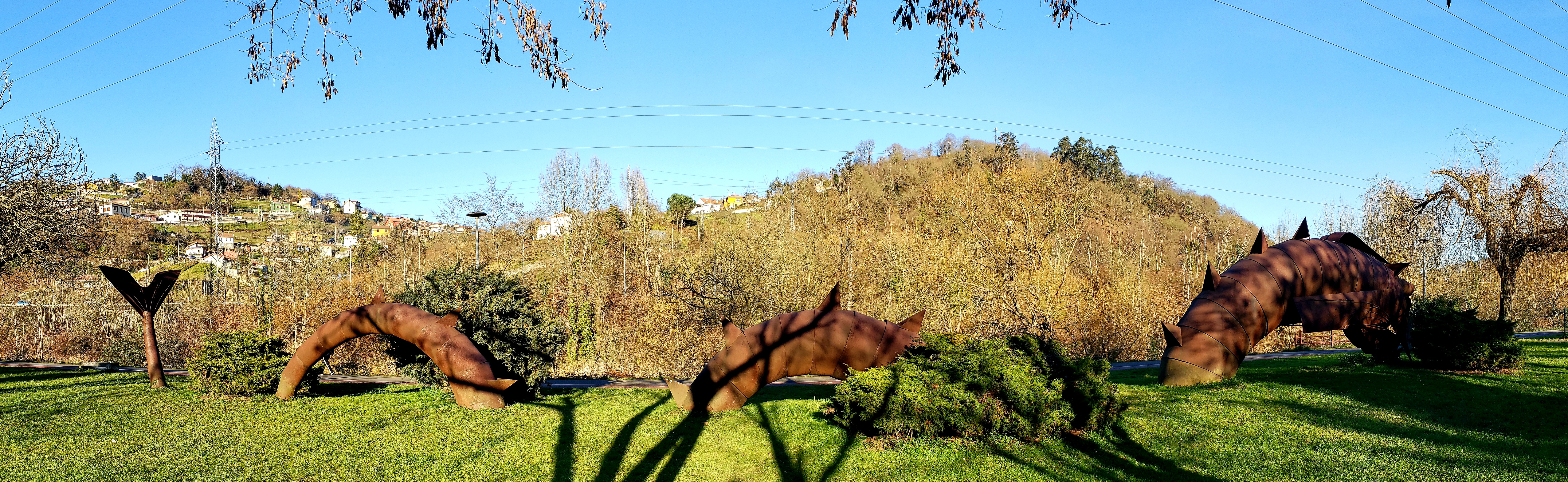 The walk took us alongside the Rio Nalón, which was peaceful as we listened to the river flow next to use. There were a few bridges we past on our our way, as well as a metal, rusted statue of a lochness-like monster.