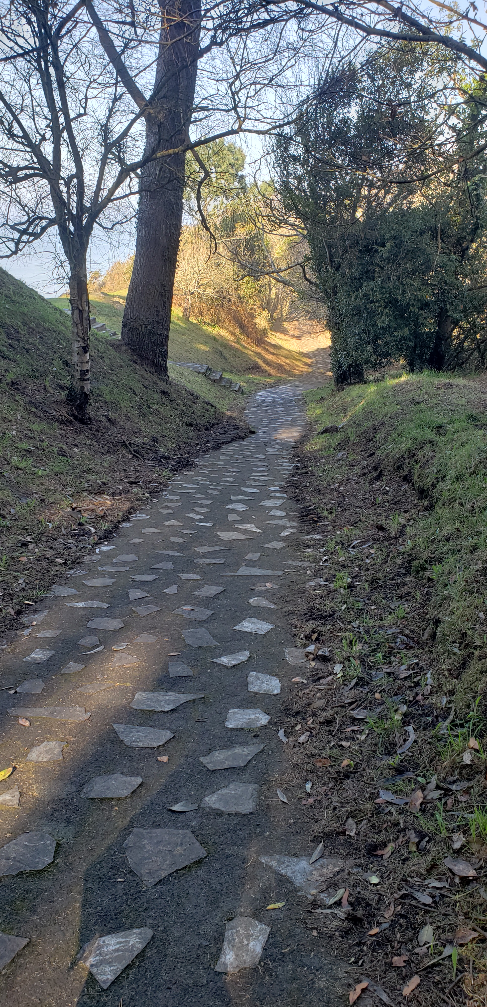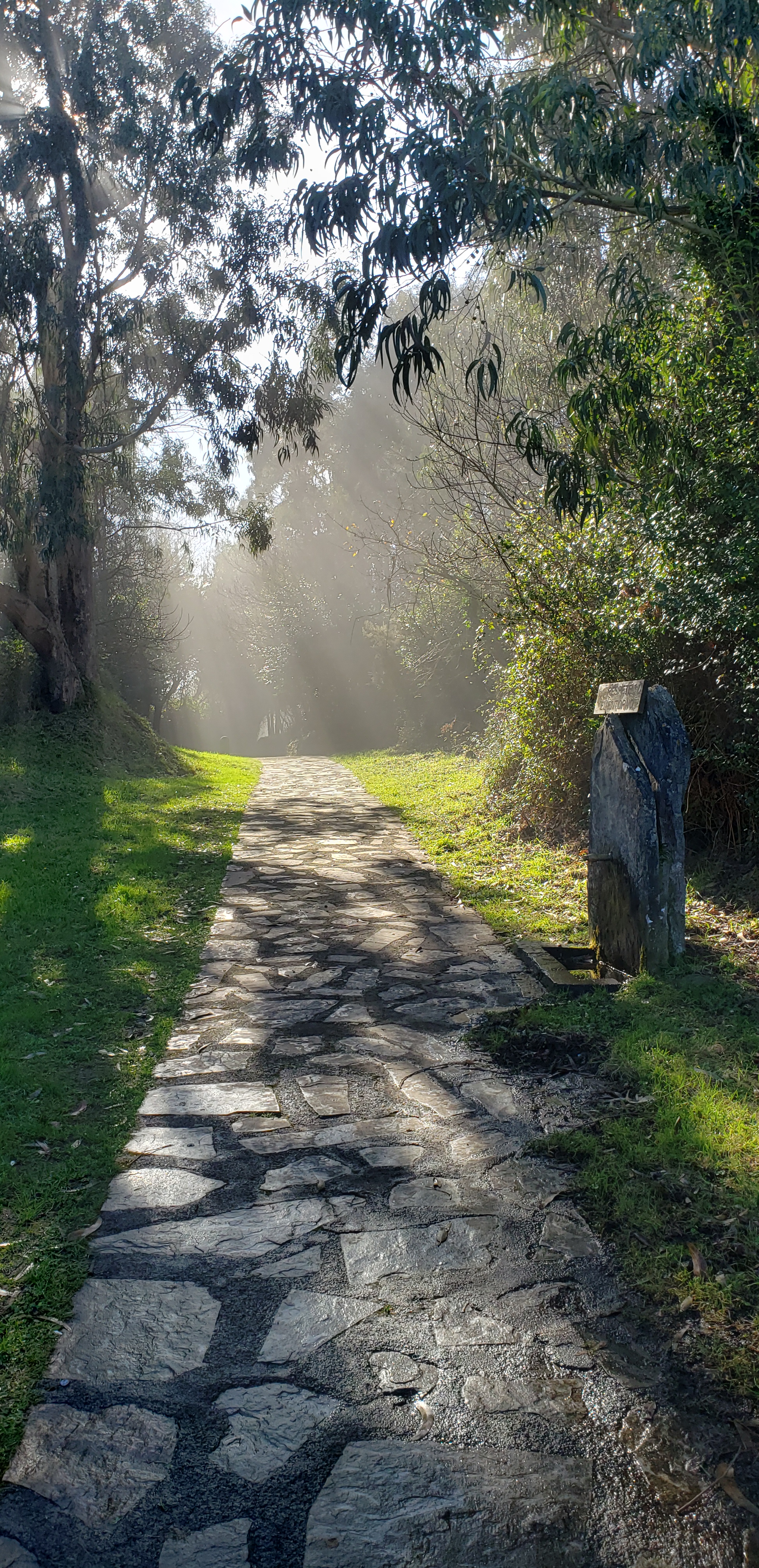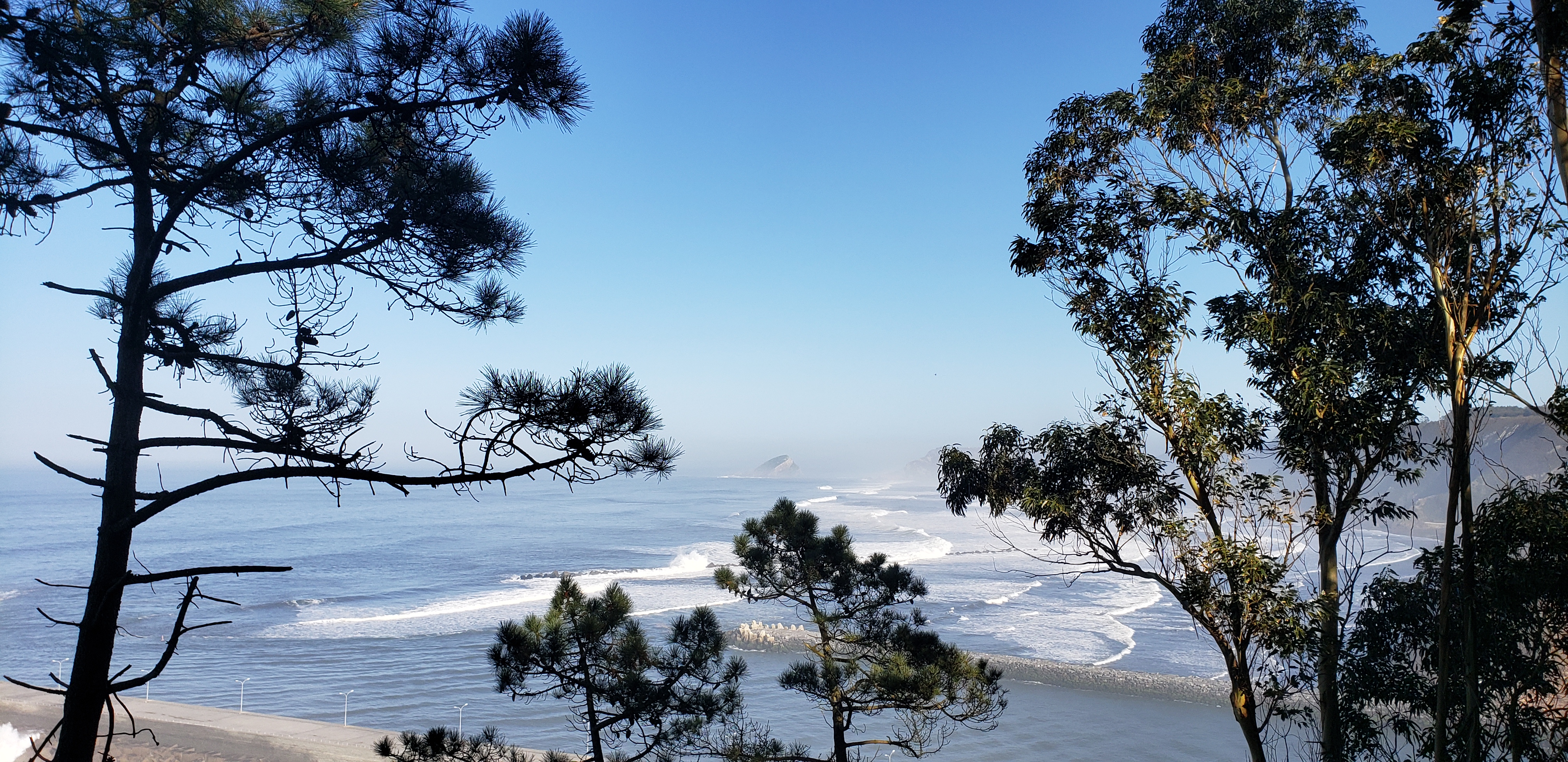 We continued to follow the trail along the coast, through the forest of eucalyptus trees. It was very peaceful and serene, and the few fellow travelers we happened upon we greeted with an Hola and this sentiment was returned, as all on the trail this bright day seemed to be enjoying the day to the fullest. The trails were well paved, and sloped downward and upwards in snake-like fashion.