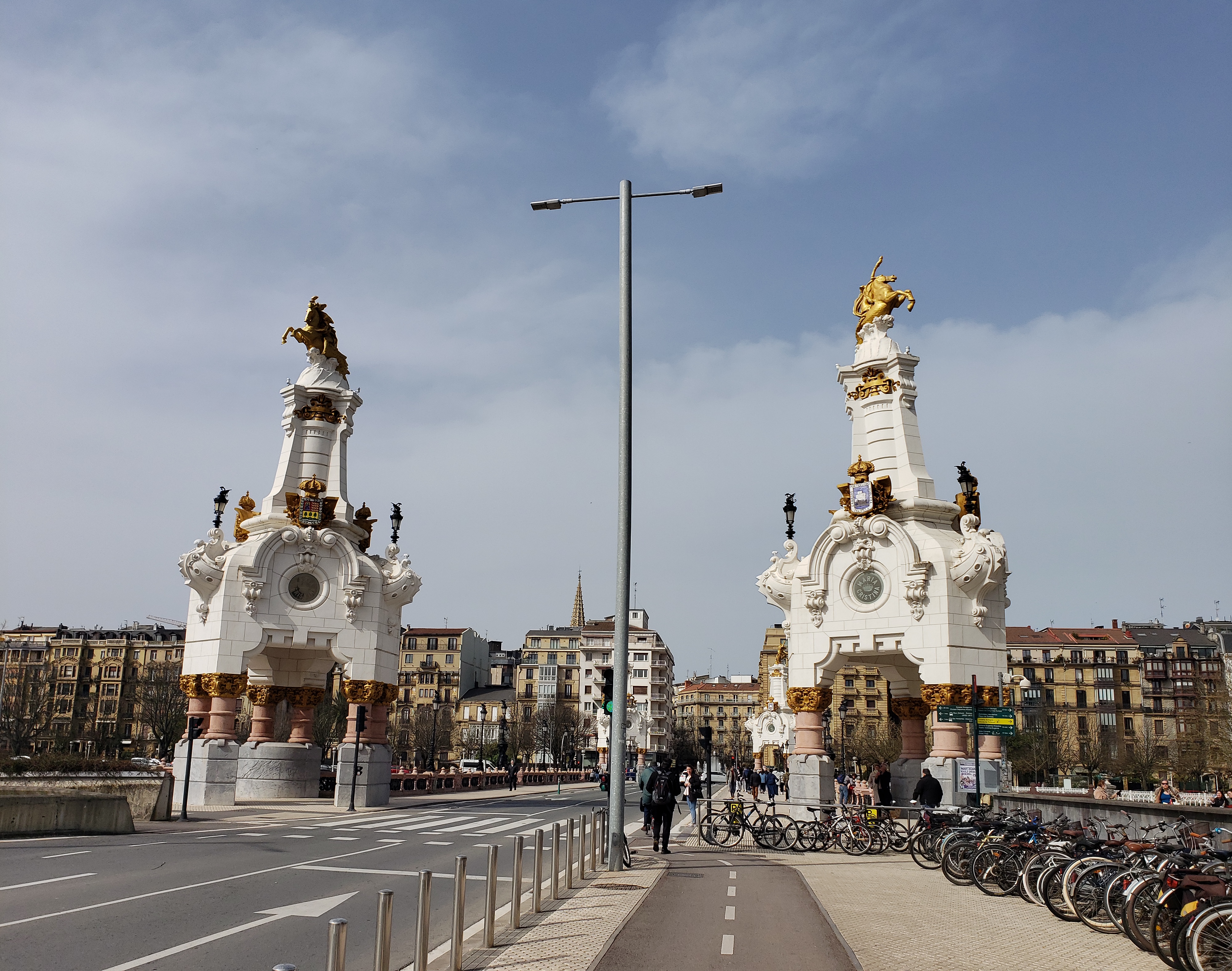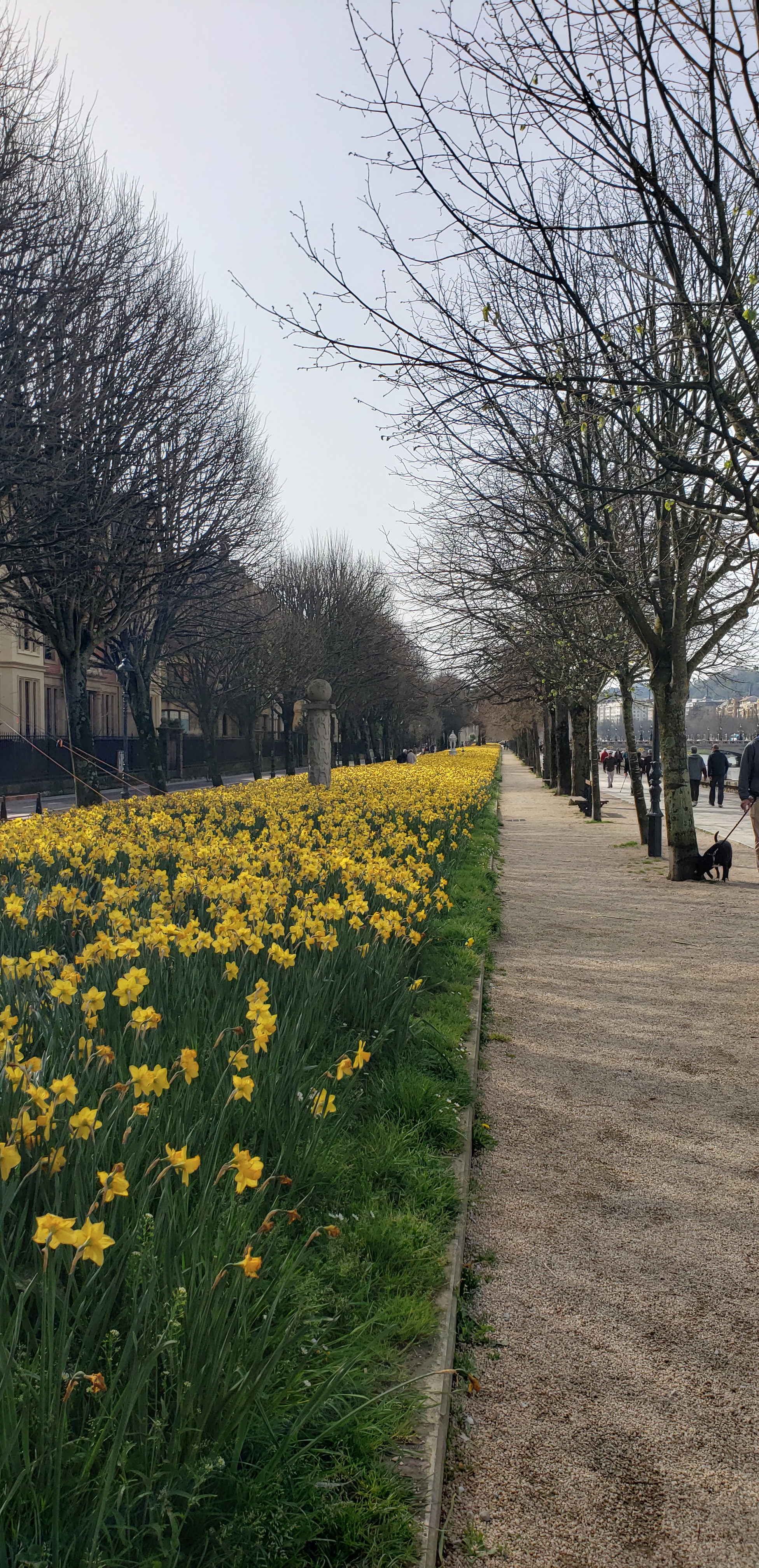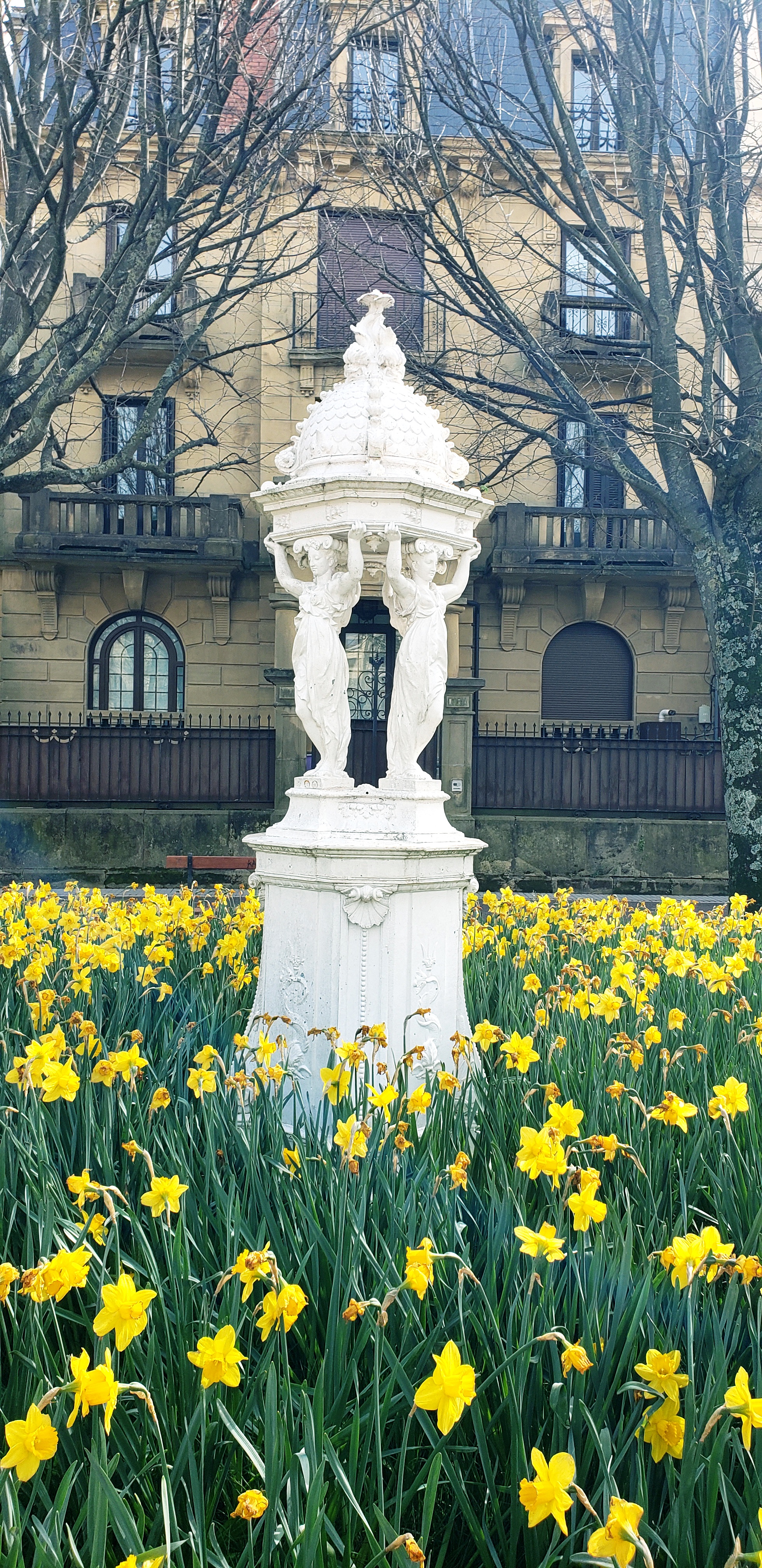 Our arrival and first couple days in San Sebastián (Donostia) can be read here…and this is how we ended our time in the Basque city. We awoke early, and as everyone was getting ready I decided to take a walk around the city while I waited. I walked along the the Urumea river, which splits the city, and there were hundreds of daffodils that lined the side I walked on. There are three main bridges to cross the river, and I headed for the most grand, the Maria Cristina Zubia bridge. There are two painted white with gold pillars on each side of the bridge, and shine in brighter in the sunshine,