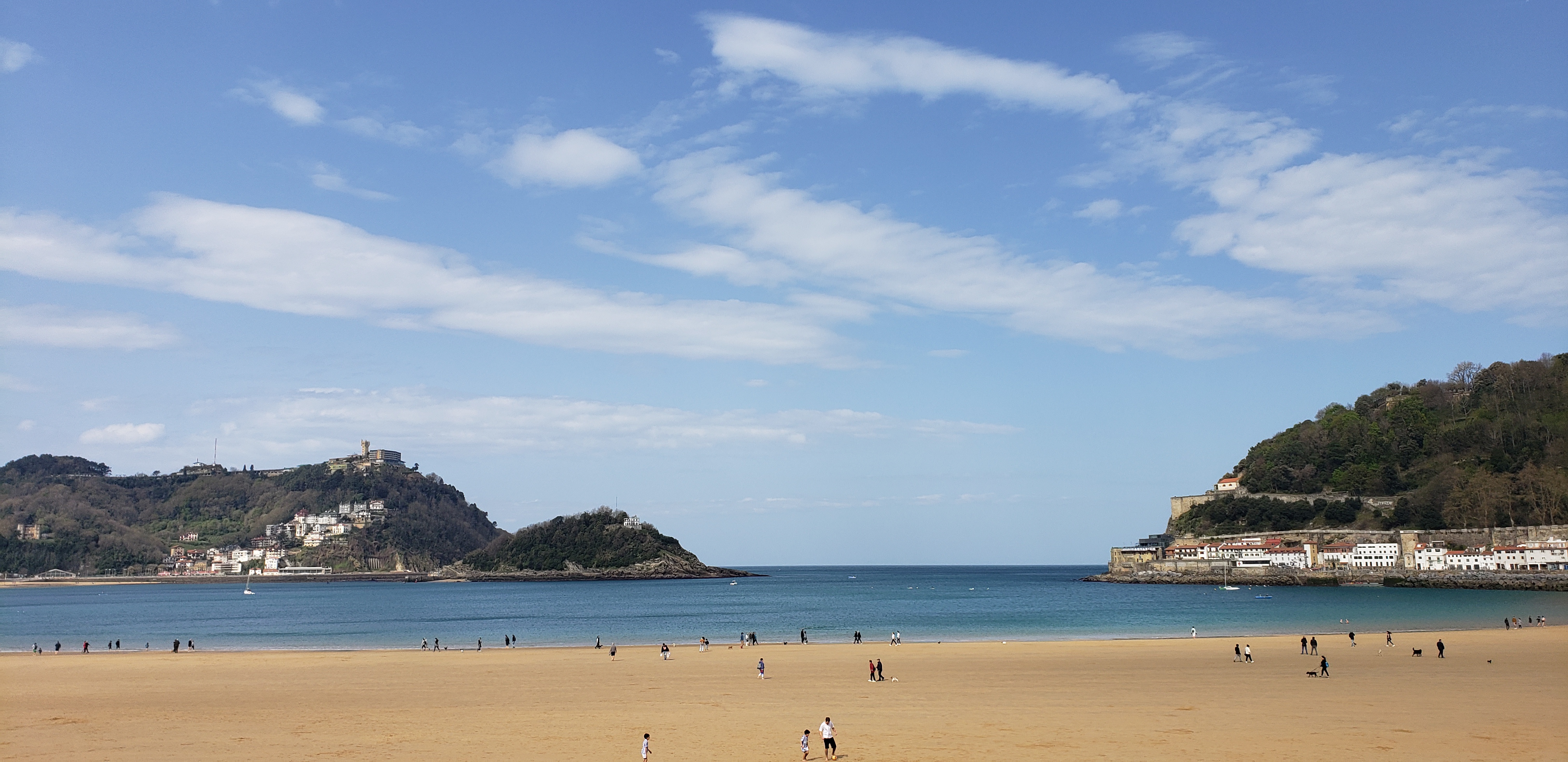 Our last day in San Sebastián we finally had time to do what everyone has to do when in San Sebastián, walk the Paseo Maritimo in front of La Concha beach (Kontxa Honartza). The weather was cool but sunny and people were out in full effect (mucha gente en la calle) while we leisurely strolled, stopped a few times to take cool beach pictures, and then continued on. It was pleasant to walk and enjoy the company, as we were very lucky to have Jesse’s aunt, uncle and cousin to talk with and share this very cool experience.