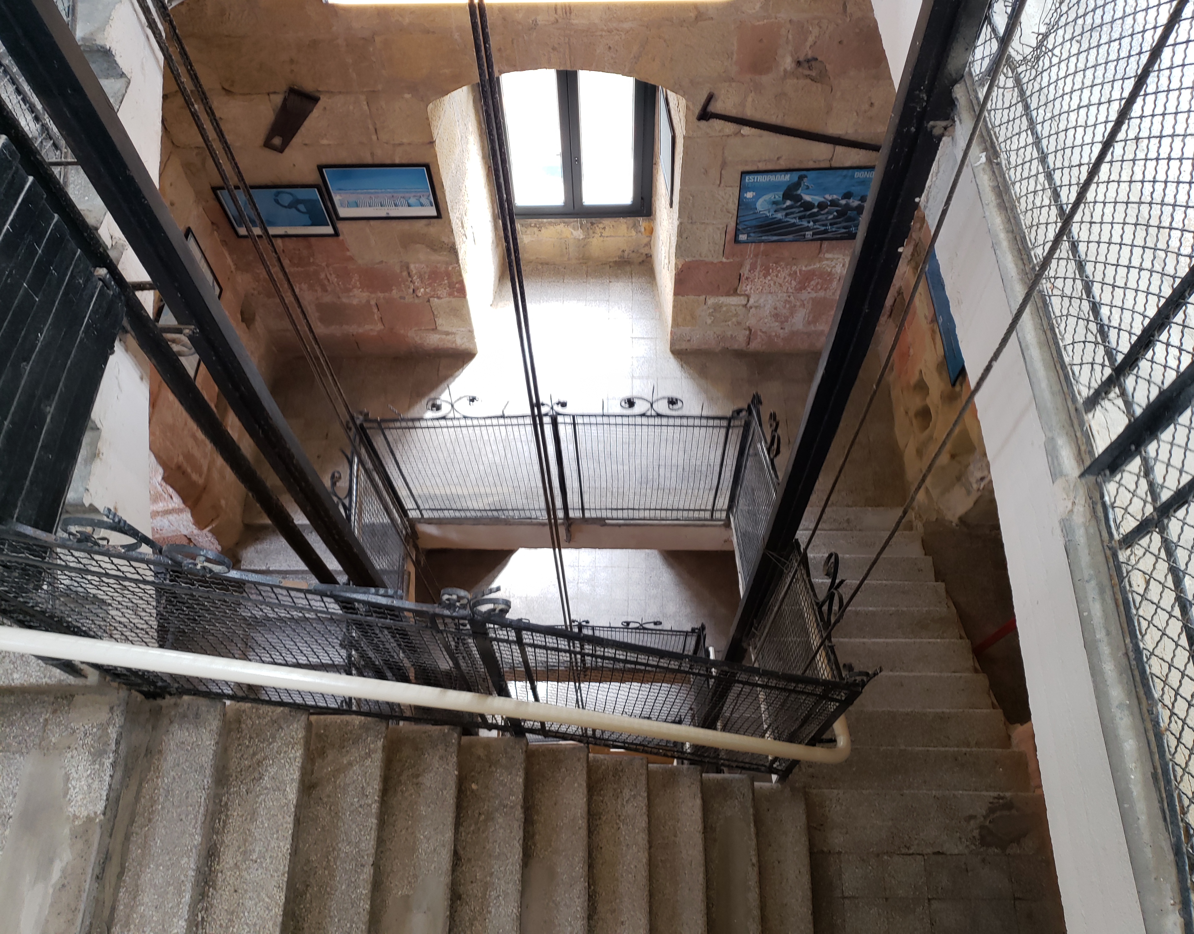 There are pictures on the history of Monte Igueldo and workers in San Sebastián’s history, which makes the walk up a bit nicer. We nearly reached the top, and then took a narrow spiral staircase to the open patio on top of the tower.