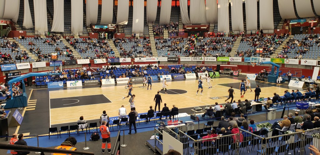This evening it was home to the Donostia Gipuzkoa Basketball team, who was playing the Easycharger Palencia team. Jesse, her cousin, and I took the local bus to the stadium, bought 20 Euro tickets, and, after some confusion on which entrance to use, made our way inside. We bought some some snacks: weird gummy creatures, frutos secos, and tasty off-brand cheetos, before taking our seats. There were people in every section, but the arena was by no means full, so we picked three seats to watch the game, which were probably not the seats on our tickets, but it did not matter.