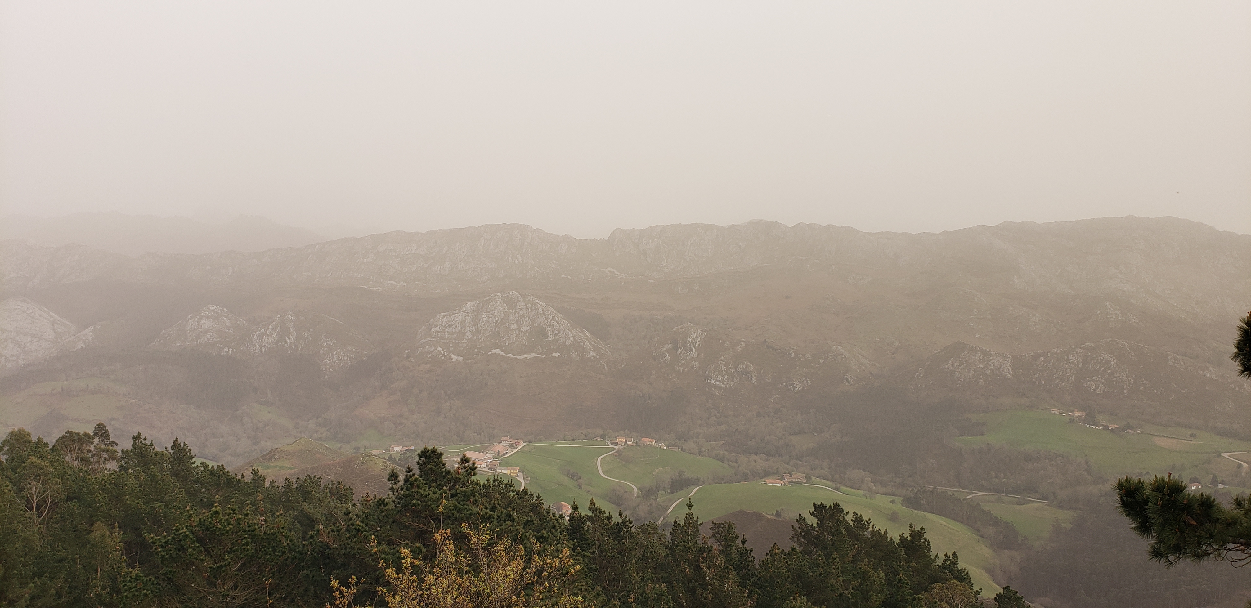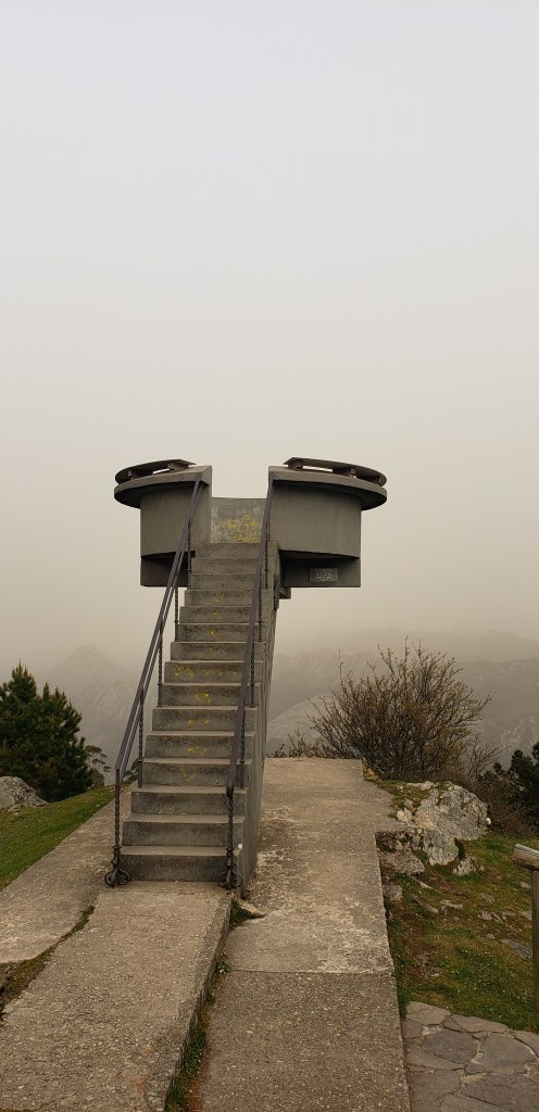 Wait, one last picture! On our family trip back to Gijón from Cangas de Onís we took a wrong turn, and wound up going up and down winding roads (which we had hoped to avoid) but it did take us to the Mirador del Fitu, which was a stone platform that looked like one was able to walk out into the foggy sky!