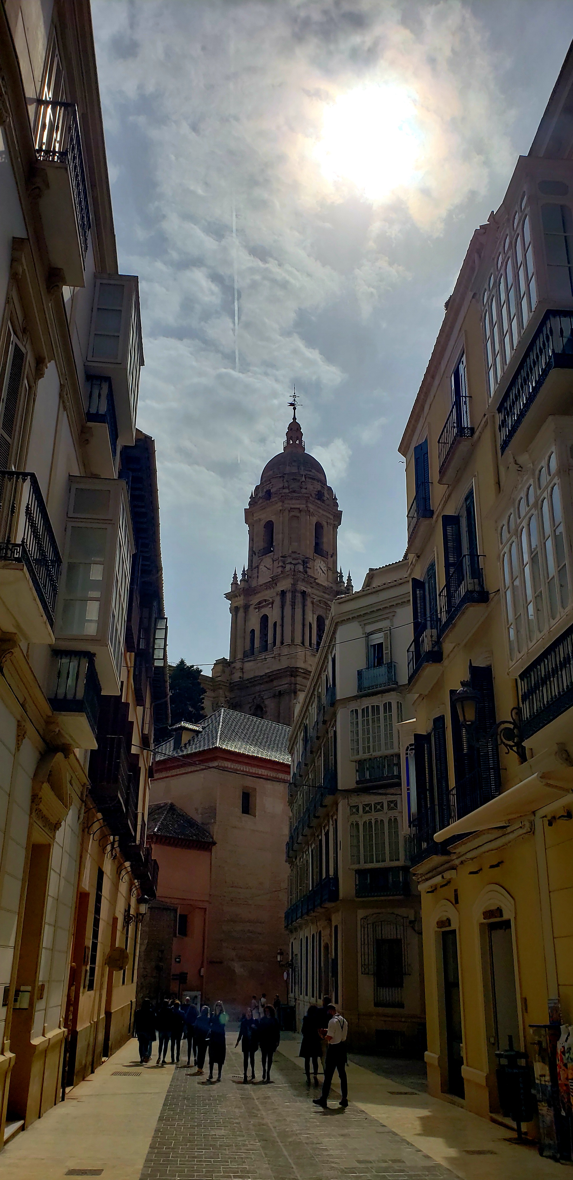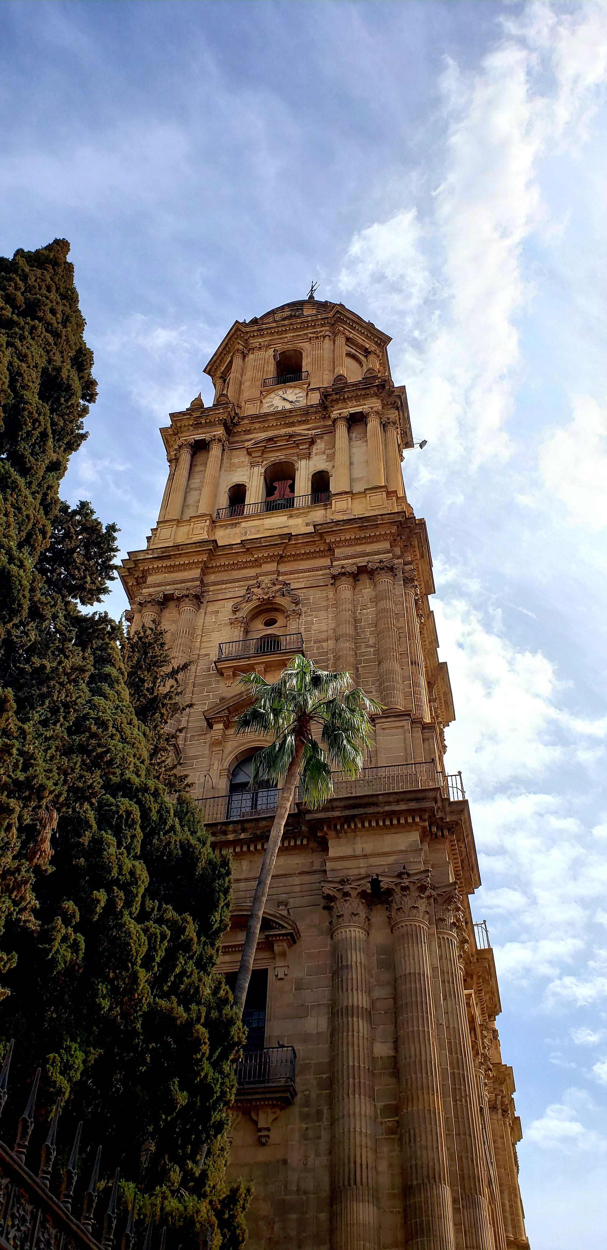 Old Town is near the Cathedral of Málaga, which towers over the narrow streets and tan and yellow buildings. At the time we arrived, there had been major rain storms which brought with them Sahara desert sand and covered everything from the streets and buildings to cars with a light layer of sand. I am unsure at present if we will visit the inside of the Cathedral, as, after our recent trips to Burgos and San Sebastian, we visited a lot of churches, and one can become “churched-out” as it were. Still, I was able to take some pictures from the outside of the church.