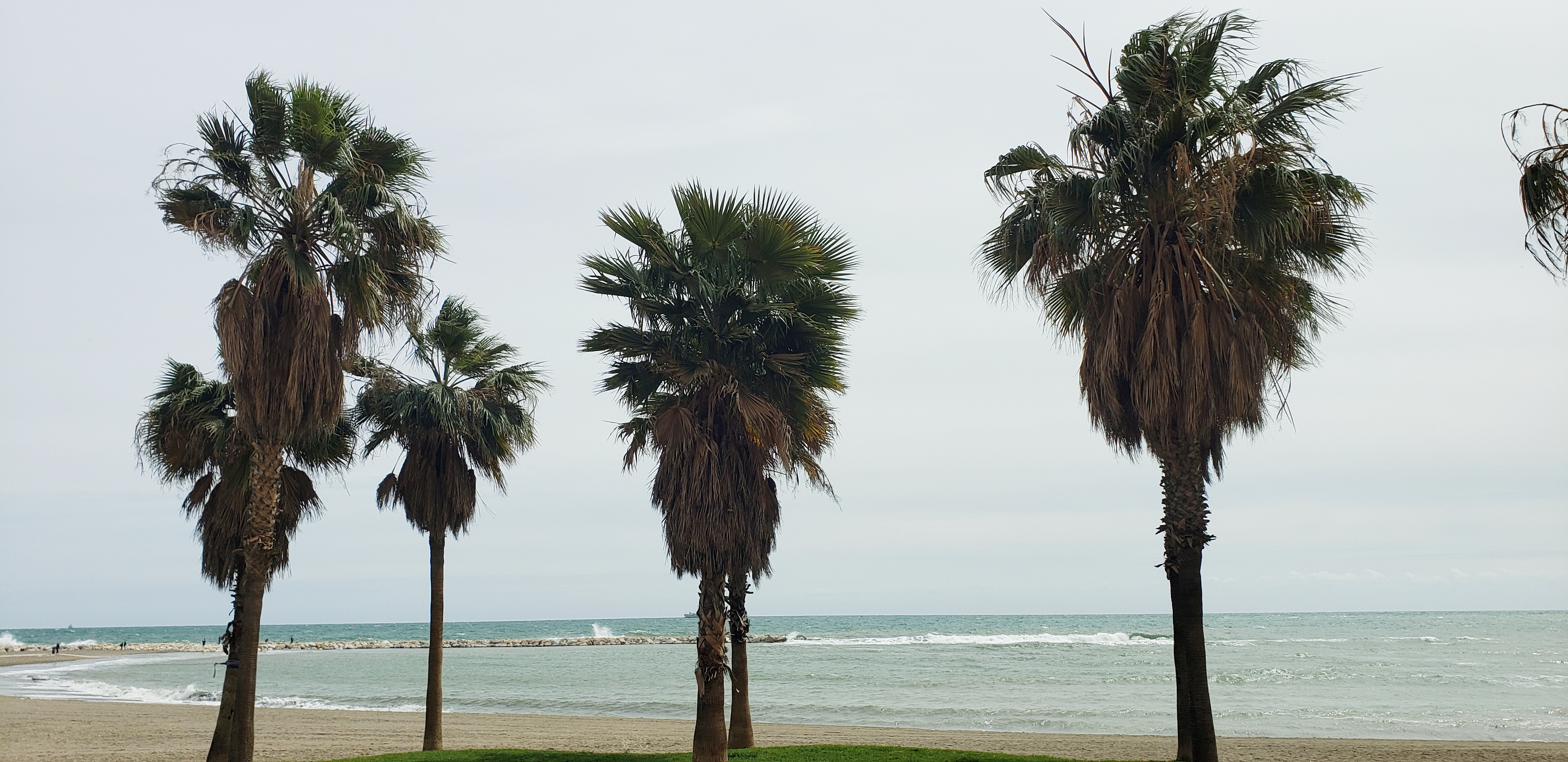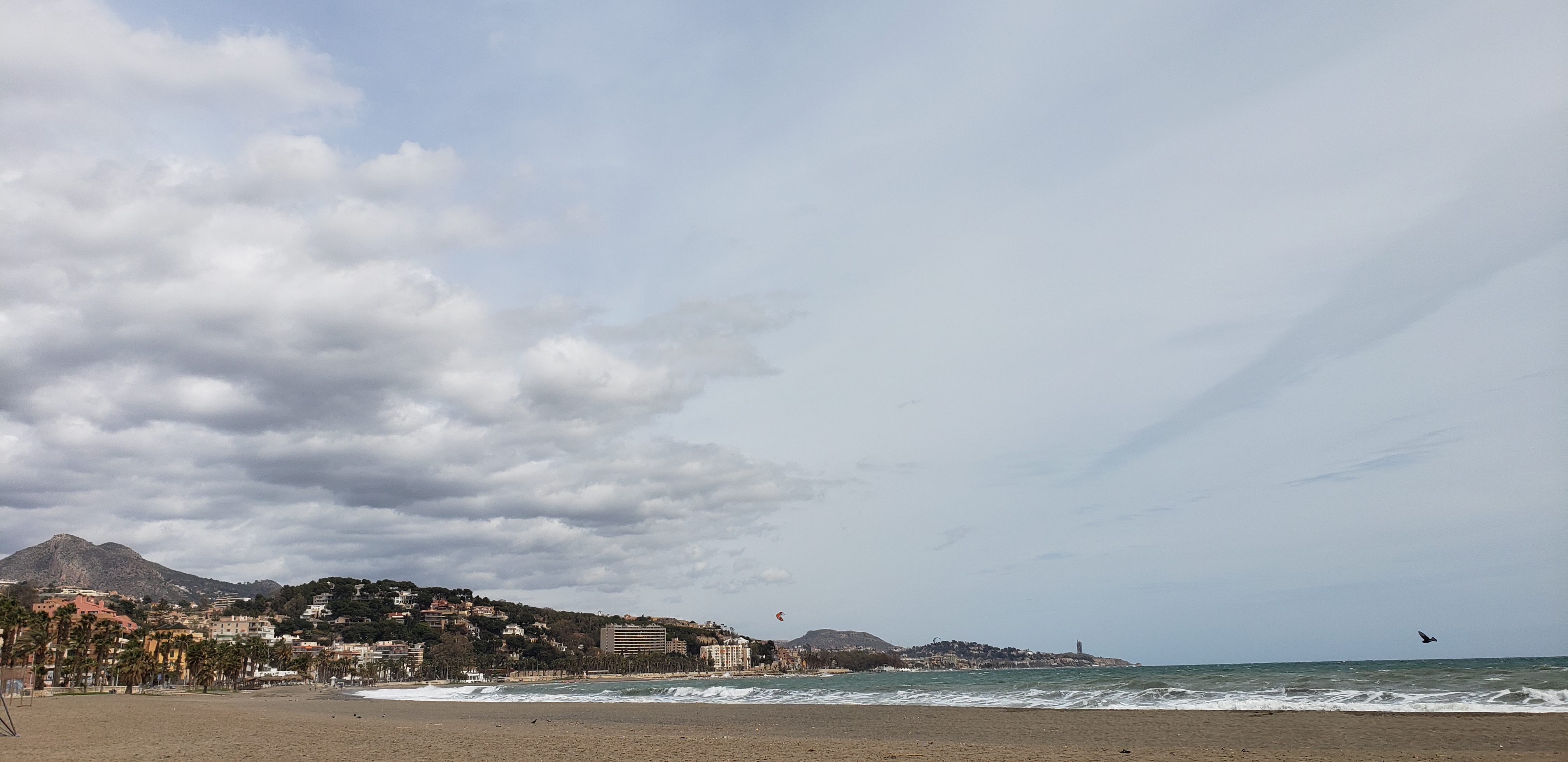 There was a stage at the center of the park, with rows of seats facing it; a DJ was playing music while a group of teenagers watched, a father chased his son, and we passed by, bobbing our heads to the beat. But once past the stage, the sound faded and we were back in the jungle again, where green parrots squawked and flew overhead. On the other side of the park was the sea, however the weather in Málaga has been unusually rainy and windy; as such, the walk along the Playa de la Caleta was quite windy and cool, but the waves were strong and crashing quickly.