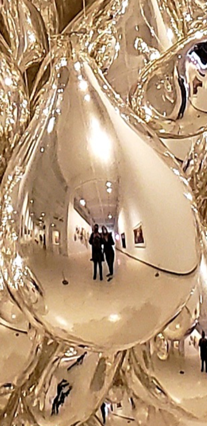 In the picture at the top of the blog is an exhibit of an eclipse (with Jesse standing facing it), as well as the two installations below. You can even see us reflecting in the drops/tears.