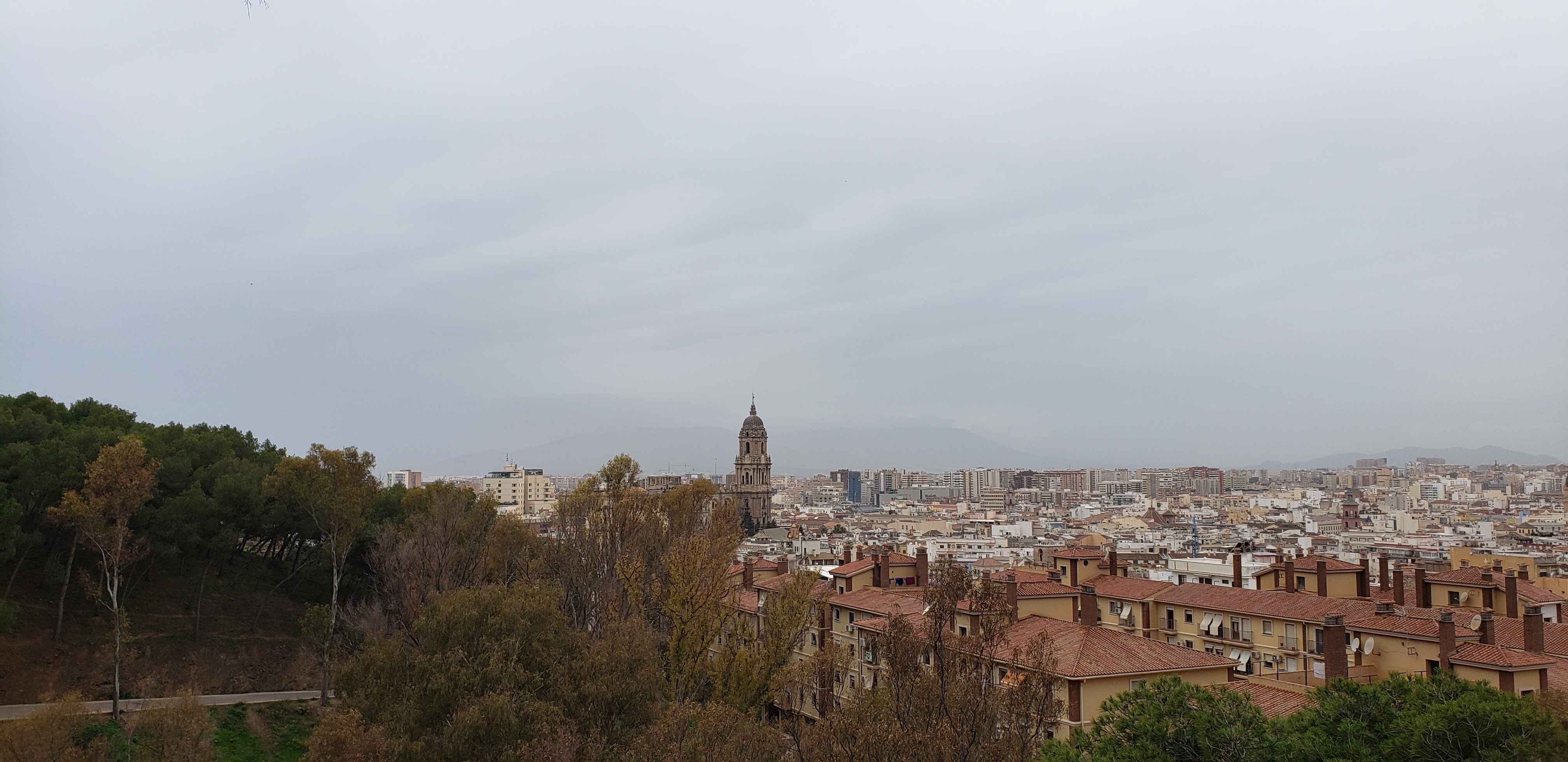 There was also a Parador hotel, which I have mentioned a few times (at least) in previous posts; these are hotels that are located in historical sites; whether they be convents, monasteries, castles and the like; they also have excellent coffee. So we grabbed a coffee at the nearby Parador (definitely go here for coffee or a snack and skip the cafe inside the castle and the convenience stand just outside it), took in the scenery under the building’s overhang while it drizzled. Once finished, we opened the umbrella, and started the long trek back down to sea level, walking past a lookout point populated by one lone lamppost. So you know I had to get a picture.
