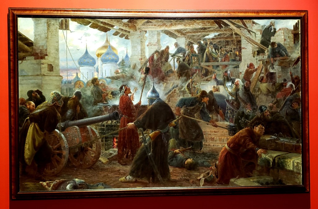 Each room was from a different war during the history of Russia; against the Tartars, the Livonians, the Swedish, the Polish, and others, including the Bolshevik revolution and World War Two. If there was a take away from all of this excellent art (and there was a lot of it), is that Russia has fought (and continues to) many wars over the years. Many of these paintings did not celebrate war or battle though, and many portrayed the brutality and hardship involved. It was somber and enlightening all at the same time, as explanations of each time period (in English and Spanish) accompanied each gallery room, which pulled no punches.
