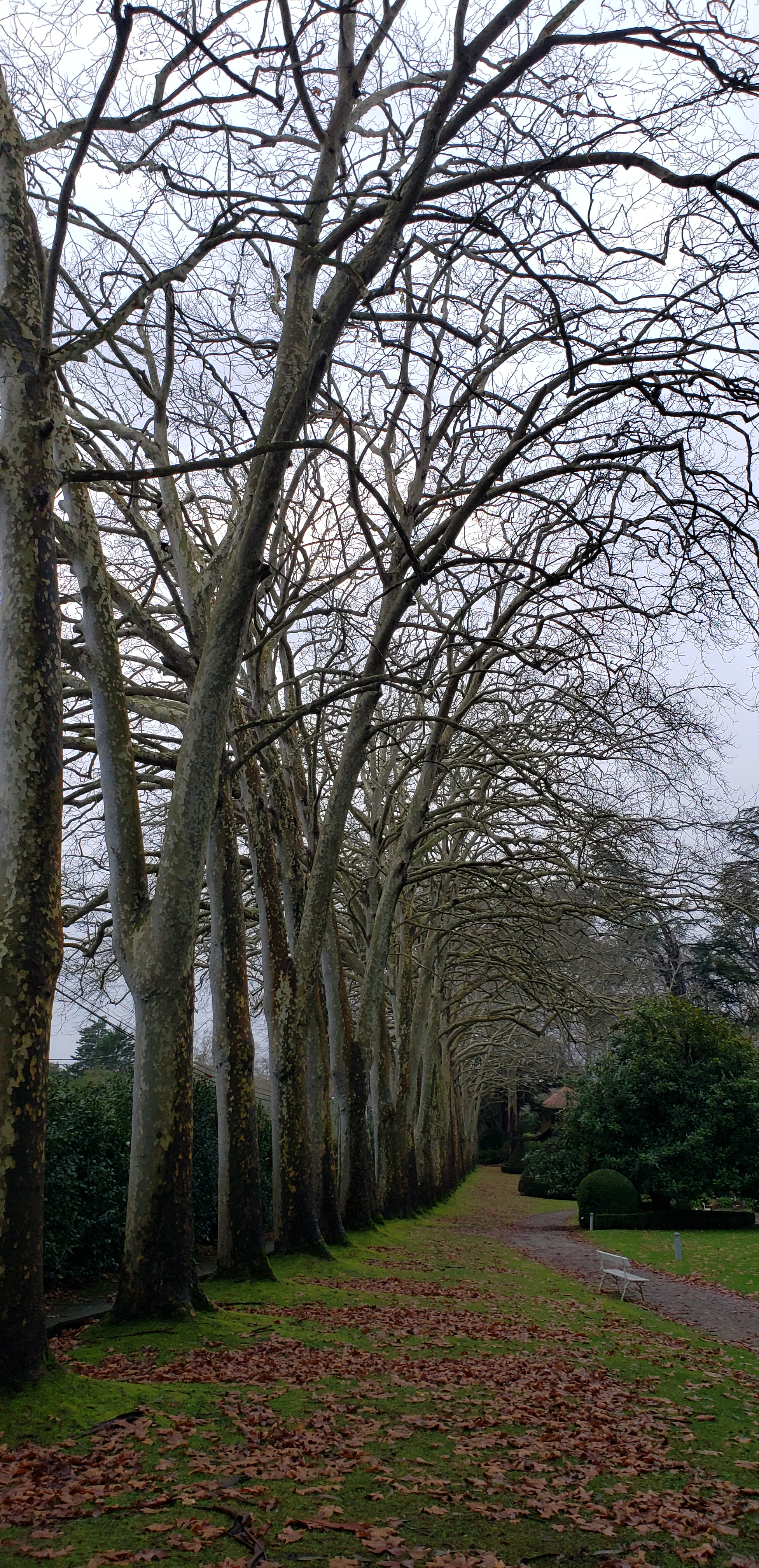 My favorite part was reaching the giant trees, some planted in a football field long row along the fence, their branches in winter bare, creating dark veins against the grey skies. Then, the multiple stories tall coniferous trees and eucalyptus trees, it was hard not to look up with wonder.