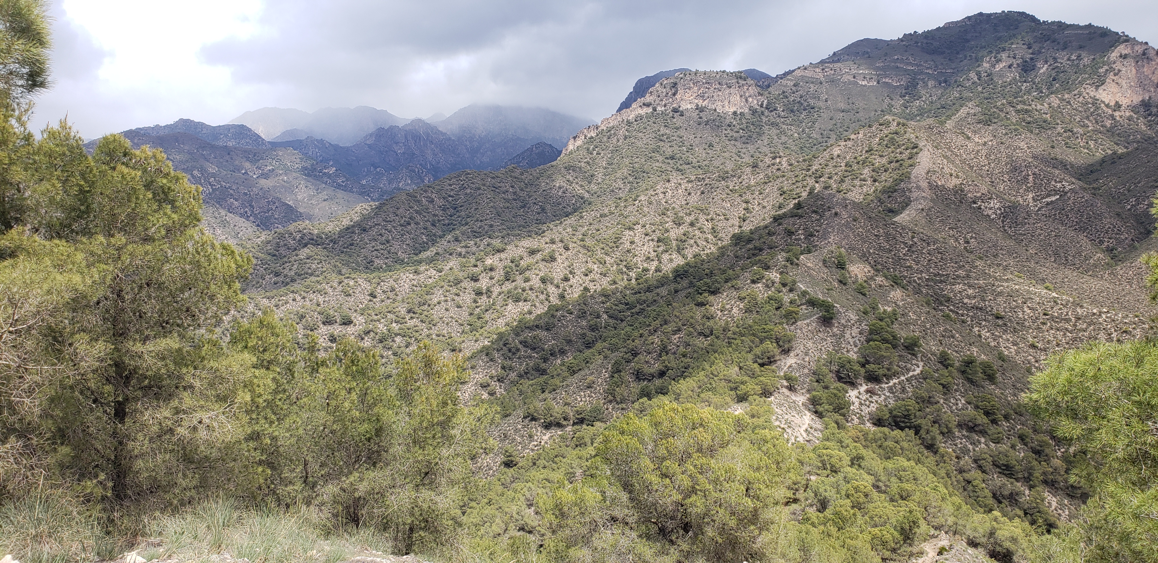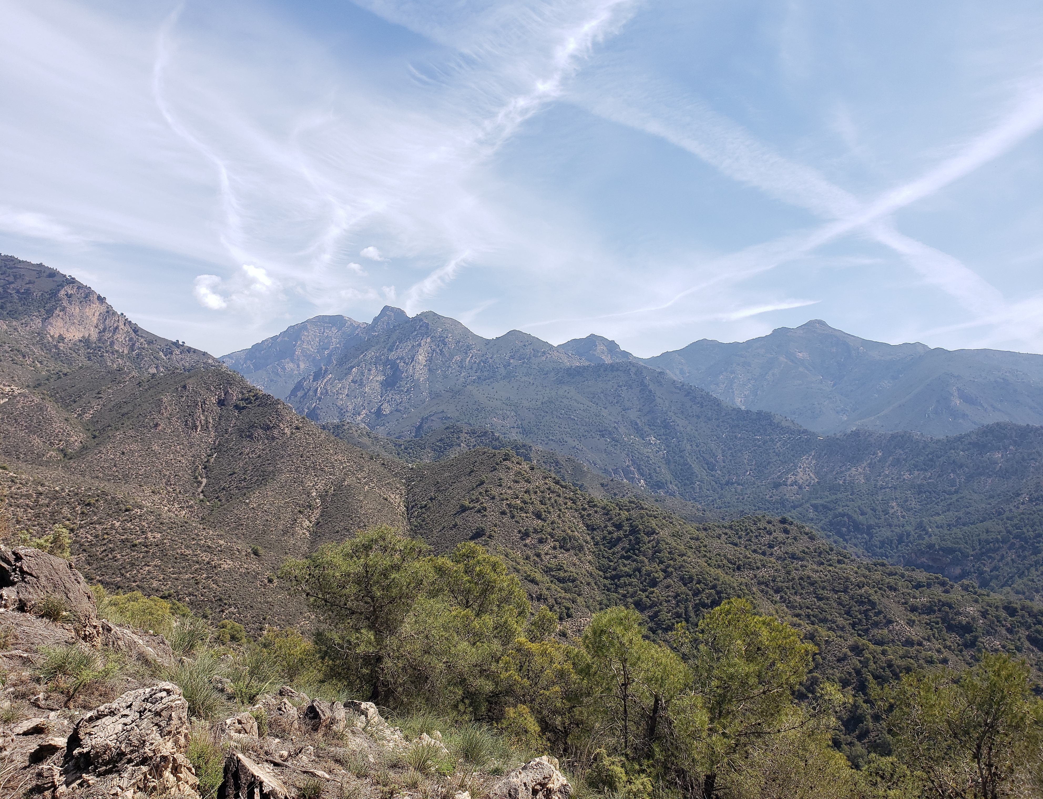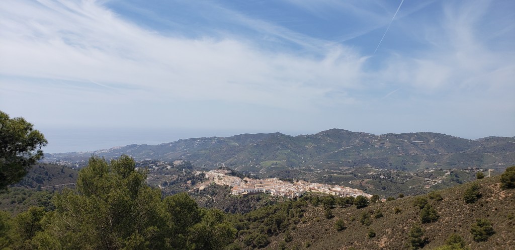 There are no guardrails on this path, and it is moderately difficult, but highly recommended for the views, which are spectacular, and are reached within the first 1.5 miles. First, Frigiliana from up high: