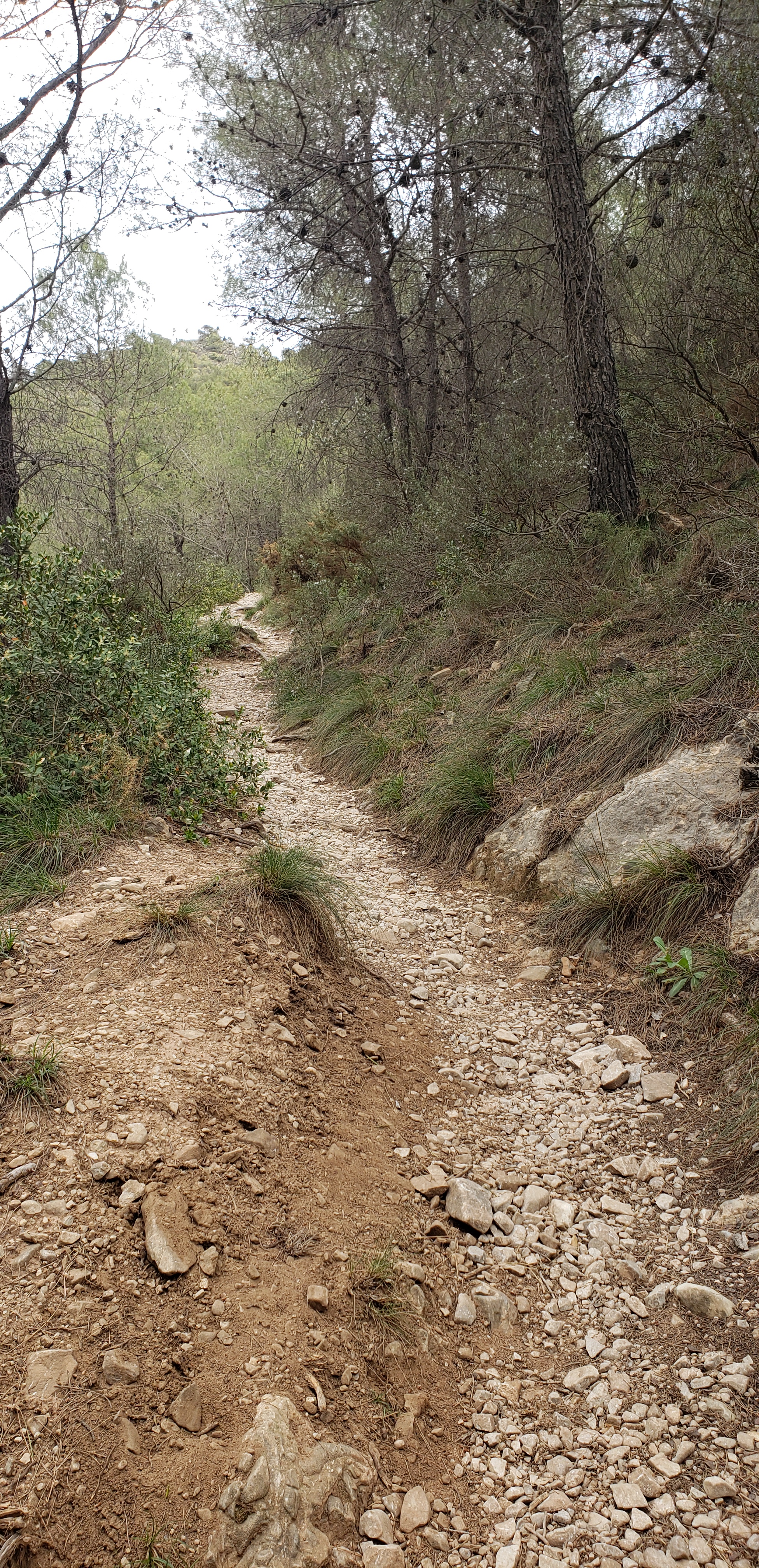 Twice we traversed the Lecho del Río Higuerón – Mirador Frigiliana hike, which begins directly off the main square; the main square is where the streets of Calle San Sebastian and Calle Real meet, in front of the Molasses factory. Between the Virtudes restaruante and the farmacia is a road that is paved and zig-zags downhill steeply until reaching the Río Higuerón. The river, which has been dry for a long time, and as much of the walking path can be done in the river bed, on smooth, smaller rocks. The trail head shoots off to the right, up a dirt path; and continues climbing until reaching the top of the mountain. Some pictures on the way up: