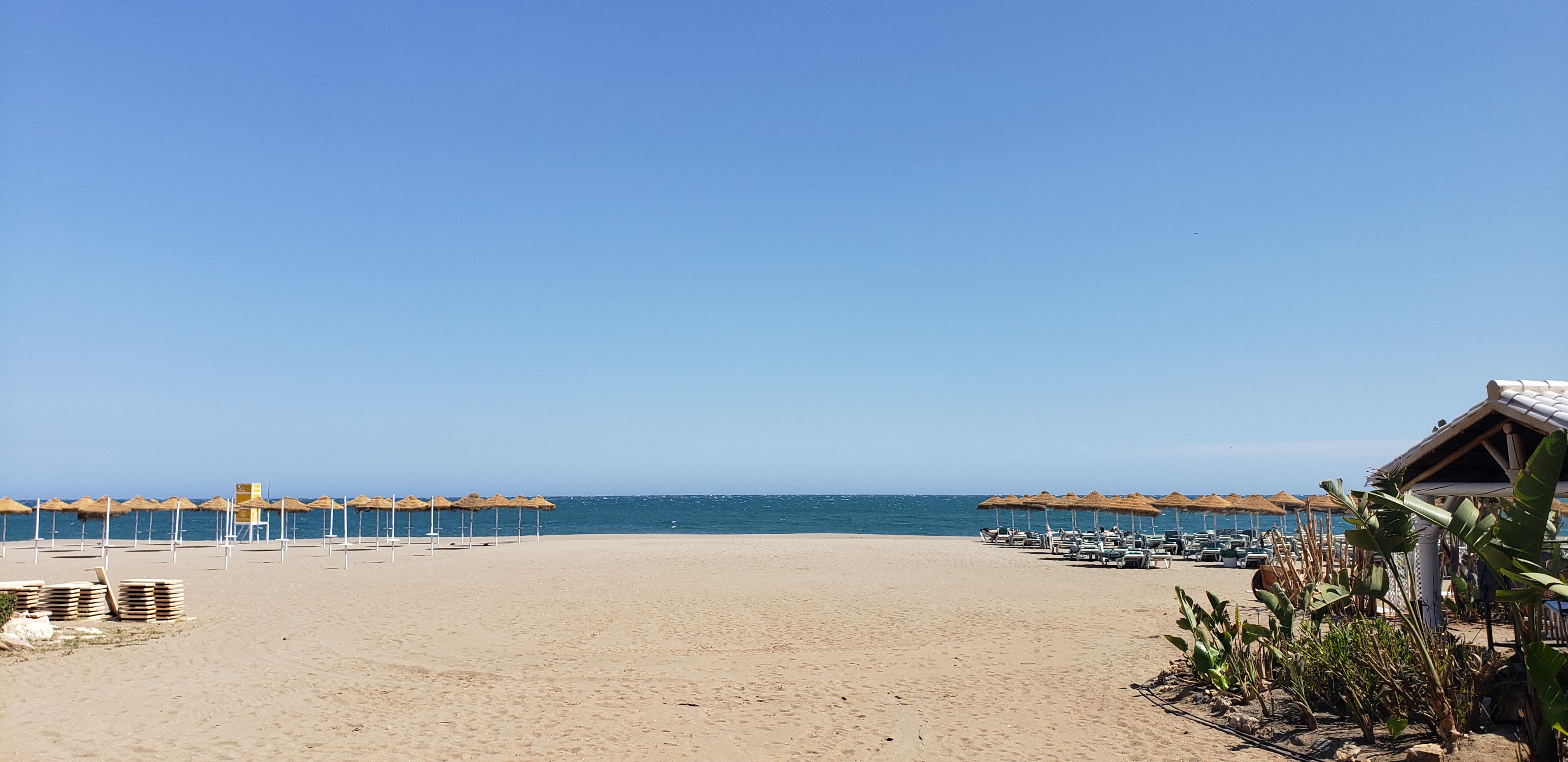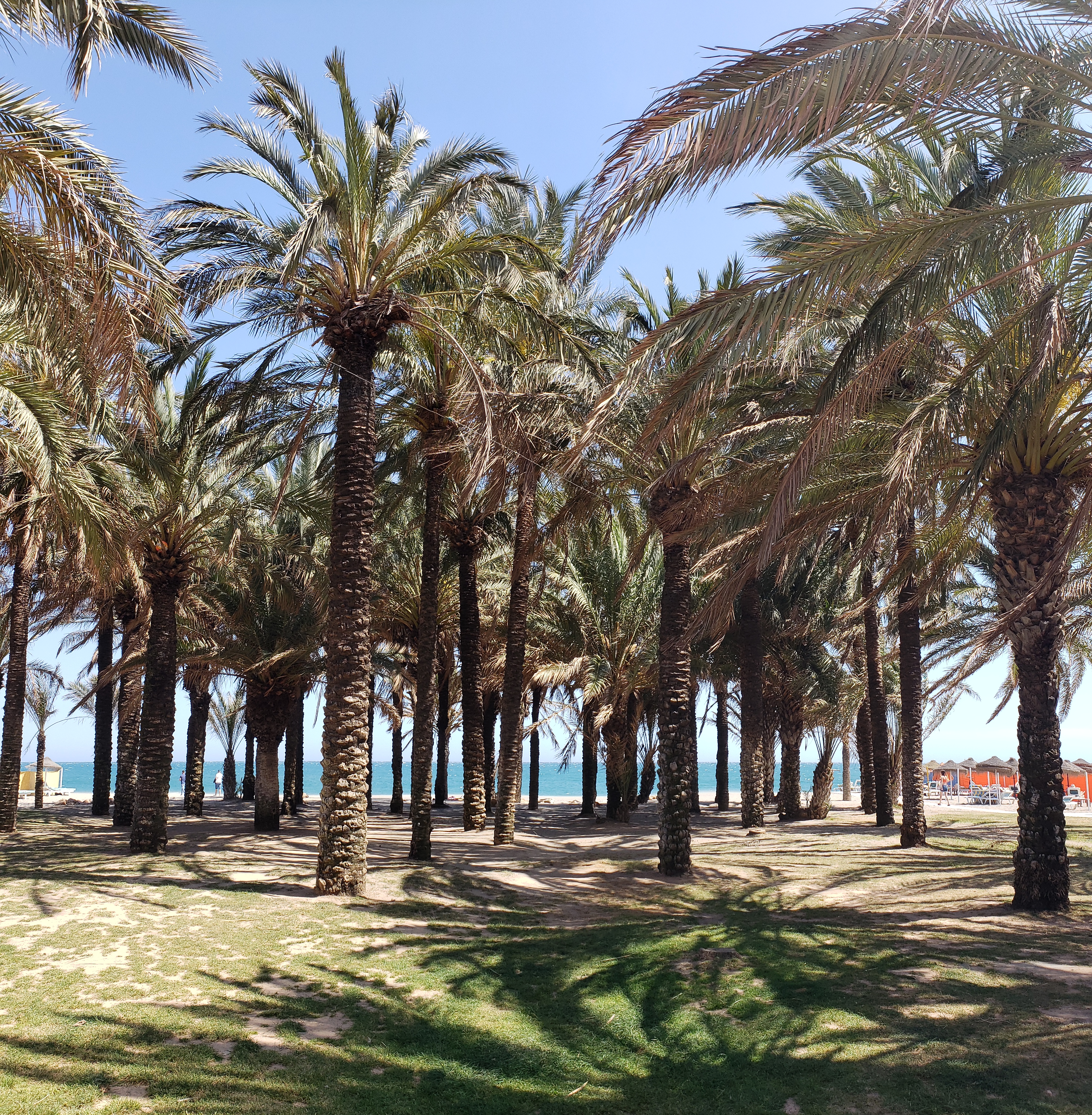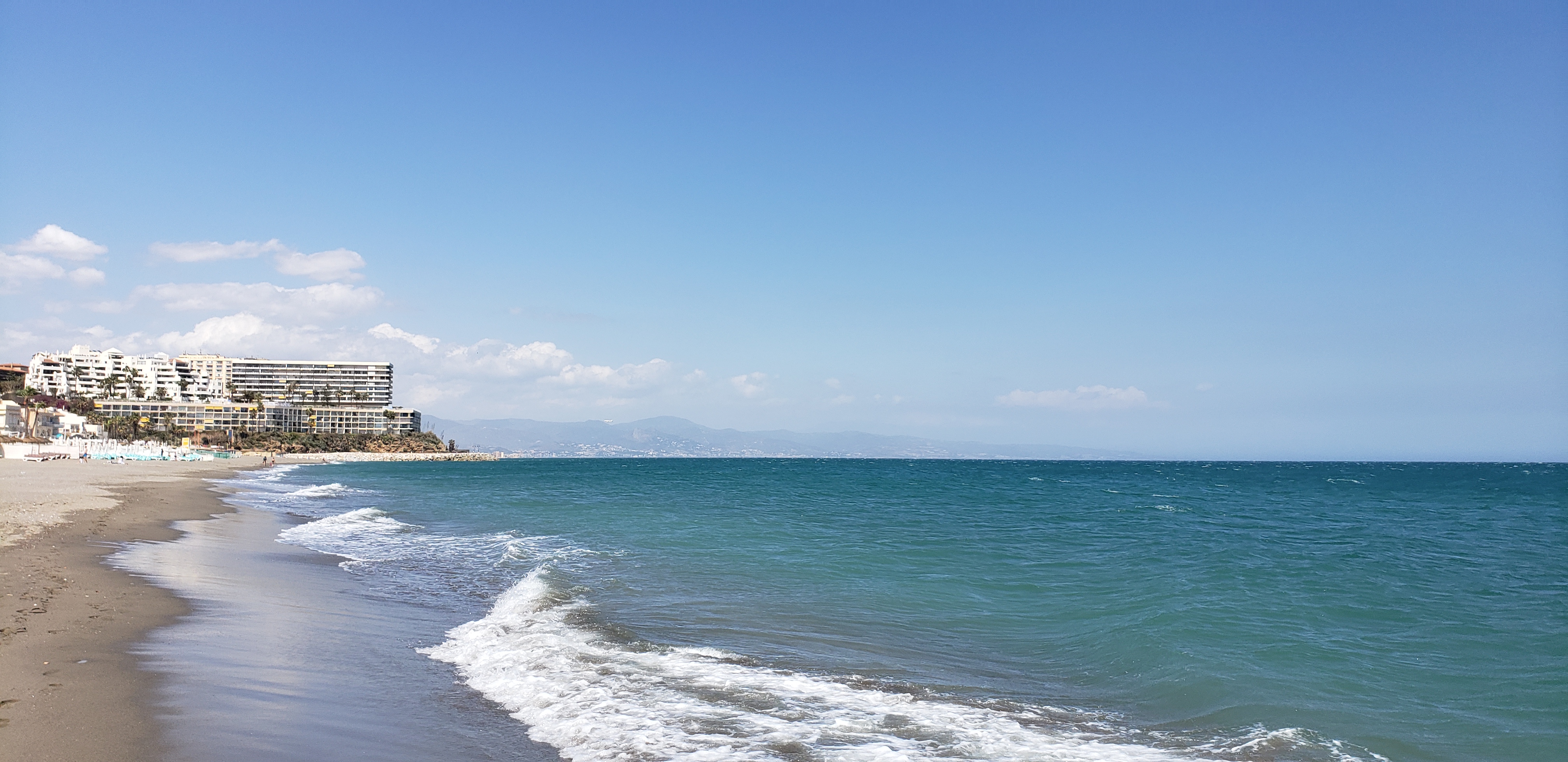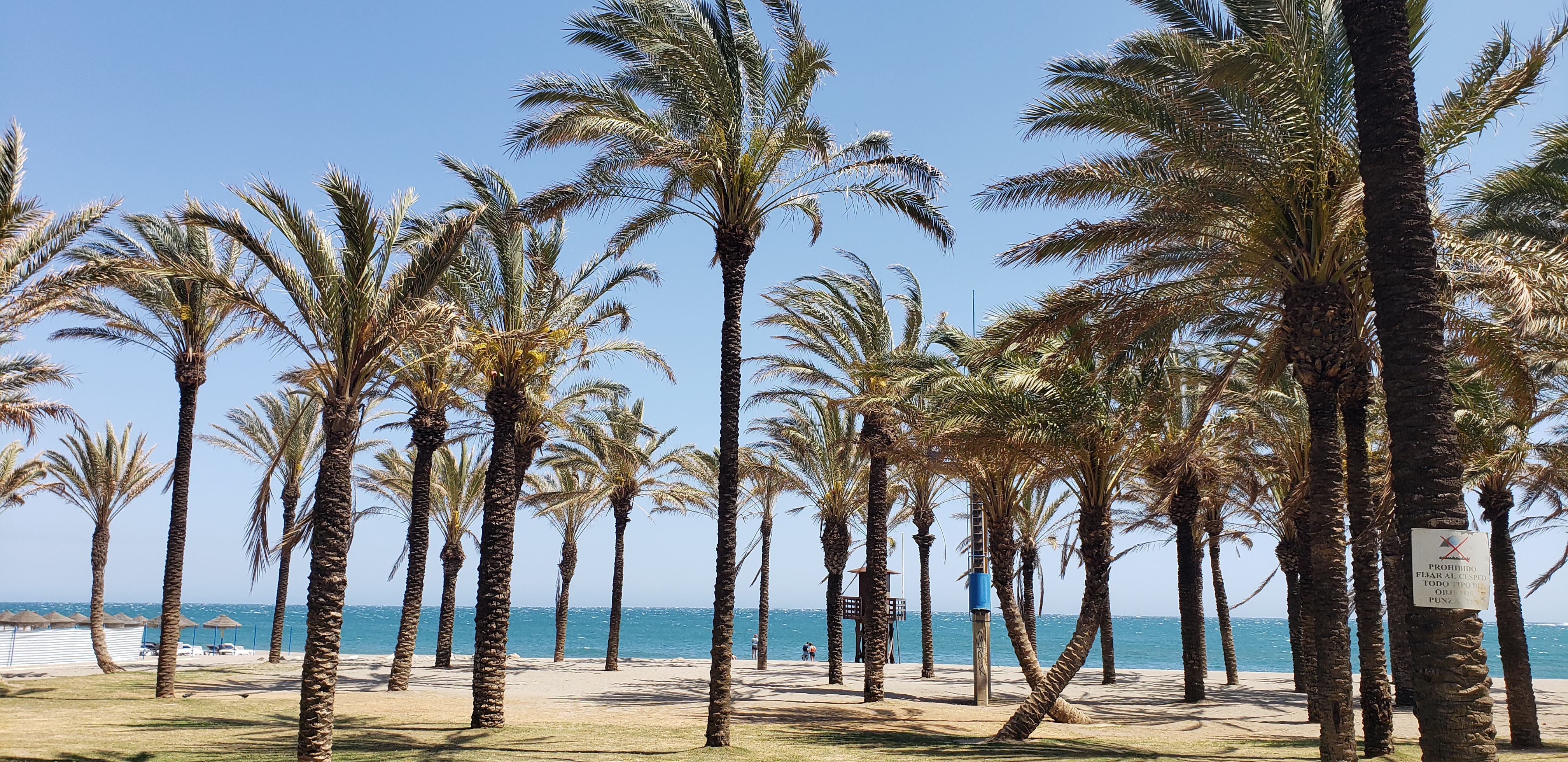 Torremolino: A bit south of Málaga, we walked the promenade of this seaside town on a very windy day, but at least the sun was shining. Lots of Chiringitos (beach bars),heladrias (ice cream parlors) and tourist shops. There are a couple palm tree forests right on the beach, which are cool, as well. A nice walk on the beachfront.