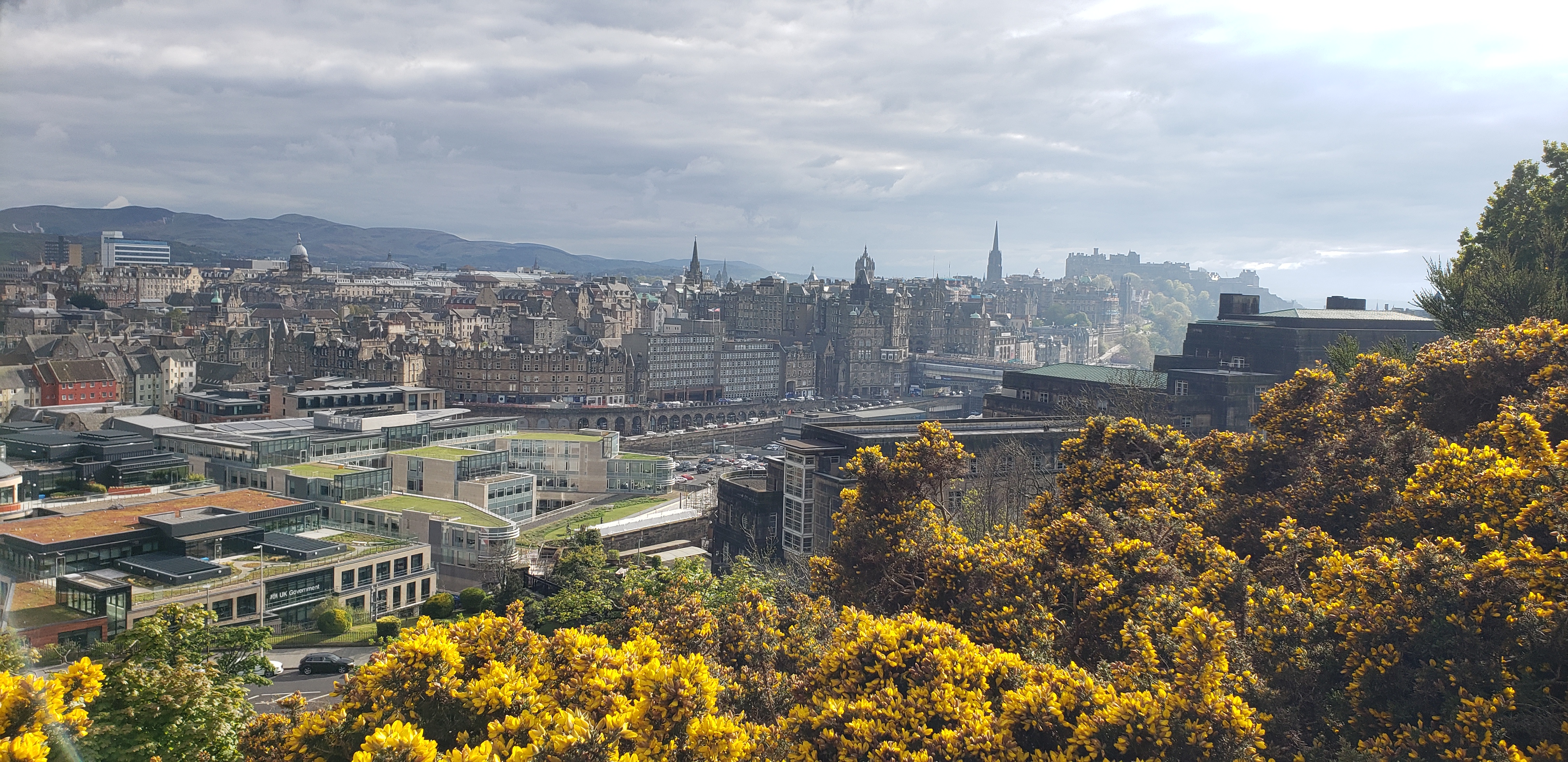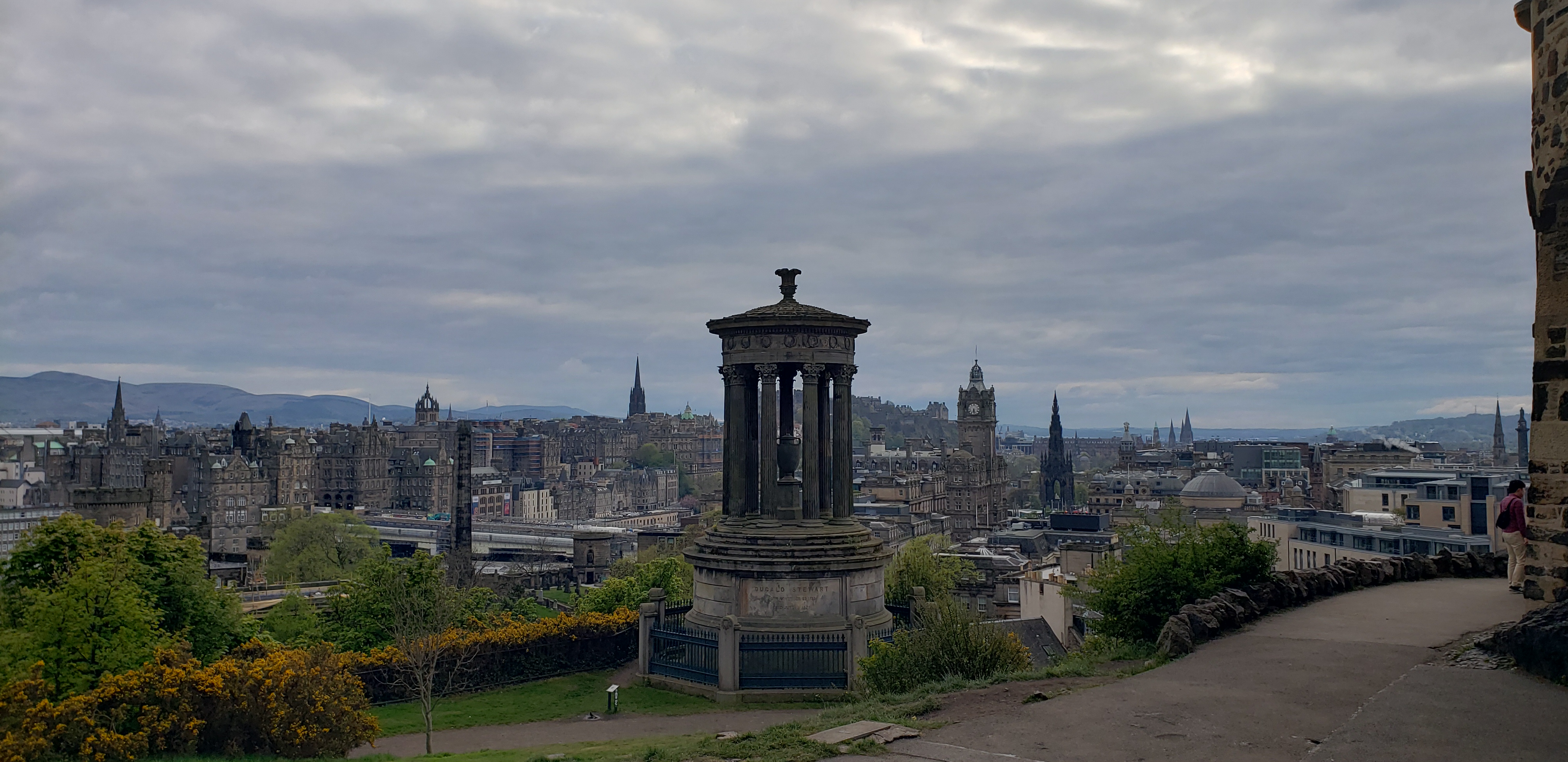 We arrived on a rainy afternoon, and after a quick stay in an airport hotel, we made our way to our rental apartment near Calton Hill. We were greeted by our friendly host, a native Scot, who gave us a quick overview of the city, and we were off. Our first stop was a walk to Calton Hill. There are many paths to walk up and take in all the structures and sites on the hill itself, and then view the city, Firth (estuary) of Forth (which is the river through the city), and the green hills that surround Edinburgh. We were joined by many fellow tourists as we snapped pictures and enjoyed the cool weather as we walked and talked.