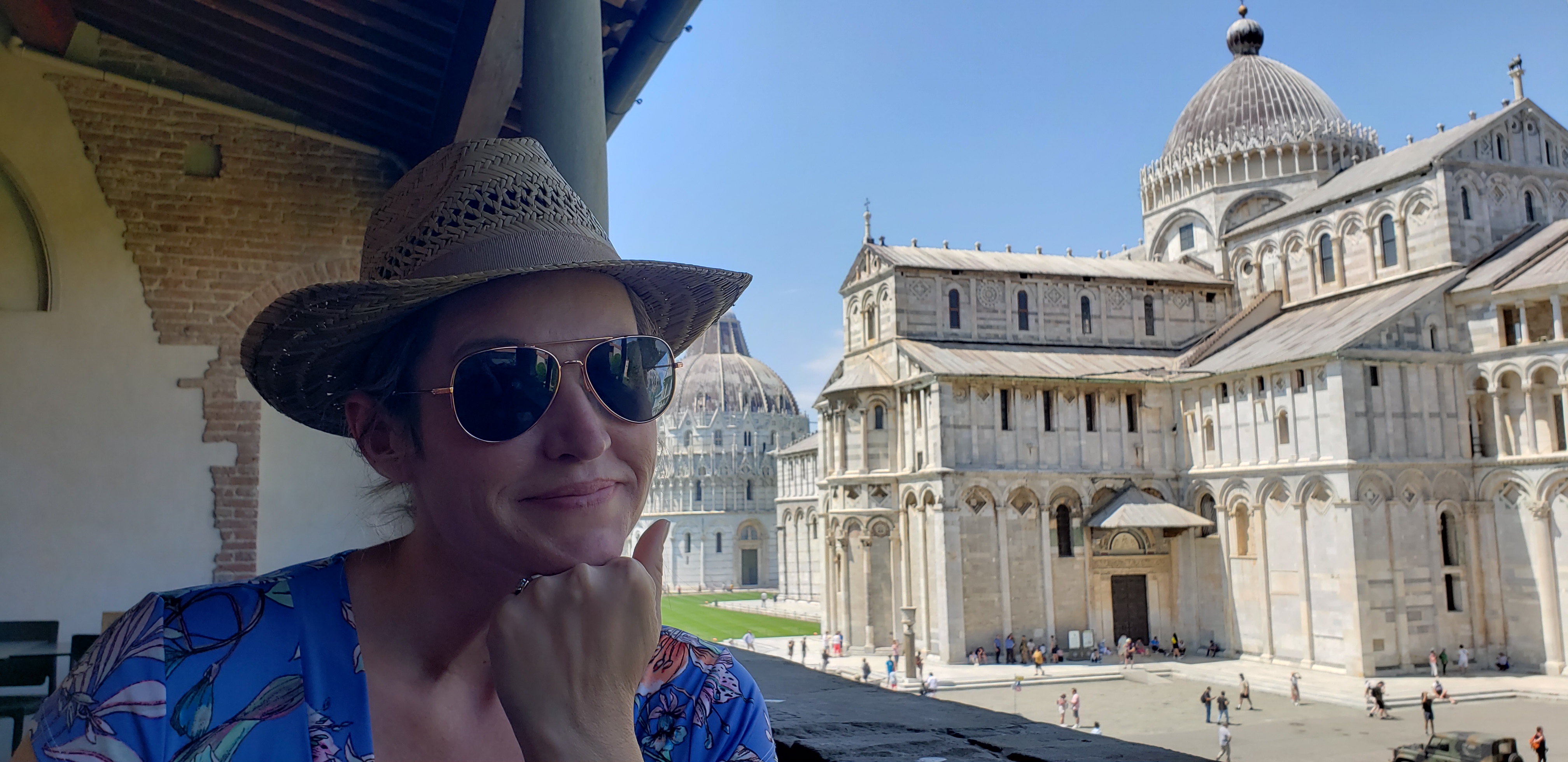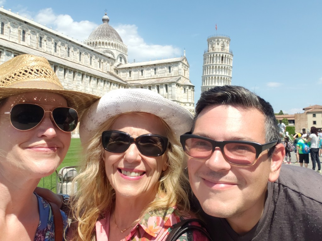 We knew we wanted to be on the water, and showing Mom both the Adriatic and Mediterranean Sea was something we wanted to do. Jesse and I had visited La Spezia and Cinque Terre this past September (2021), so we did not want to go back there. Mom said pick somewhere we had not been, so we searched and searched while we were in Florence. Finally we found a nice hotel in Rapallo where we could relax and be by the sea, and to get there, we rented a car and drove to Rapallo. On the way was the city of Pisa, and we surprised Mom by making a stop to see the leaning tower (of which there is a replica in the city of Niles in Chicagoland, my Mom informed us).