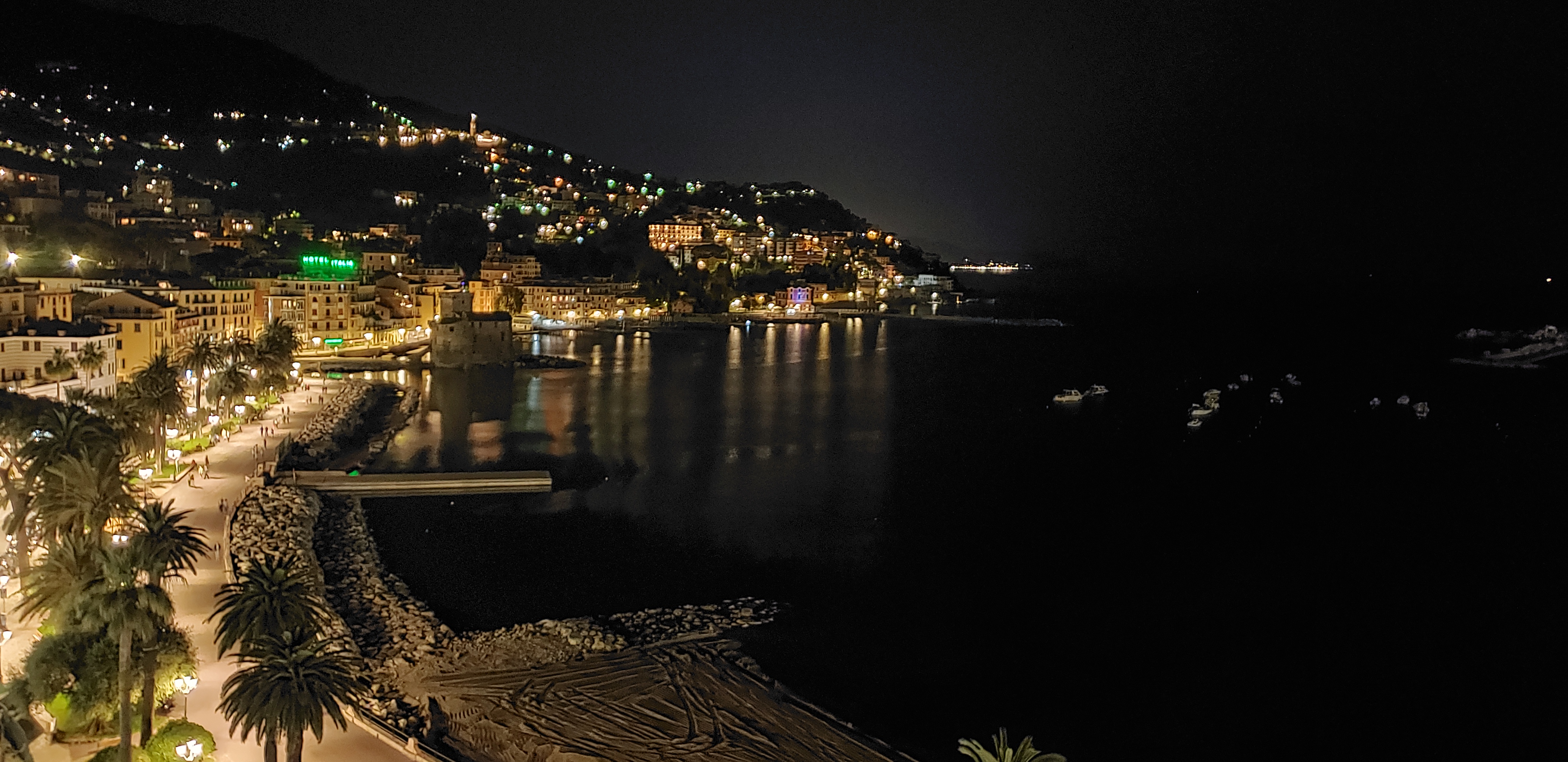 We walked around town after our pizza dinner, past the Monumento a Cristoforo Colombo, stared out into the sea, and enjoyed the sky turning from dusk to night and our last night in Rapallo.