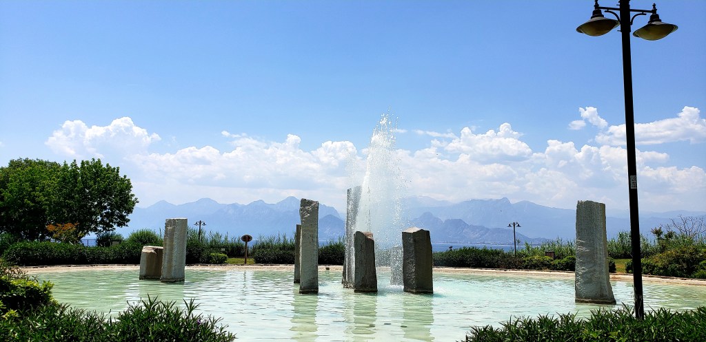 We did more walking around town over the next few days; right near our hotel is a very cool lookout point; the first evening we saw it was the only slightly rainy evening we had encountered thus far in Antalya; the second picture is the next morning, bright and sunny.