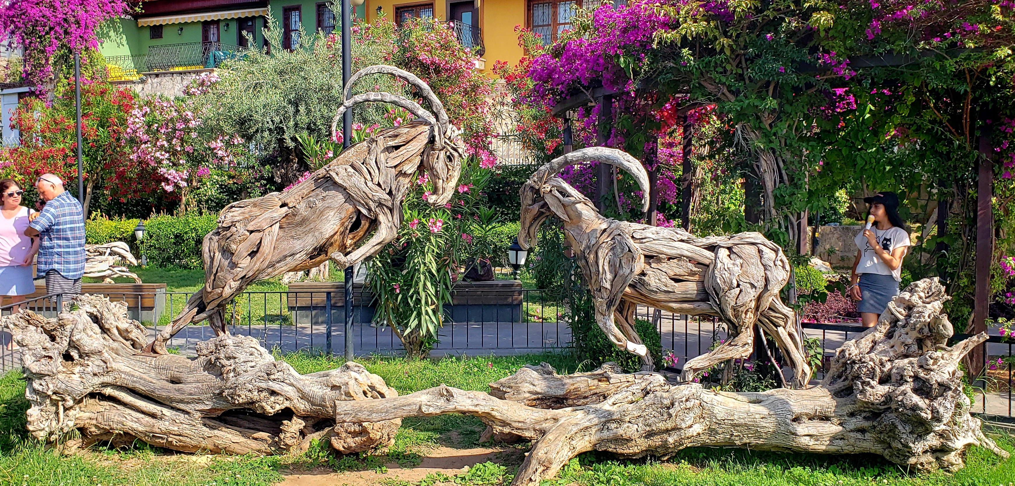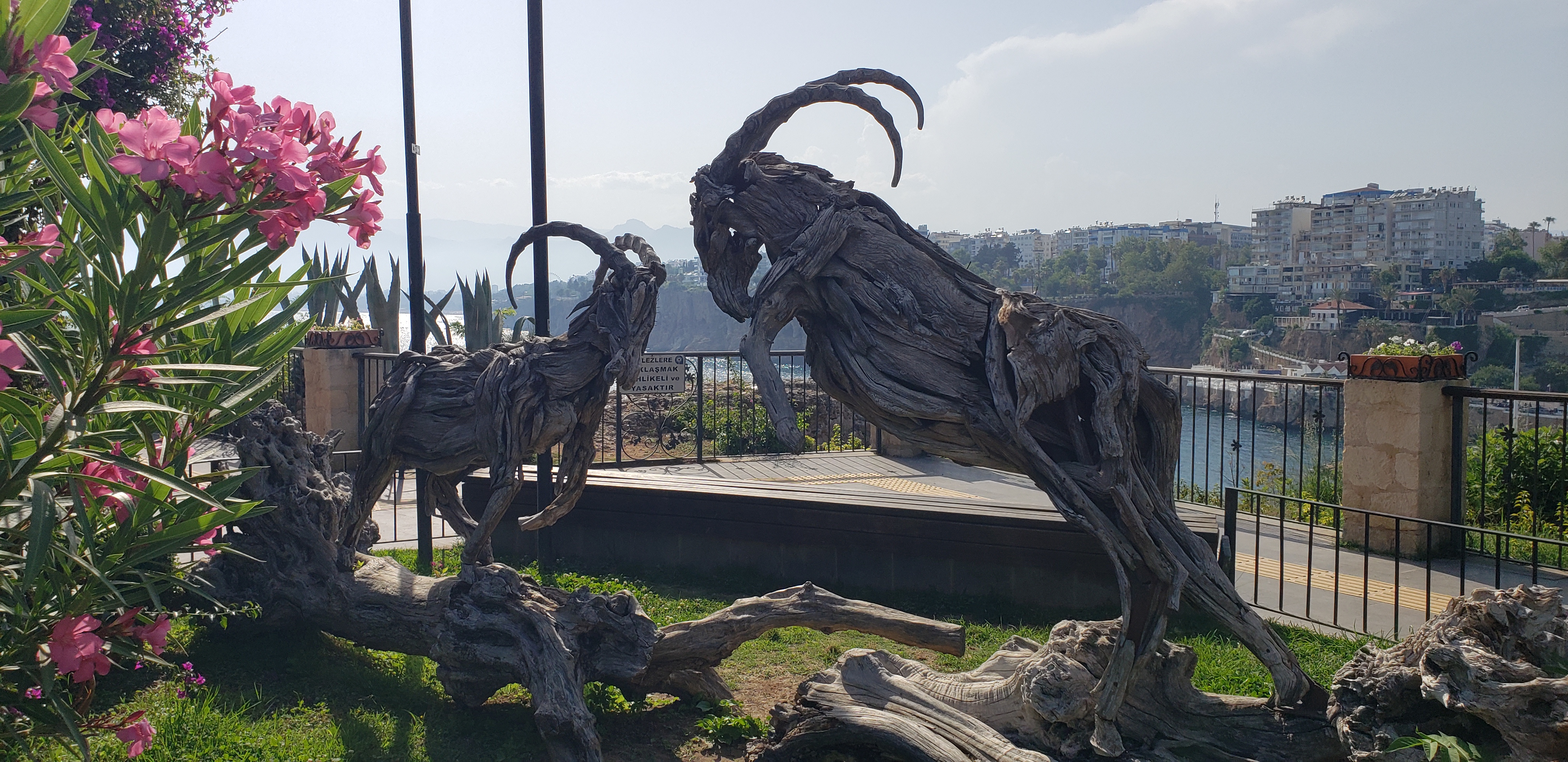 The wooden statues of two rams about to headbutt from Karaalioglu Park: