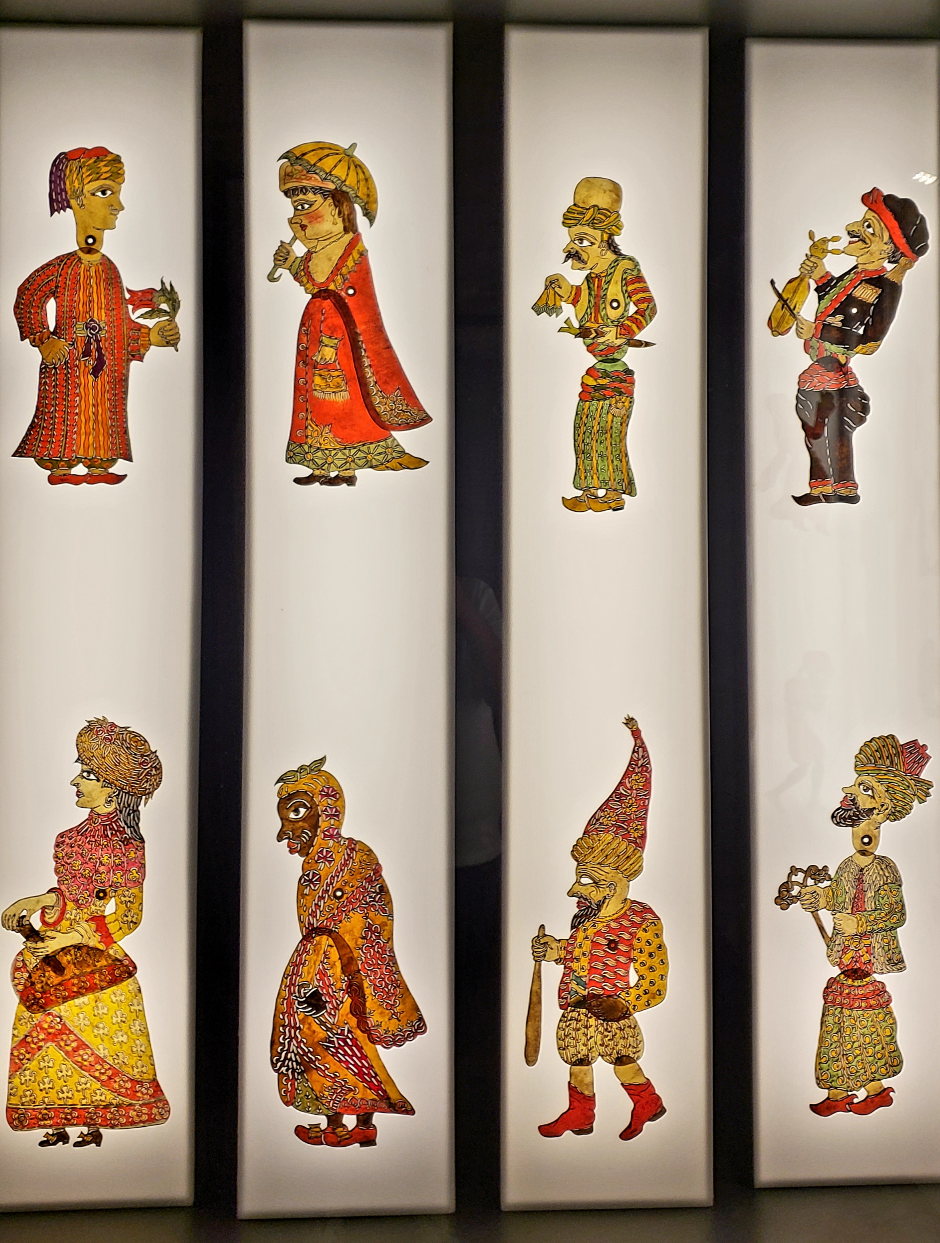We also were introduced to the Karagöz shadow theater, which is based on a person named Karagöz. He, along with his friend Hacivat, were killed by the Sultan for making workers laugh too much and thus they did not finish building the mosque in Bursa in time. A local made leather figures of both men, and put them on a white screen and acted out humorous scenes to try and console the Sultan, who regretted killing the two. From then on, artists created shadow puppets of different characters to entertain Turks for hundreds of years. There is a video, with English subtitles, showing an artist putting on a Karagöz show. Here are a few of the characters.