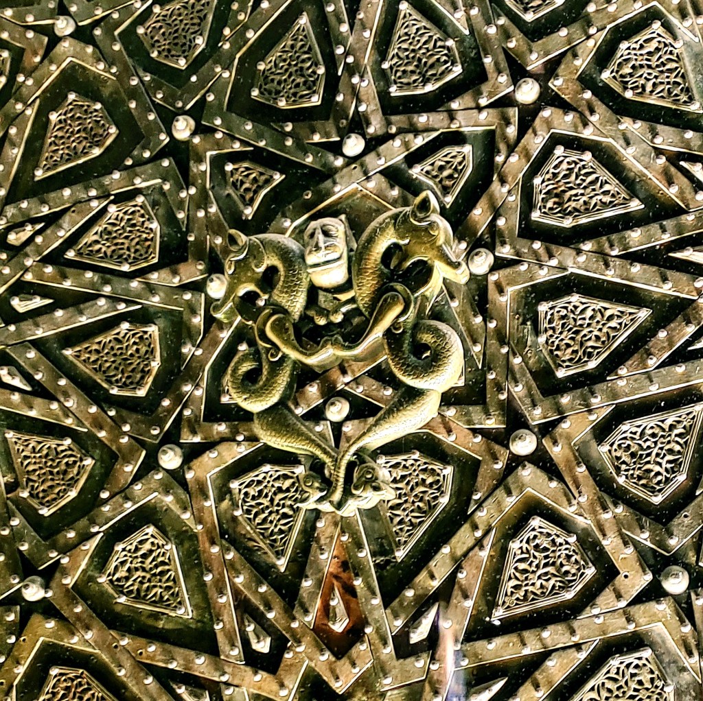 There are also relics of the Prophet Muhammed, strands of his beard and other items. But my favorite part to see were the doors to the Grand Mosque of Cizre, dating back to the 12th century. Cizre is located on the Tigris River, and fell into decline during Ottoman rule. in 1969, one of the door knockers, which are made of two connecting Dragons, was stolen and remains in a museum in Copenhagen. The other is still attached to the doors seen below.