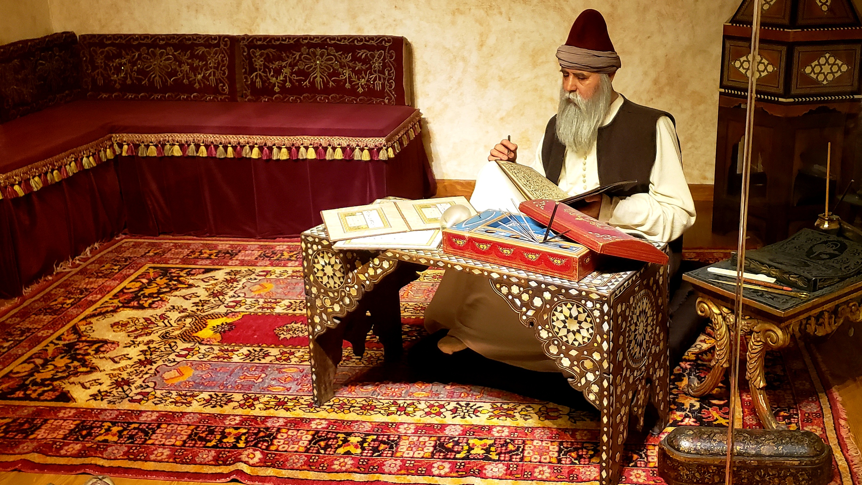 My favorite Museum was the Museum of Turkish and Islamic Arts, located in Sultanahmet Square. Easy to access, it is often overlooked as many visit the square for the Blue Mosque, Hagia Sofia, Topkapi Palace and the Egyptian obelisks (which are right in front of the museum). Upon entering one can see some of the remains of the original Hippodrome that stood where Sultanhamet Square is now (and other pieces of the walls are protected in the Square as well). Once inside the museum, there is a diorama on how the ancient writers wrote copies of the Quran, as well as examples of the stands that are used to hold the Quran while reading, usually incorporating mother-of-pearl into the exquisite stands.
