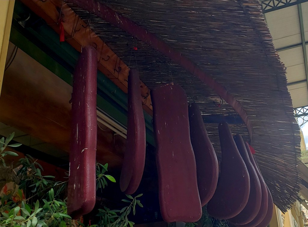 We were hungry after our two museum visits, so now it was Gyros time. We found an eatery that specialized in Gyros, ordered two and a big plate of fries to share, topped with Oregano and Tzatziki sauce for dipping. It is true, a Gyros in Greece tastes better than a Gyros anywhere; though Gyros in the US are remarkably similar, they are not the same.
