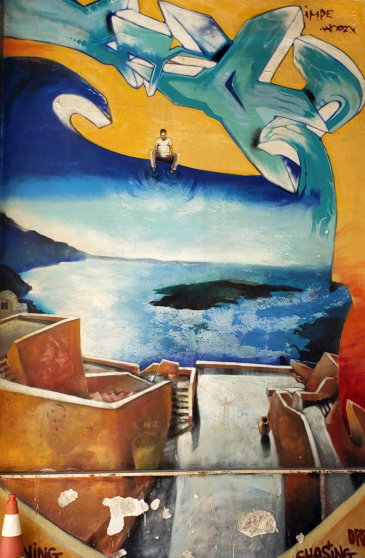 Right near our rental was a gallery, based on theatrical masks from Greek tragedies, done by artist Mano Pontikakis. Very cool, kind of scary, and unique.