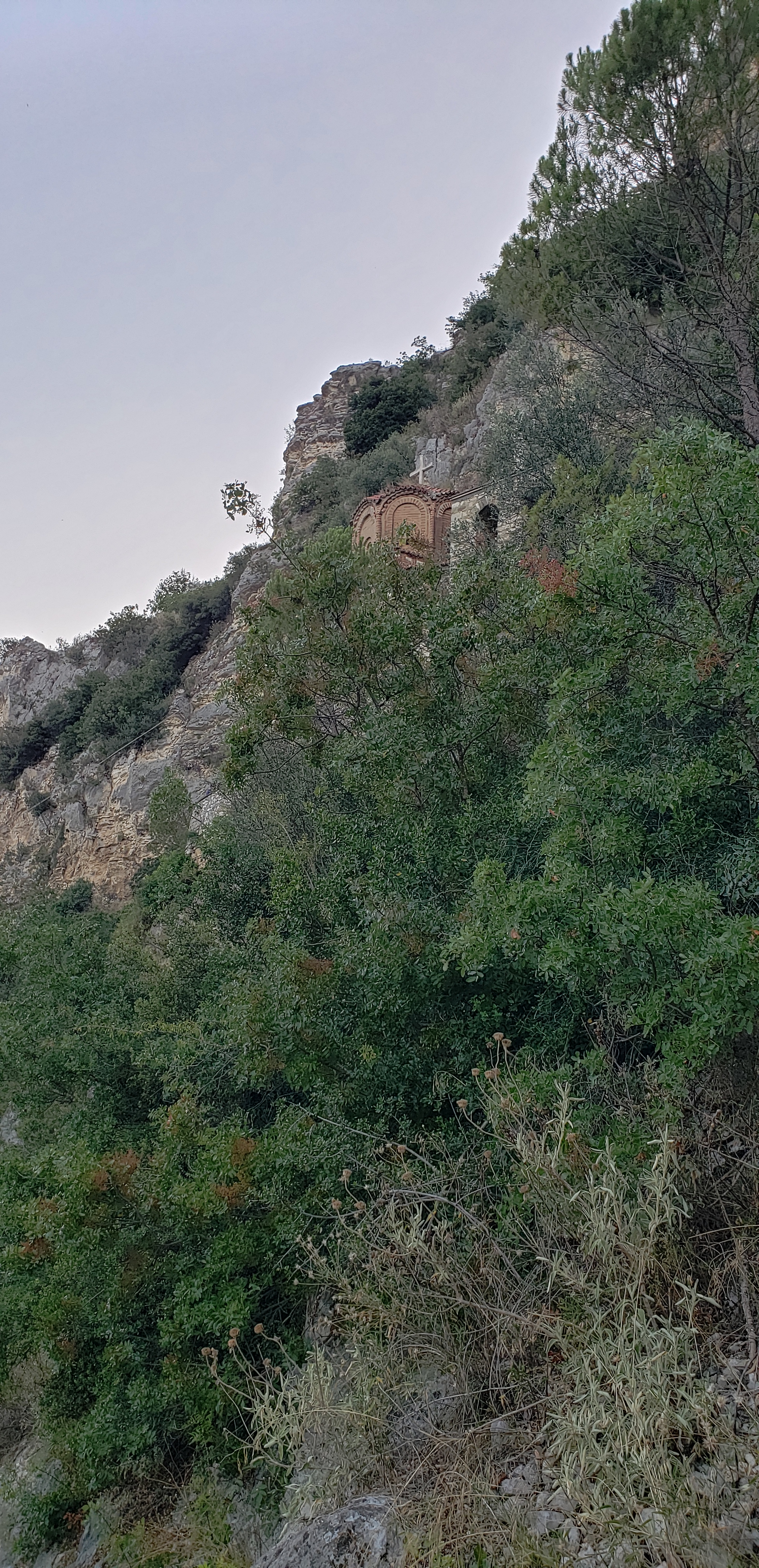 A local parishioner began speaking to me, but he did not speak English, and barely any Italian, but he led me outside, where they were having a full service; I had forgotten it was Sunday. There were two priests leading the service, one in a bright sky blue robe, the other in forest green. There were about 40 people standing, as it was not a large space, outside and next to the rocky mountainside. I watched the service for a while; I had never seen an orthodox service, especially not one in another language, but I recognized some parts; when one of the altar boys cut the bread to be the body of Christ, and the beats of the Our Father prayer, along with the blessings and some call and response with the priest and parishioners.