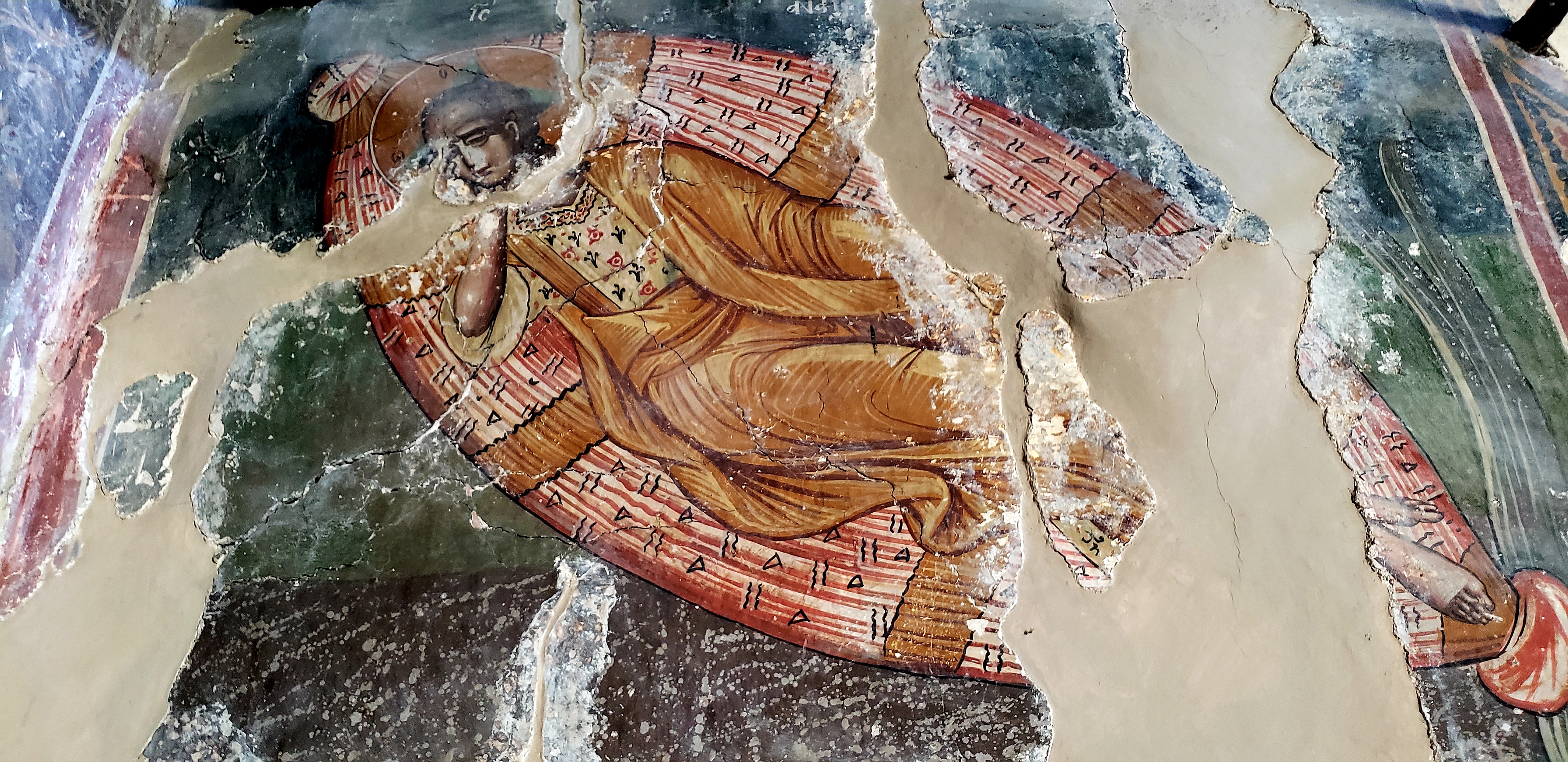 Lucky for us, Toni had the key, and let us inside this church built in the 13th century in the Byzantine style, called the clausonage technique (stone surrounding with tiles), with flooring and frescoes from the 16th century.