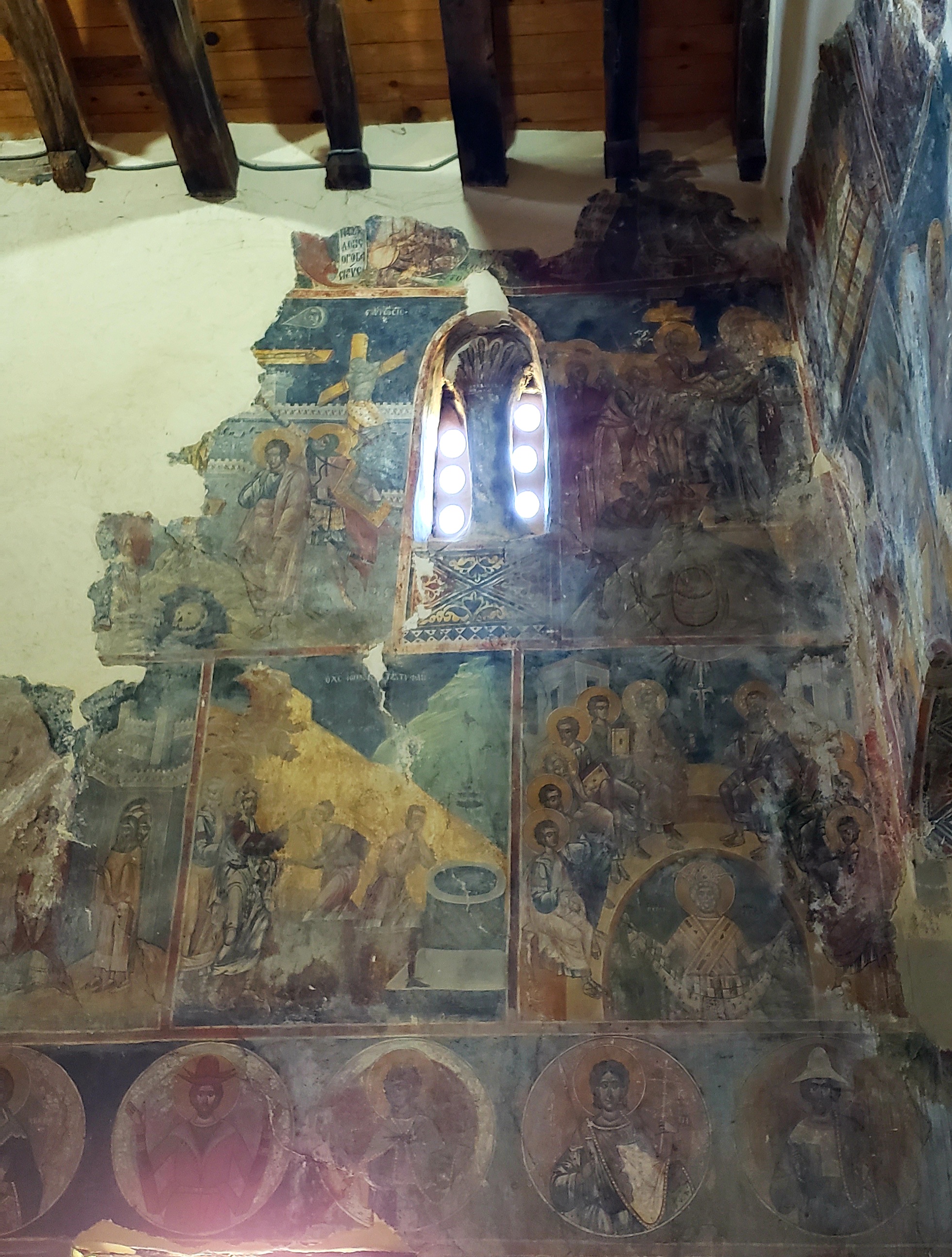 From there we went deeper inside the castle walls, past the remnants of the white and red mosques, the ancient cistern, then back into where the people of Berat Castle still live and work, down narrow streets, until we came upon a doorway and sign for a church, St. Mary of Blaherna Church (Kisha e Shën Mari Vllahernes in Albanian), but with a lock on the door.