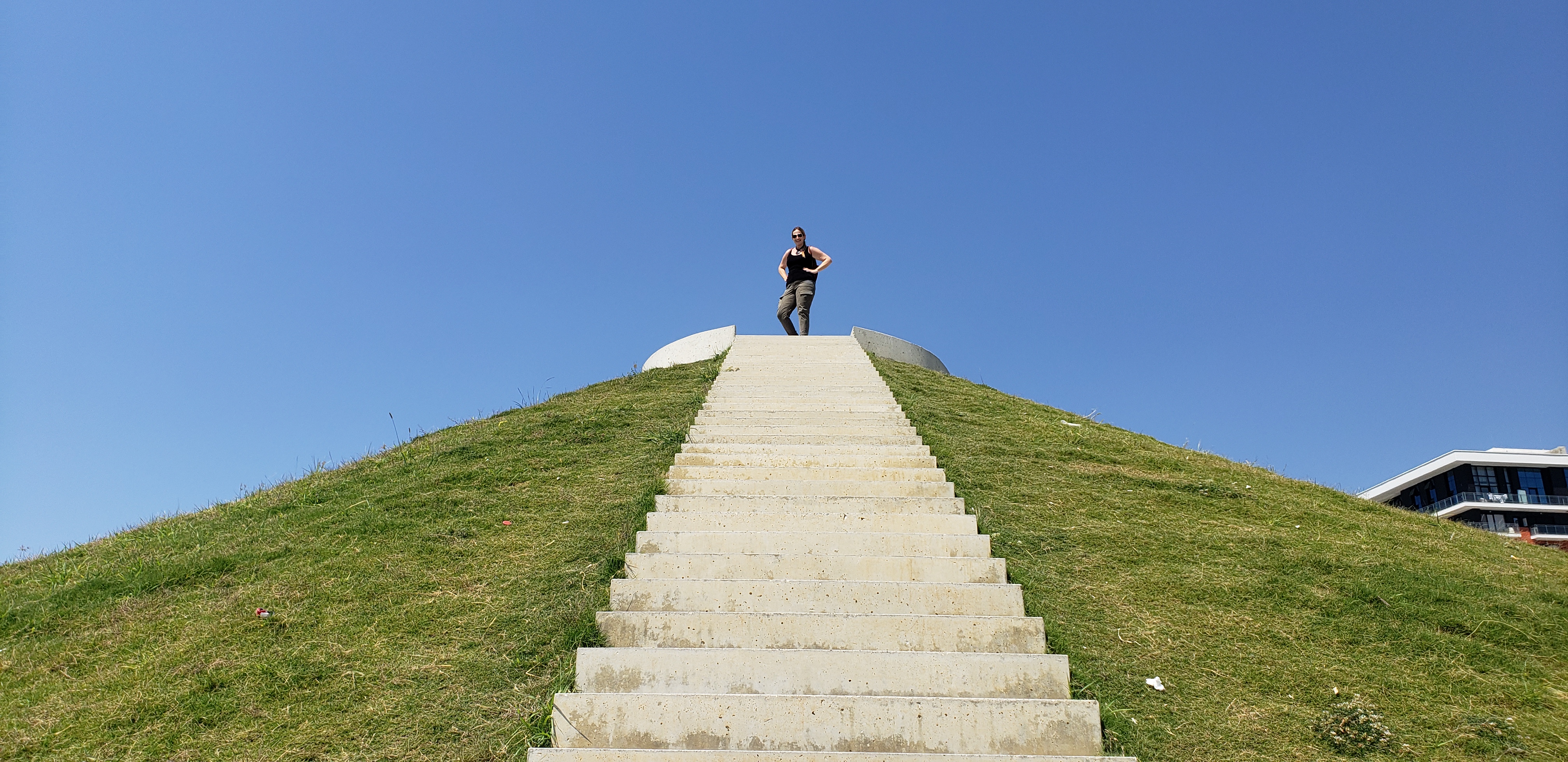 The next day we spent the morning walking by the waterfront, where there was a park that had all its sites in circular form, including the three basket basketball court (oddly), and a set of steps on a hill to see the city and seafront, amongst other round-shaped installations.
