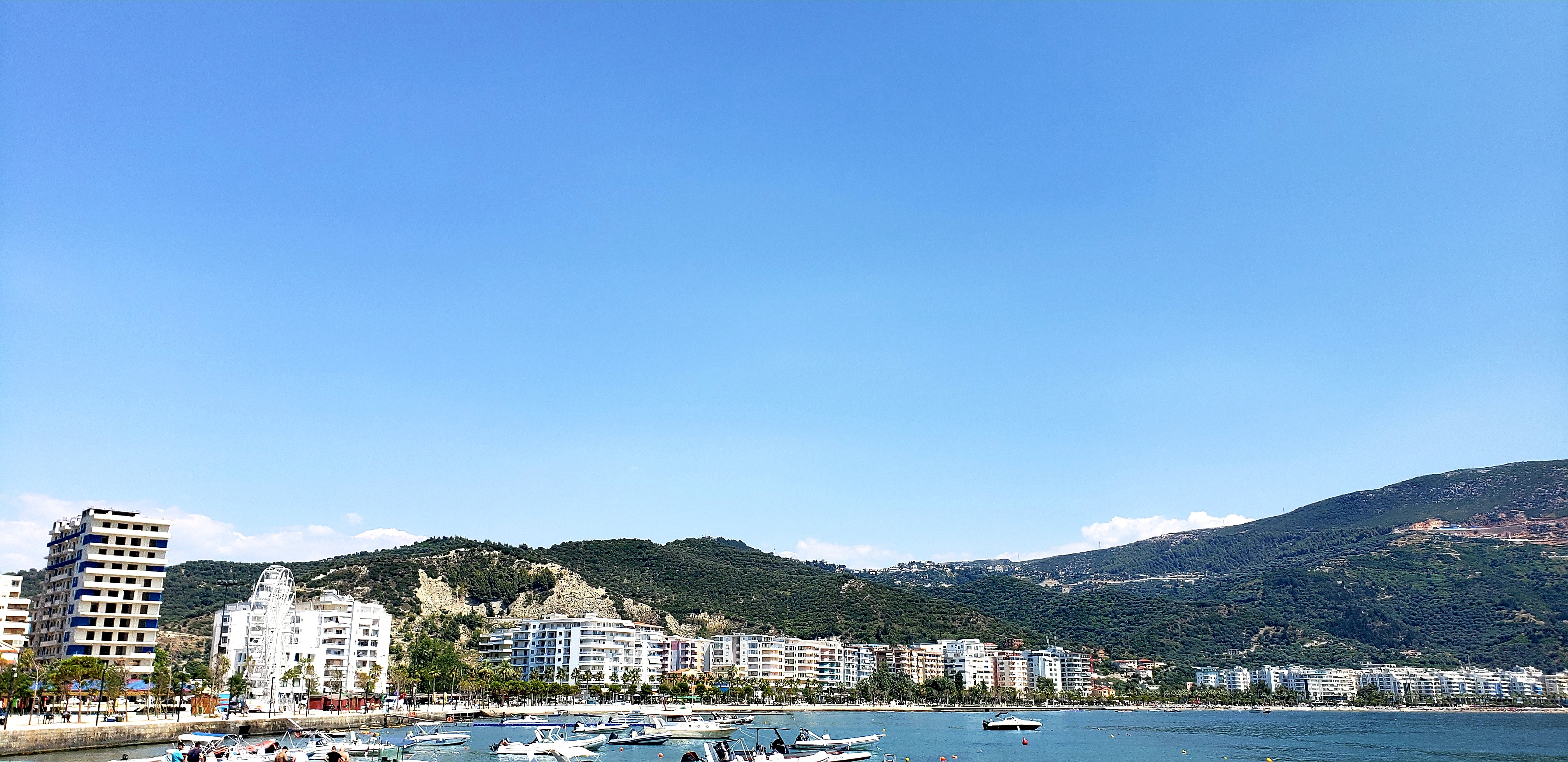 We finished fully satisfied and were back in the car, on to Vlora. Vlora is the third biggest city in Albania, and the former capital. We stayed at another guesthouse, but this one did not have breakfast included, nor the friendliest of hosts, but they all cannot be winners. We were close to the city center and our first walk was up to a high point in the city.